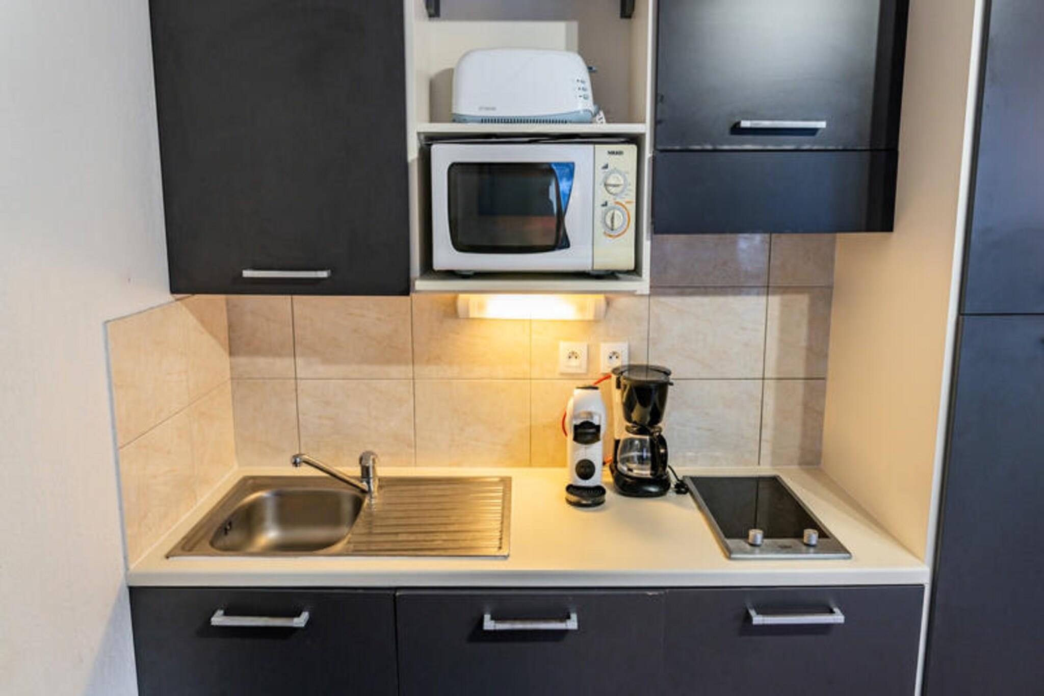 Les Terrasses du Soleil d'Or er en charmerende bolig beliggende i en højde af 1800 meter i den naturskønne landsby Bois Méan, som tilbyder direkte adgang til pisterne. Perfekt til familier, det er beliggende overfor daginstitutionen og snehaven, hvilket gør det nemt at aflevere de små, før de går til Prélaux-tæppet eller Prélbois-stoleliften. Butikker, restauranter og leje af udstyr er inden for gåafstand, hvilket sikrer bekvemmelighed under hele dit ophold. Boligen kan også prale af tæt nærhed til turistkontoret, skiliftens billetkontorer og ESF des Orres 1800, hvilket forbedrer dens centrale beliggenhed. Gæsterne kan slappe af i boligens opvarmede indendørs swimmingpool med spabad, og i sommer- og vintersæsonen nyde den udendørs terrasse. En brød- og wienerbrødsservice er også tilgængelig hver morgen, hvilket tilføjer et særligt touch til dit ophold. I nærheden kan du udforske skiløb, snowboarding og naturskønne bjergstier, eller besøge de charmerende lokale butikker og spisesteder. Denne hyggelige lejlighed på 24 m², designet til 4 personer, vender mod vest og giver et fredeligt tilflugtssted efter en dag med eventyr. Stuen har en elektrisk pejs, en 2-personers sovesofa, brætspil og et veludstyret køkken. Et bjerghjørne med 2 enkeltkøjesenge sikrer afslappende nætter, mens badeværelset med badekar byder på en afslappende oplevelse. Lejligheden har også en balkon til at nyde solrig morgenmad eller en aftendrink med venner. For ekstra bekvemmelighed er der en privat skiboks til dit udstyr.