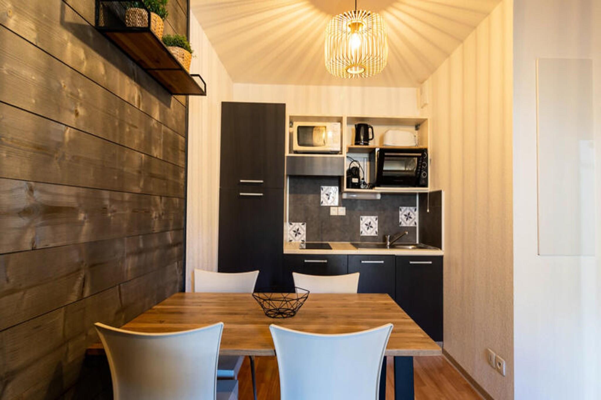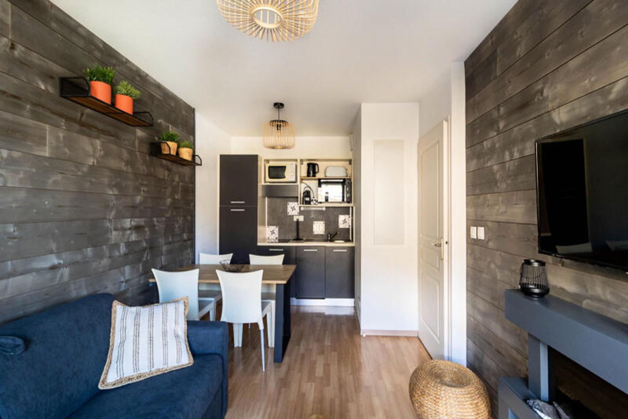 Ejendommen tilbyder sammen med sin indbydende atmosfære en komfortabel 2-værelses lejlighed, der kan rumme op til 4 personer. Lejligheden har en hyggelig stue med en 2-personers sovesofa, perfekt til yderligere gæster. Soveværelset er udstyret med en dobbeltseng, og lejligheden har også en balkon med havemøbler, med udsigt over pisterne. Der er en privat skiboks til opbevaring af skiudstyr. Selvom kæledyr ikke er nævnt, er lejligheden designet til at tilbyde et afslappet ophold med væsentlige faciliteter. Gæsterne kan nyde den opvarmede indendørs swimmingpool og spabad, som er tilgængelige i skisæsonen, samt en bagerservice for frisk brød og kager om morgenen. Boligen er ideelt beliggende i landsbyen Bois Méan, i en højde af 1800 meter, hvilket gør det til et fremragende valg for skientusiaster. Det er beliggende lige ved foden af ??pisterne, med nem adgang til dagplejetjenester, snehaver og skilifte, herunder Précaux-tæppet og Prèbois-stoleliften. Gæsterne vil finde butikker, restauranter og muligheder for leje af udstyr i nærheden, nogle endda på stedet. Derudover er turistkontoret, skiliftens billetkontorer og ESF des Orres 1800 bekvemt placeret tæt på, og tilbyder et komplet udvalg af tjenester til besøgende. Lejligheden har et fuldt udstyret køkken, hvilket gør den ideel til at tilberede måltider derhjemme. Køkkenet har alle de nødvendige apparater til at lave mad komfortabelt, herunder køleskab, komfur og mikroovn. Badeværelset er udstyret med badekar til afslapning efter en dag på pisterne. Andre faciliteter omfatter varme og et depositum. For et mere luksuriøst ophold kan gæsterne slappe af på boligens fællesområder, herunder en terrasse til solbadning og nyde udsigten på alle årstider.
