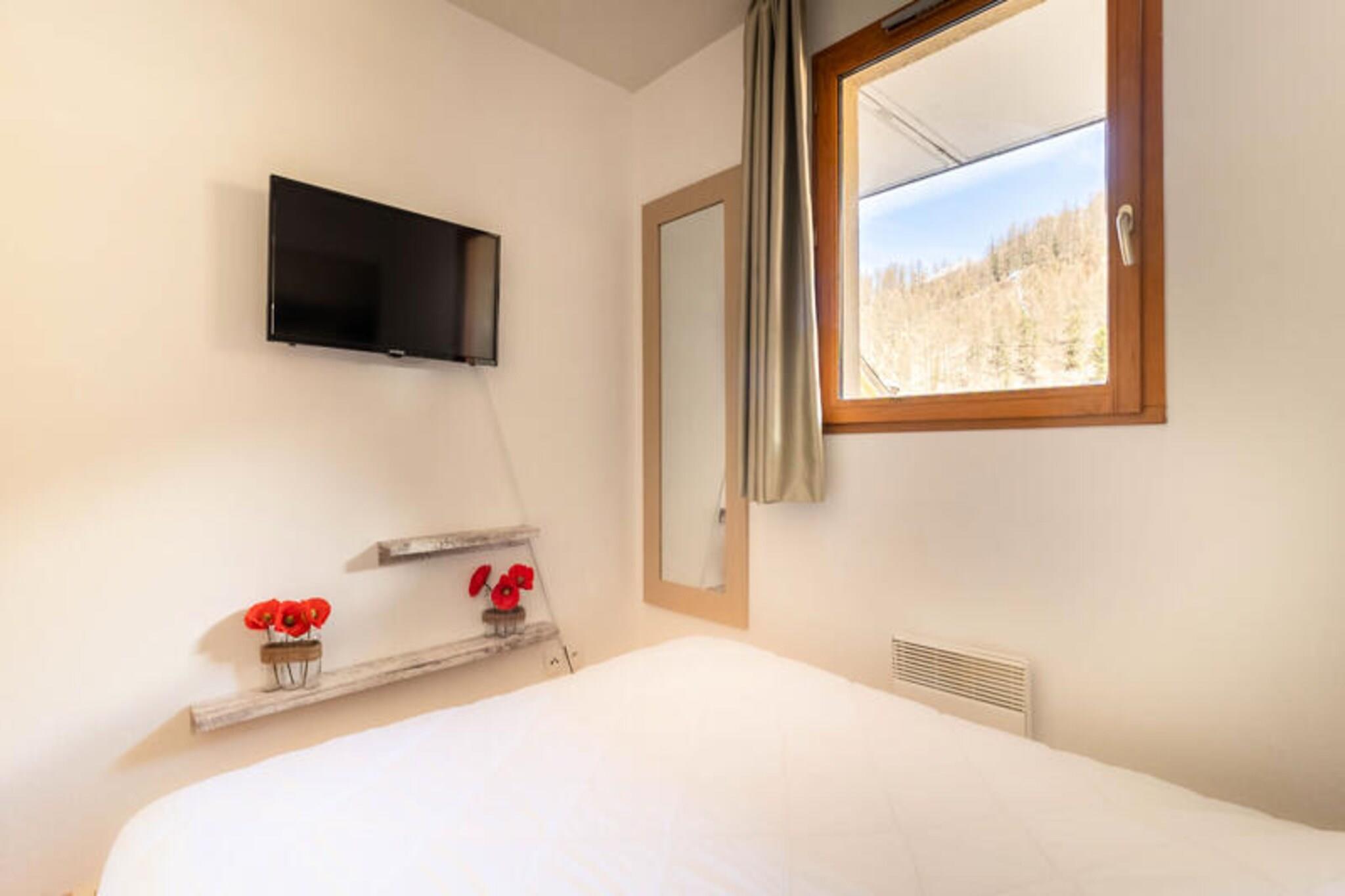 Les Terrasses du Soleil d'Or tilbyder et charmerende tilflugtssted ved foden af ??pisterne i den maleriske landsby Bois Méan, som ligger i 1800 meters højde. Denne bolig er perfekt til familier med sin nærhed til dagplejetjenester og snehaven samt nem adgang til Prélclaux-tæppet og Prëbois-stoleliften. Butikker, restauranter, leje af udstyr og regionale produkter er bekvemt i nærheden, og nogle er endda tilgængelige på stedet. Gæsterne er også lige over turistkontoret, skiliftens billetkontorer og ESF des Orres 1800, hvilket gør alt let tilgængeligt. Boligen kan prale af en opvarmet indendørs swimmingpool med spabad, perfekt til afslapning efter en dag på pisterne. Den udendørs terrasse tilbyder et solrigt sted at nyde udsigten året rundt. Gæsterne kan også bestille frisk brød og kager hver morgen i den fælles lounge. Denne 30 m² store 2-værelses lejlighed er ideel til par, og byder på en hyggelig stue med sofa, lænestol og et fuldt udstyret køkken. Soveværelset har en dobbeltseng og et andet tv for ekstra komfort. Badeværelset er komplet med badekar for ultimativ afslapning. En smuk terrasse med havemøbler tilbyder en fantastisk udsigt over pisterne, perfekt til at nyde måltider eller drinks. En privat skiboks og adgang til boligens swimmingpool fuldender tilbuddene, hvilket sikrer et behageligt og bekvemt ophold.