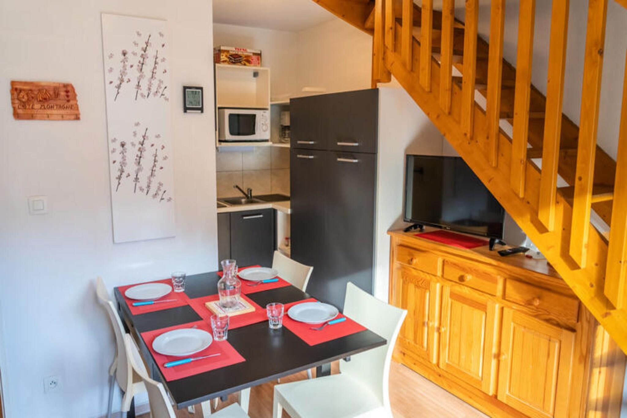 Det er en familievenlig bolig beliggende ved foden af ??pisterne i landsbyen Bois Méan, i en højde af 1800 meter. Den 40 m² duplex er ideel til op til 6 personer og tilbyder et komfortabelt opholdsrum med en sovesofa i stuen og et fuldt udstyret køkken (inklusive en opvaskemaskine, mikroovn, grill, kaffemaskine, elkedel, brødrister og raclettemaskine). Spisebordet har plads til op til 6 gæster til familiemåltider. Boligen har en perfekt beliggenhed og tilbyder direkte adgang til pisterne, hvilket gør det særligt bekvemt for familier med små børn. Det er beliggende lige over turistkontoret, skiliftens billetkontorer og ESF des Orres 1800, med butikker, leje af udstyr og restauranter i nærheden eller endda på stedet. Ud over de komfortable opholdsrum tilbyder boligen forskellige faciliteter til et afslappende ophold. Gæsterne kan nyde den opvarmede indendørs swimmingpool og solarium med liggestole til at slappe af. Hver morgen kan du bestille frisk brød og kager fra den fælles lounge.