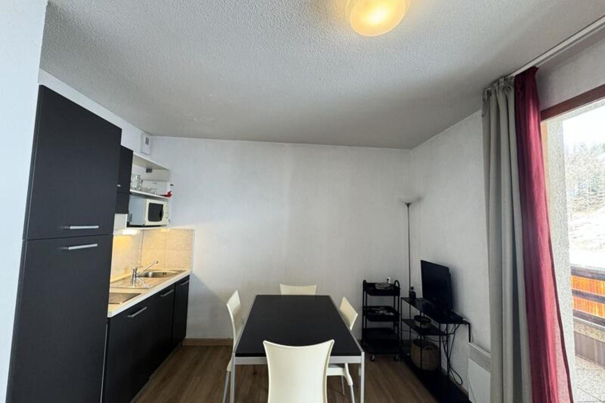 Dette er en charmerende bolig beliggende ved foden af ??pisterne i landsbyen Bois Méan, i en højde af 1800 meter, som tilbyder nem adgang til skiområdet. Denne studio på 24 m² er designet til at rumme op til 4 gæster, hvilket gør den ideel til familier. Det omfatter en balkon med en østlig udsigt over pisterne og de omkringliggende bjerge, perfekt til at nyde den friske bjergluft. Studiet har to enkeltkøjesenge, en sovesofa, der kan omdannes til en 140 x 190 cm seng, et fuldt udstyret køkken (med opvaskemaskine, keramisk kogeplade, mikroovn grill og andre vigtige apparater) og et badeværelse med badekar og toilet . Der er også et fjernsyn til underholdning. Boligens beliggenhed er yderst bekvem, især for familier, da den ligger kun få skridt fra daginstitutionen og snehaven. Prélaux-tæppet og Prèbois-stoleliften er også i nærheden, som tilbyder ski-in/ski-out-adgang til pisterne. Butikker, restauranter, leje af udstyr og regionale produkter er alle inden for 100 meter, og boligen ligger lige over turistkontoret, skiliftens billetkontorer og ESF des Orres 1800, hvilket gør det til den perfekte base for din skiferie. Yderligere faciliteter omfatter en opvarmet indendørs swimmingpool med boblebad og en udendørs terrasse, der giver afslapning året rundt efter en dag på pisterne. Du kan også nyde frisk brød og kager hver morgen fra den fælles opholdsstue. For ekstra bekvemmelighed tilbyder boligen et privat skiskab til opbevaring af dit udstyr. Ejendommen er også udstyret med varme, og der kræves et depositum på EURO400 for dit ophold.