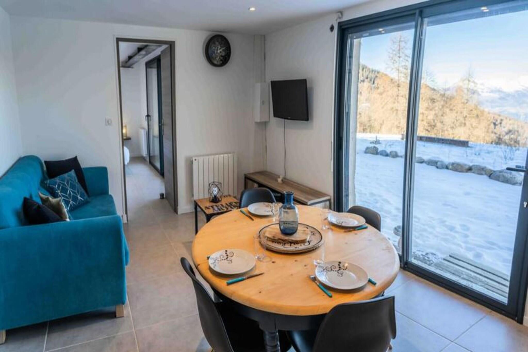 Ejendommen tilbyder sammen med sit moderne og velindrettede design en 51 m² stor lejlighed i stueetagen med plads til 6 gæster. Stuen har en sovesofa og panoramaudsigt over Serre-Ponçon-dalen. Hovedsuiten, med direkte udendørs adgang, inkluderer en dobbeltseng og en ekstra sovesofa, mens kabinens soveværelse er indrettet med to enkelt køjesenge. Lejligheden har desuden to badeværelser med toilet. For ekstra bekvemmelighed kører en gratis shuttleservice hvert 10. minut, hvilket giver hurtig adgang til feriestedets aktiviteter, restauranter og butikker. Sengetøj leveres, og senge er redt ved ankomsten, hvilket sikrer et problemfrit ophold. Ejendommen er ideel til familier eller små grupper, med mulighed for at leje hele hytten med plads til op til 22 personer. Beliggende i det rolige Pra-Mouton-distrikt på 1.550 meter, tilbyder boligen et fredeligt tilflugtssted, mens det stadig er tæt på de pulserende feriesteders aktiviteter. Pramouton- og Champ Lacas-skilifterne ligger blot et par hundrede meter væk, hvilket giver nem adgang til det ekspansive Orres-skiområde. Den gratis shuttle-service forbinder lejligheden til hjertet af feriestedet, hvor gæsterne kan udforske lokale butikker, restauranter og barer. Om sommeren kan gæsterne nyde resortets opvarmede udendørs swimmingpool med en fantastisk udsigt over Embrunais-dalen og Serre-Ponçon-søen. Placeringen er perfekt for både vintersportsentusiaster og dem, der leder efter en fredelig bjergferie. Lejligheden har et fuldt udstyret køkken, ideelt til at tilberede hjemmelavede måltider. Hvidevarer inkluderer en opvaskemaskine, køleskab, ovn, mikroovn, kaffemaskine, brødrister, raclettemaskine og vaskemaskine. Yderligere bekvemmeligheder omfatter opvarmning i hele ejendommen, hvilket sikrer en hyggelig atmosfære året rundt. Boligen tilbyder omfattende tjenester, herunder slutrengøring og levering af linned. Gæster har også adgang til nærliggende lejemuligheder for skiudstyr til fordelagtige priser, hvilket sikrer et bekvemt og behageligt ophold i hjertet af de franske alper.