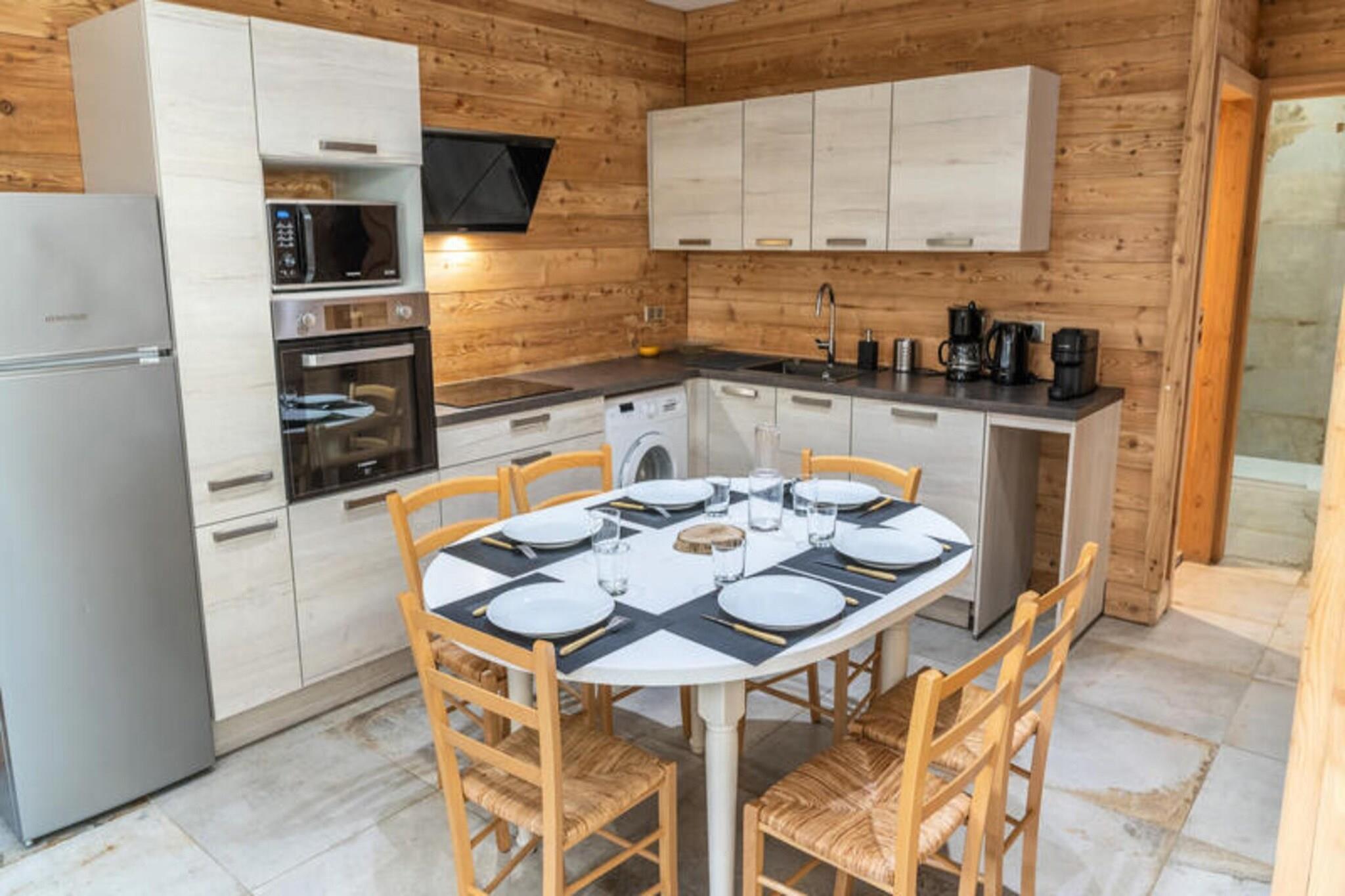 Ejendommen tilbyder sammen med sit rummelige design en luksuriøs 205 m² bjerghytte, der komfortabelt kan rumme op til 15 gæster. Hytten har en række forskellige sovearrangementer på tværs af flere niveauer, herunder dobbeltsenge, enkeltsenge og køjesenge. Der er en stor stue udstyret med et fjernsyn, fiber Wi-Fi og Bluetooth-højttaler, samt en spiseplads med plads til 15 gæster. Hytten har en syd- og vestvendt balkon med en fantastisk udsigt, perfekt til afslapning om sommeraftener. Selvom kæledyr ikke er tilladt, er yderligere tjenester såsom linned, sengeopredning ved ankomst og slutrengøring inkluderet i lejen. Ejendommen nævner ikke gratis aktiviteter, men den tilbyder en gratis shuttleservice til feriestedets centrum hvert 10. minut. Beliggende 1.550 meter i det fredelige Pramouton-distrikt, er denne hytte ideelt placeret til både vinter- og sommeraktiviteter. Les Orres-skiområdet er let tilgængeligt med skilifter kun 350 meter væk, mens en gratis shuttle vil tage dig til hjertet af resortet, hvor du kan nyde en række aktiviteter, underholdning og lokale faciliteter såsom bagerier, restauranter, og barer. Om sommeren tilbyder den nærliggende opvarmede udendørs swimmingpool panoramaudsigt over Embrunais-dalen og Serre-Ponçon-søen. Placeringen byder også på malerisk udsigt over de omkringliggende bjerge, hvilket gør det til en perfekt destination året rundt. Hyttens køkken er fuldt udstyret til at tilberede store familiemåltider, med en opvaskemaskine, vinkælder, ovn, mikroovn, vaskemaskine og forskellige små apparater såsom en kaffemaskine, elkedel, brødrister og blandet kaffemaskine. Det åbne køkken forbindes problemfrit med det rummelige opholdsrum, hvilket gør det perfekt til socialt samvær, mens du laver mad. Hytten har også et hyggeligt læsehjørne, dart og et skakbræt for ekstra underholdning. For ekstra bekvemmelighed er der tre badeværelser med bruser og tre separate toiletter til rådighed. Ejendommens interiør er designet med naturligt lys og LED-belysning, hvilket skaber en varm og indbydende atmosfære i hele hytten.