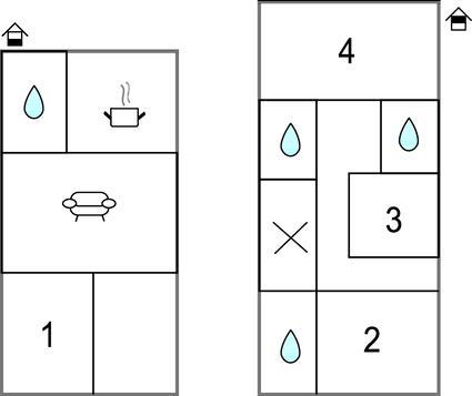 Badeværelse 4m2 (nr. 1) - WC. Varmt og koldt vand. Badekar