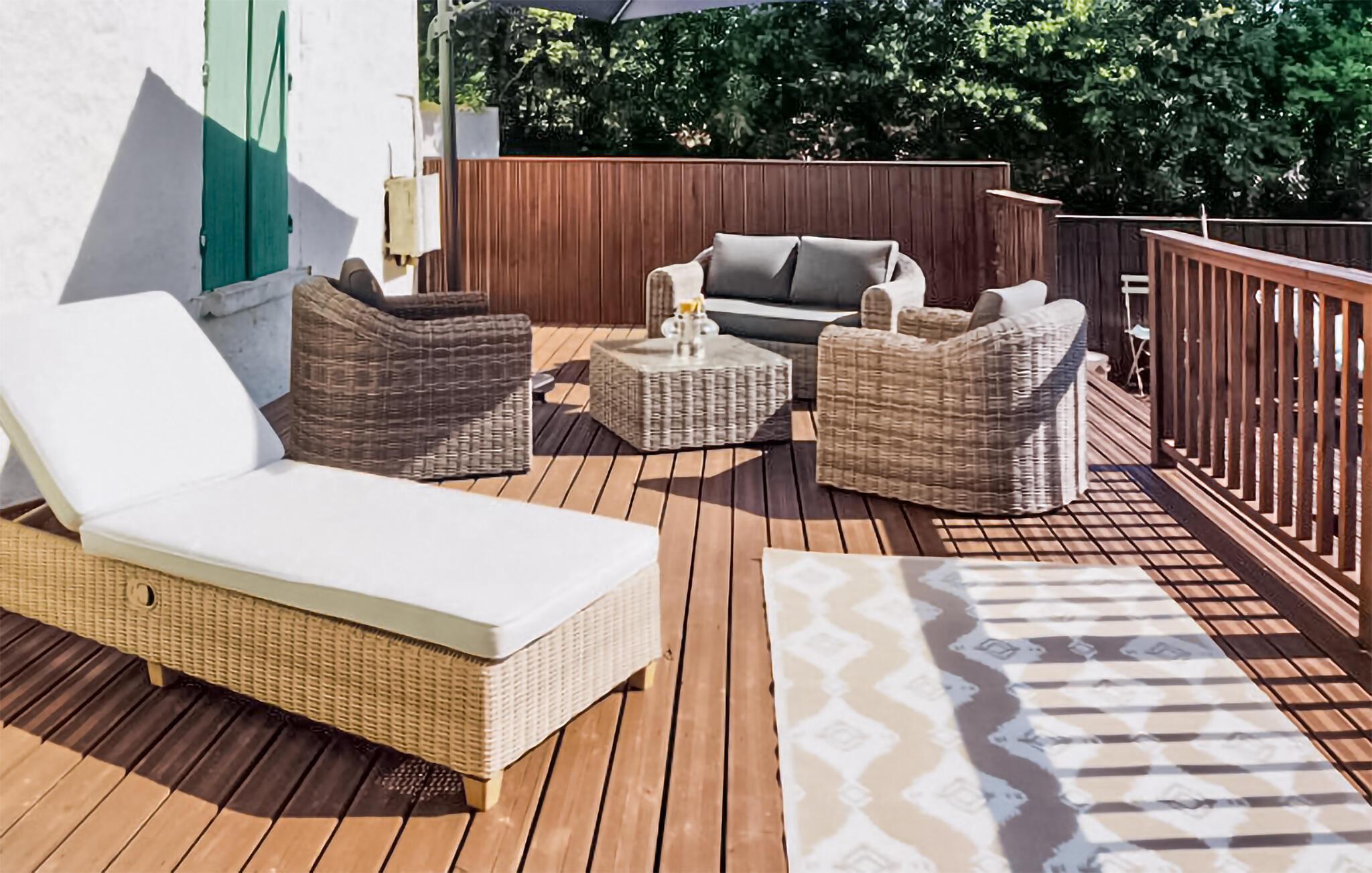 Fra stuen kan I trække ud på terrassen, der i de varme måneder lokker til dejlige timer med solbadning, måltider under åben himmel og et godt glas vin. I poolen kan I dyppe jer, lige så ofte, I vil, i løbet af dagen, inden I lader jer lufttørre i solen.