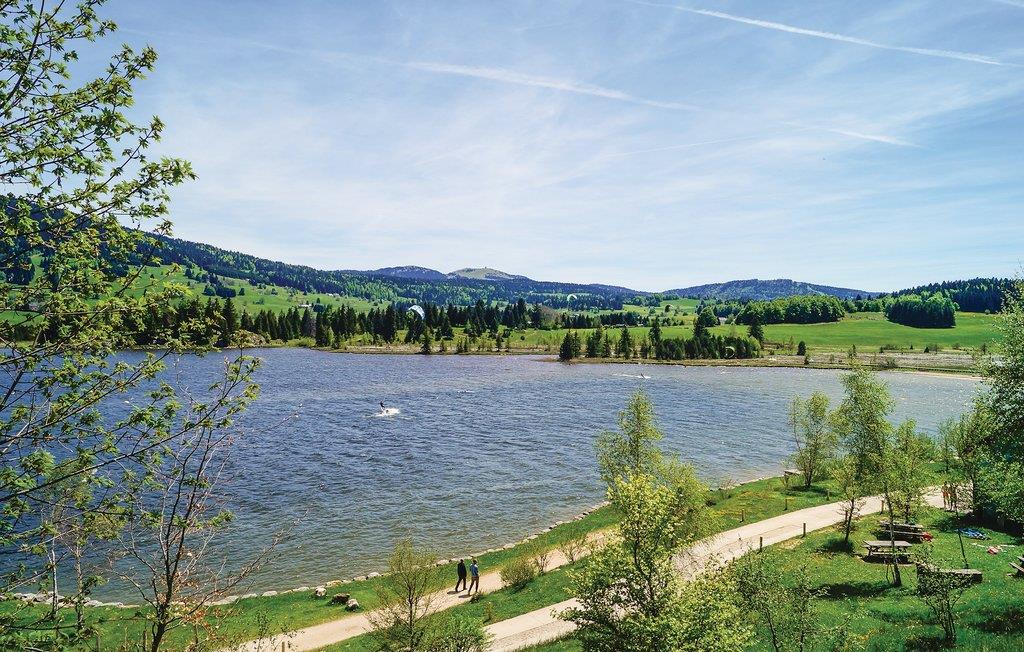 Nyd panoramaudsigten over Jura-massivets grønne skove fra denne ferielejlighed.