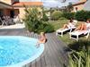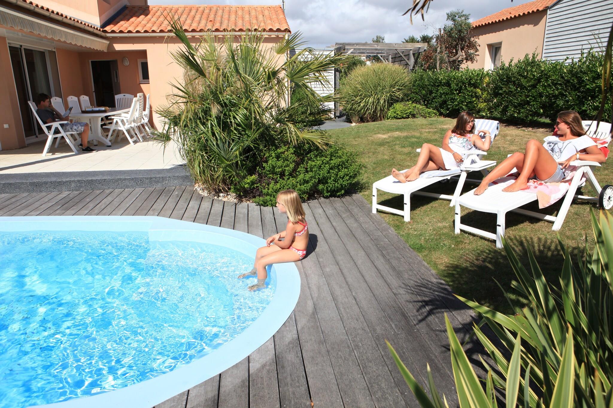 Komfort og faciliteter Sophora 6 Villa tilbyder et komfortabelt og velindrettet ophold, perfekt for op til seks gæster. Med tre soveværelser - to med dobbeltsenge eller to enkeltsenge og det tredje med køjesenge eller enkeltsenge - passer det både til familier eller grupper. To badeværelser udstyret med badekar eller bruser og separate toiletter sikrer bekvemmelighed. Det fuldt udstyrede køkken inviterer dig til at lave lækre måltider, mens den rummelige stue er ideel til at slappe af efter en dag med udforskning. Udendørs nydelse Træd udenfor til en stor have, der omgiver en privat swimmingpool, som tilbyder fredelige omgivelser til solbadning, svømning eller udendørs spisning på terrassen. Villaen inkluderer også parkering og internetadgang, hvilket forbedrer din komfort under din ferie på Oasis Les Jardins. Placerings højdepunkter Beliggende kun 1 km fra havet, og inden for en kort køretur til Château d'Olonne (4,5 km) og Les Sables d'Olonne (5 km), vil du have nem adgang til butikker, restauranter og turisttjenester. Generelle forsyninger er 3 km væk, og Nantes Lufthavn ligger 120 km fra villaen, hvilket gør rejsen bekvem for besøgende.