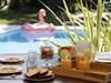 Denne 6-personers villa med swimmingpool dækker et areal på 80m2. Der er 3 soveværelser til 6 personer (sovepladserne varierer afhængigt af villaen, og der kan være en køjeseng i et af soveværelserne), 1 badeværelse med badekar og/eller bruser, toilet, en stor stue med fladskærms-tv, opholdsområde med sofaer, opholdsområde med spisebord, et fuldt udstyret køkken med ovn, køleskab, opvaskemaskine, kogeplader, kaffemaskine og brødrister. Hver villa har en vaskemaskine. Udenfor kan du nyde din private have og opvarmede swimmingpool (fra slutningen af april til slutningen af september). Poolen kan opvarmes i april mod et tillæg på EURO25 pr. dag, afhængigt af vejrforholdene, som skal specificeres mindst 5 dage før ankomst. Nogle villaer er også udstyret med en grill, så tøv ikke med at spørge efter en, når du reserverer. Vil du gerne have dit kæledyr med? Det er muligt, men ikke i alle villaer på grund af begrænset tilgængelighed. Kontakt venligst vores kundeservice. I dette hjørne af paradis omgivet af grønne områder kan du slappe af med hele familien ved den private swimmingpool eller vælge mellem en bred vifte af aktiviteter - vandsport og vandreture for at opdage et overdådigt og uspoleret naturmiljø.