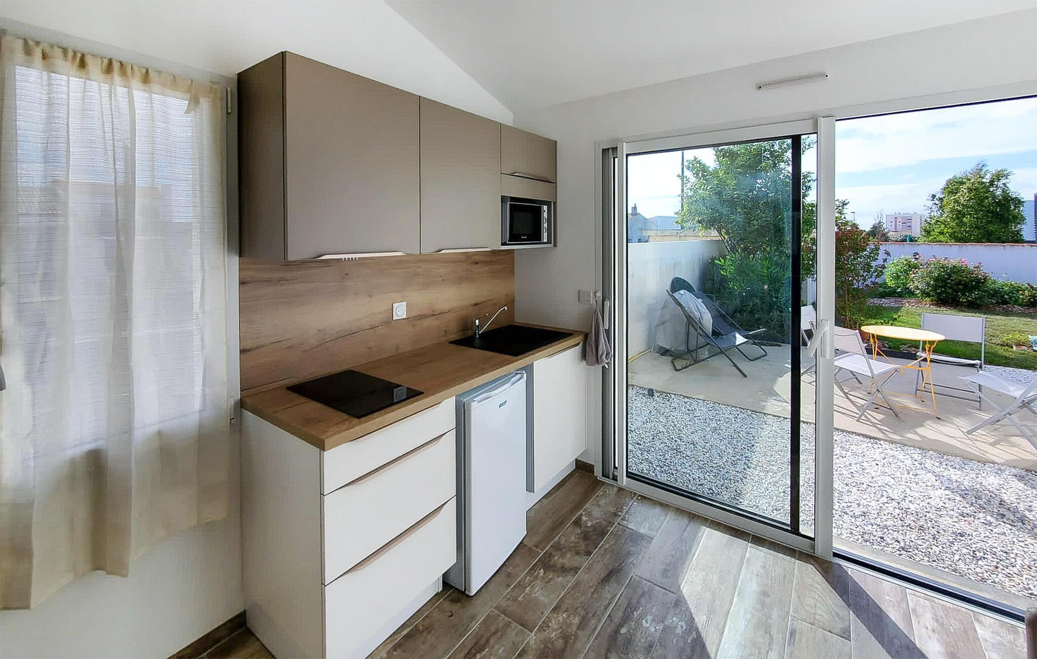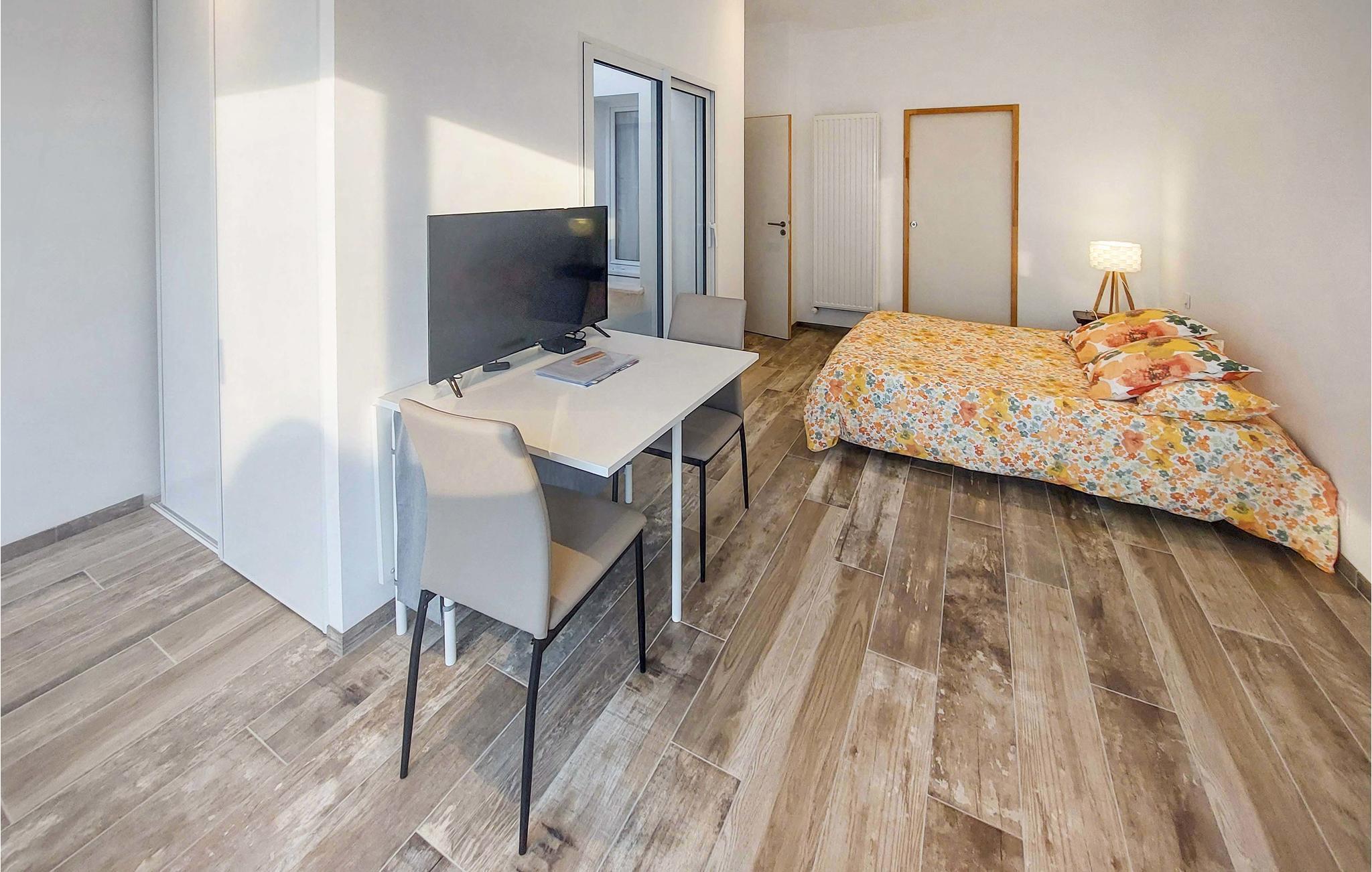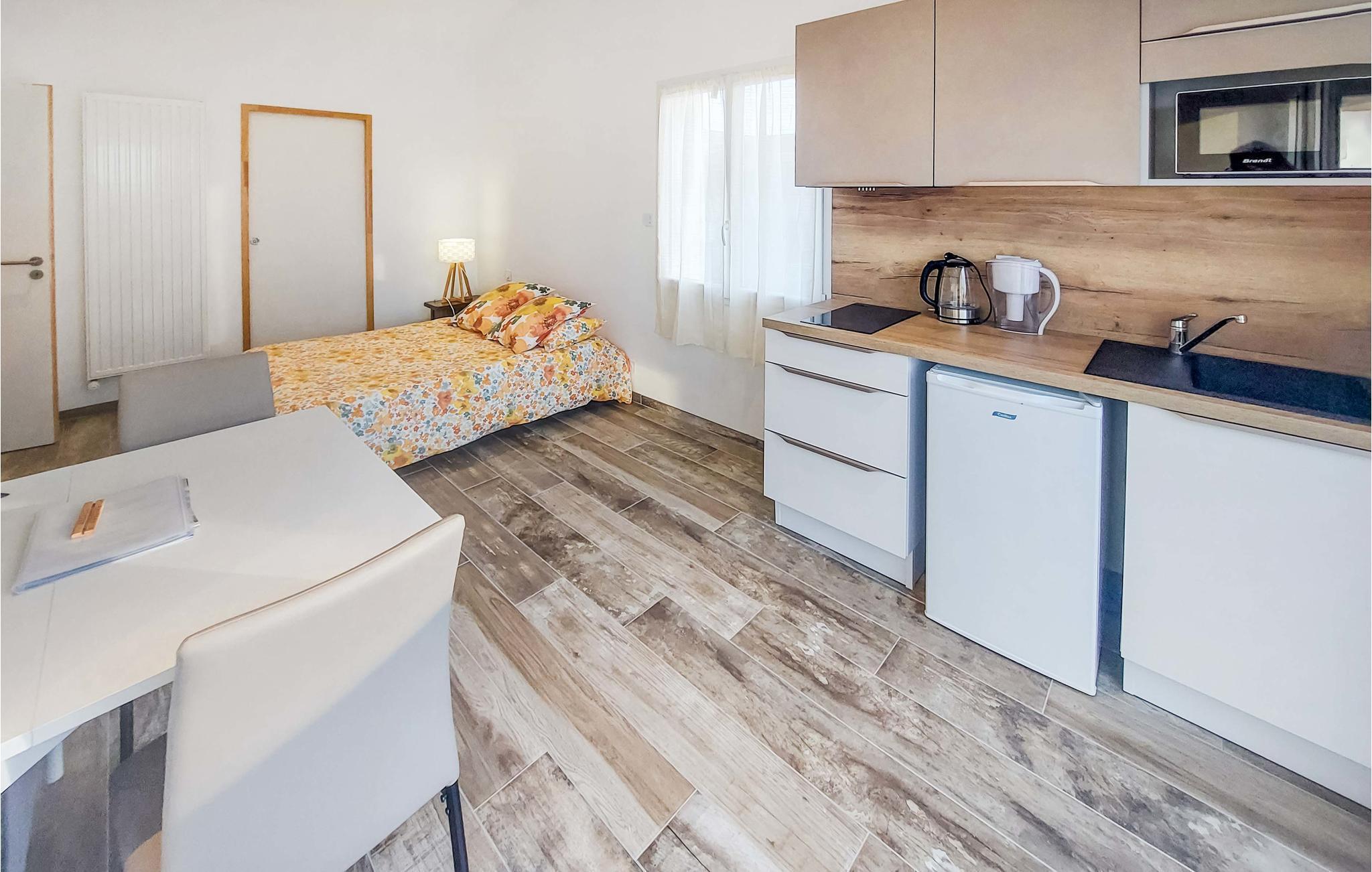 Denne smarte lejlighed fordeler sig over nogle få kvadratmeter og har et dejligt lys samt gode faciliteter. Her kan I slappe af i private rammer og udvide opholdsrummet på den herlige terrasse. Dæk op til dagens måltider under åben himmel, fyr op i grillen og nyd solen fra liggestolene.