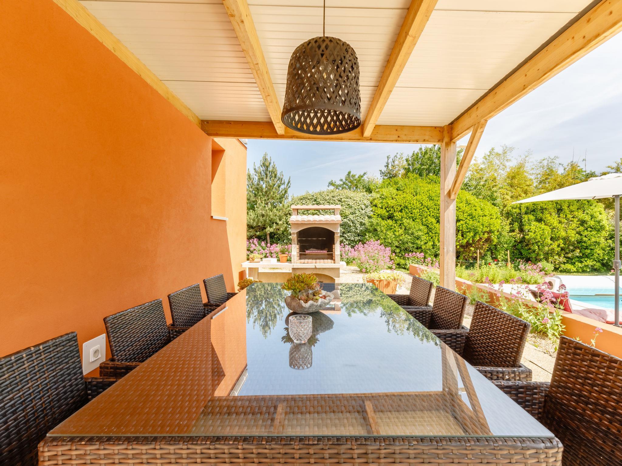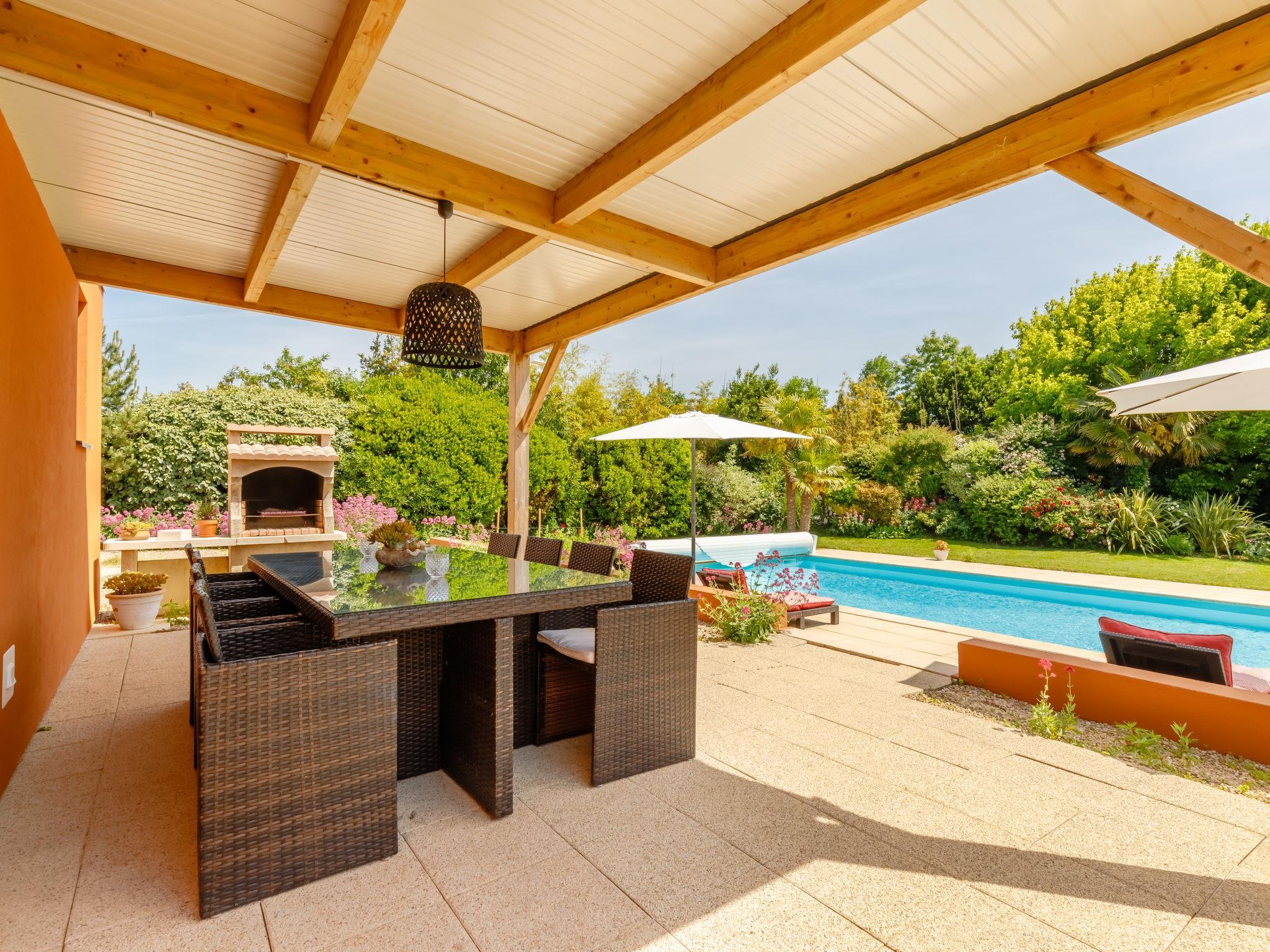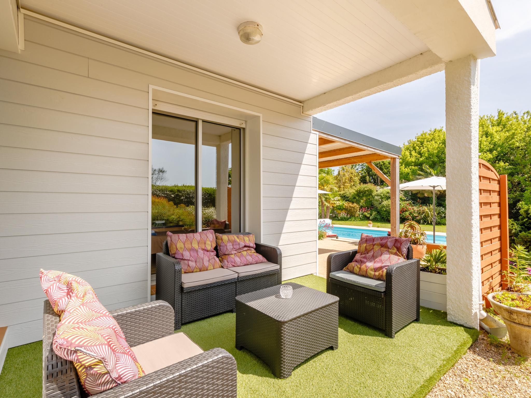 4-room villa 100 m2. Beautiful furnishings: large living/dining room with TV (flat screen), hi-fi system and DVD. Exit to the terrace, to the swimming pool. 1 room with 1 french bed (160 cm, length 200 cm). 1 large children's room with 2 beds (90 cm, length 190 cm), 1 french bed (140 cm, length 200 cm). 1 room with 1 french bed (140 cm, length 200 cm). Kitchen (oven, dishwasher, 4 gas rings, toaster, kettle, microwave, electric coffee machine, Capsules for coffee machine (Dolce Gusto) extra) with small dining table. Shower, sep. WC. Electric heating. Terrace 25 m2, roofed terrace 10 m2, roofed. Terrace furniture, barbecue, deck chairs (6). Facilities: washing machine, dryer, iron, children's high chair, baby cot. Internet (WiFi, free). Parking. Please note: suitable for families. Non-smoking house. Maximum 1 pet/ dog allowed. Smoke alarm. 8516600010970