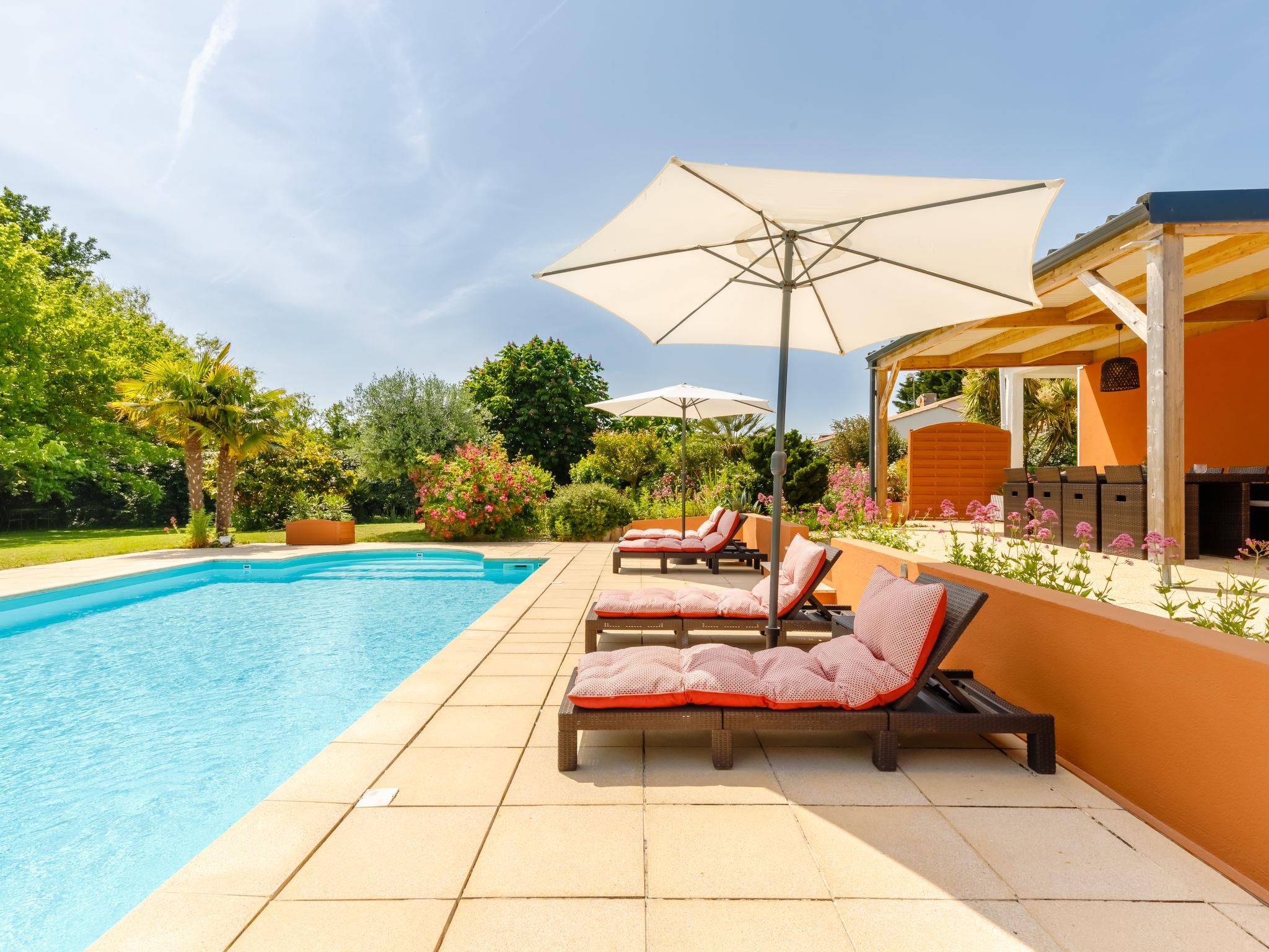 Olonne sur Mer 3 km from Les Sables d'Olonne: Beautiful, comfortable villa "Villa Les Cygnes", built in 1990, surrounded by trees. On the outskirts, 3 km from the centre of Olonne sur Mer, in a quiet position in the residential district, 2.5 km from the sea, 2.5 km from the beach. Private: large, beautiful, well-kept garden 2'000 m2 (fenced) with lawn and flowers, swimming pool heated (10 x 5 m, depth 50 - 200 cm, seasonal availability: 03.May. - 30.Sep.) with shutter cover. Table tennis, terrace, garden furniture. Storeroom available. Parking (for 4 cars) on the premises. Shop 1 km, supermarket 1 km, restaurant 1 km, bus stop 500 m, sandy beach 2.5 km. Tennis 3 km.