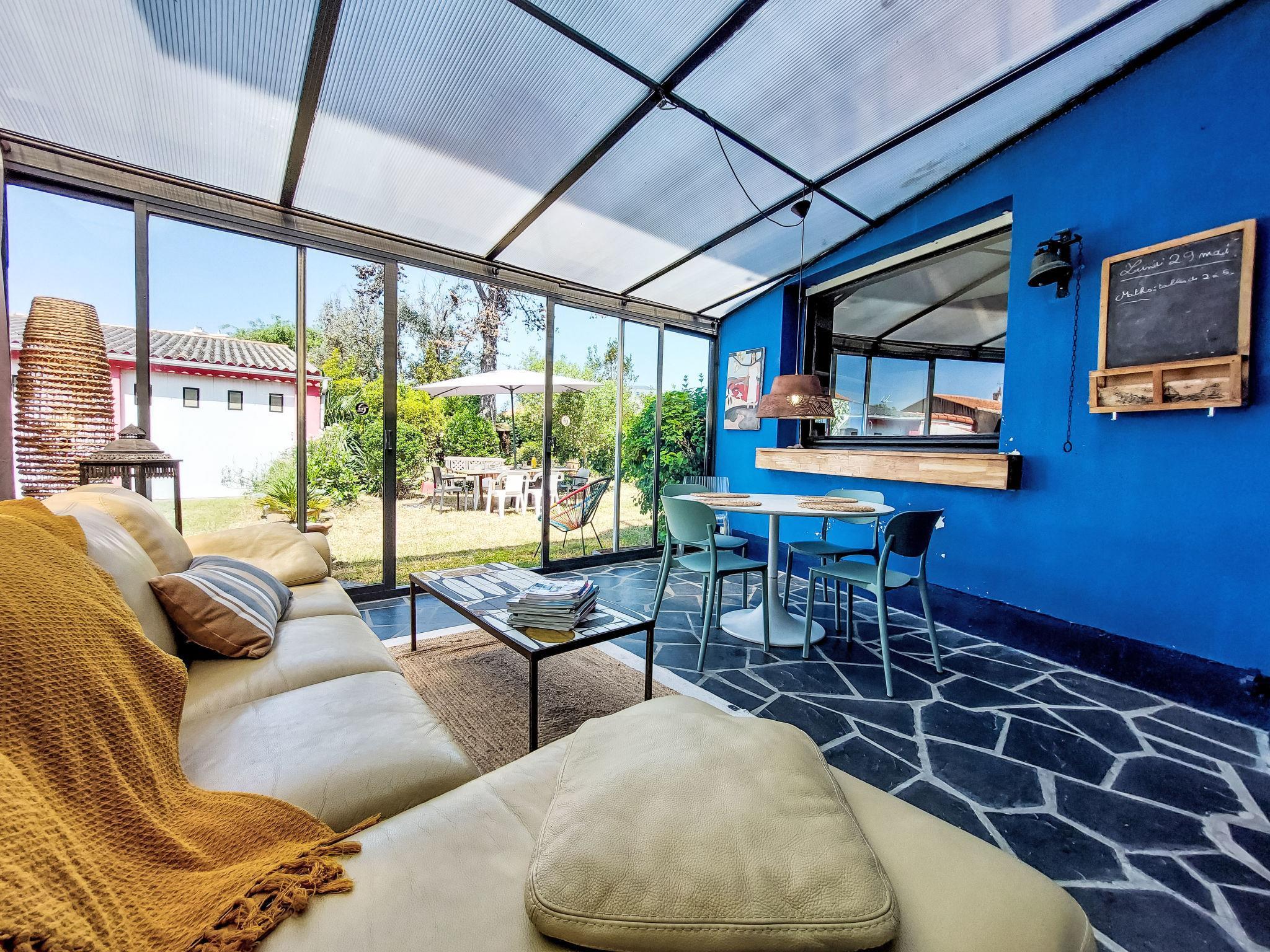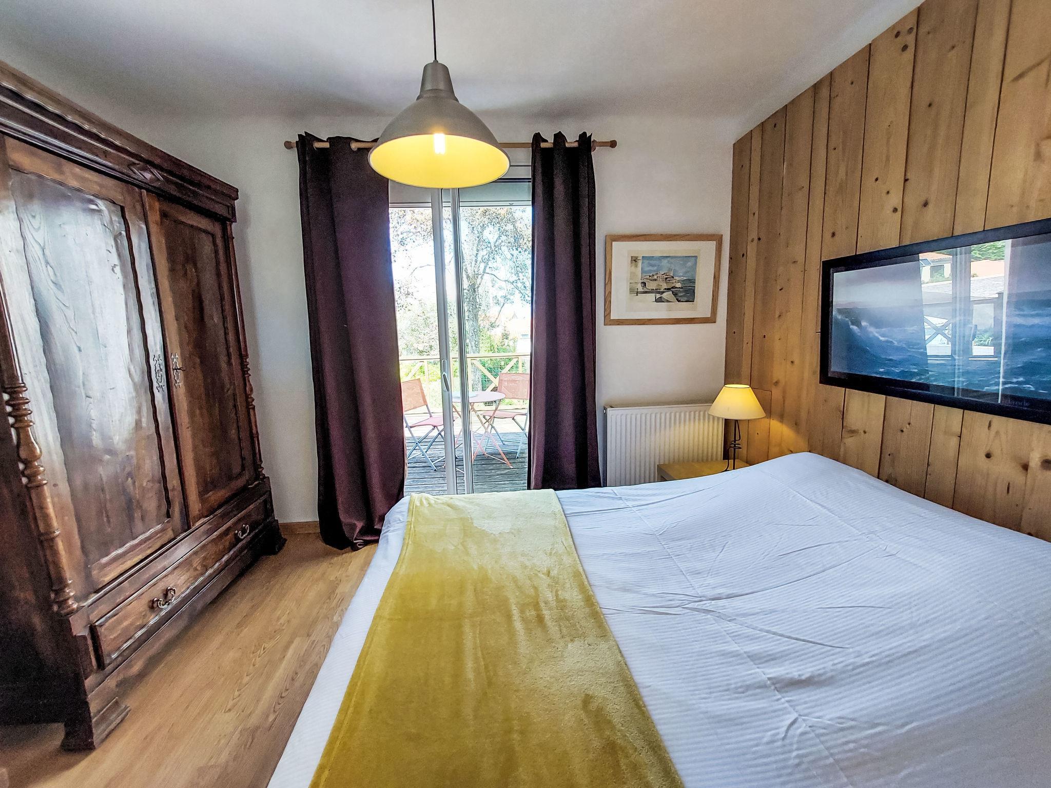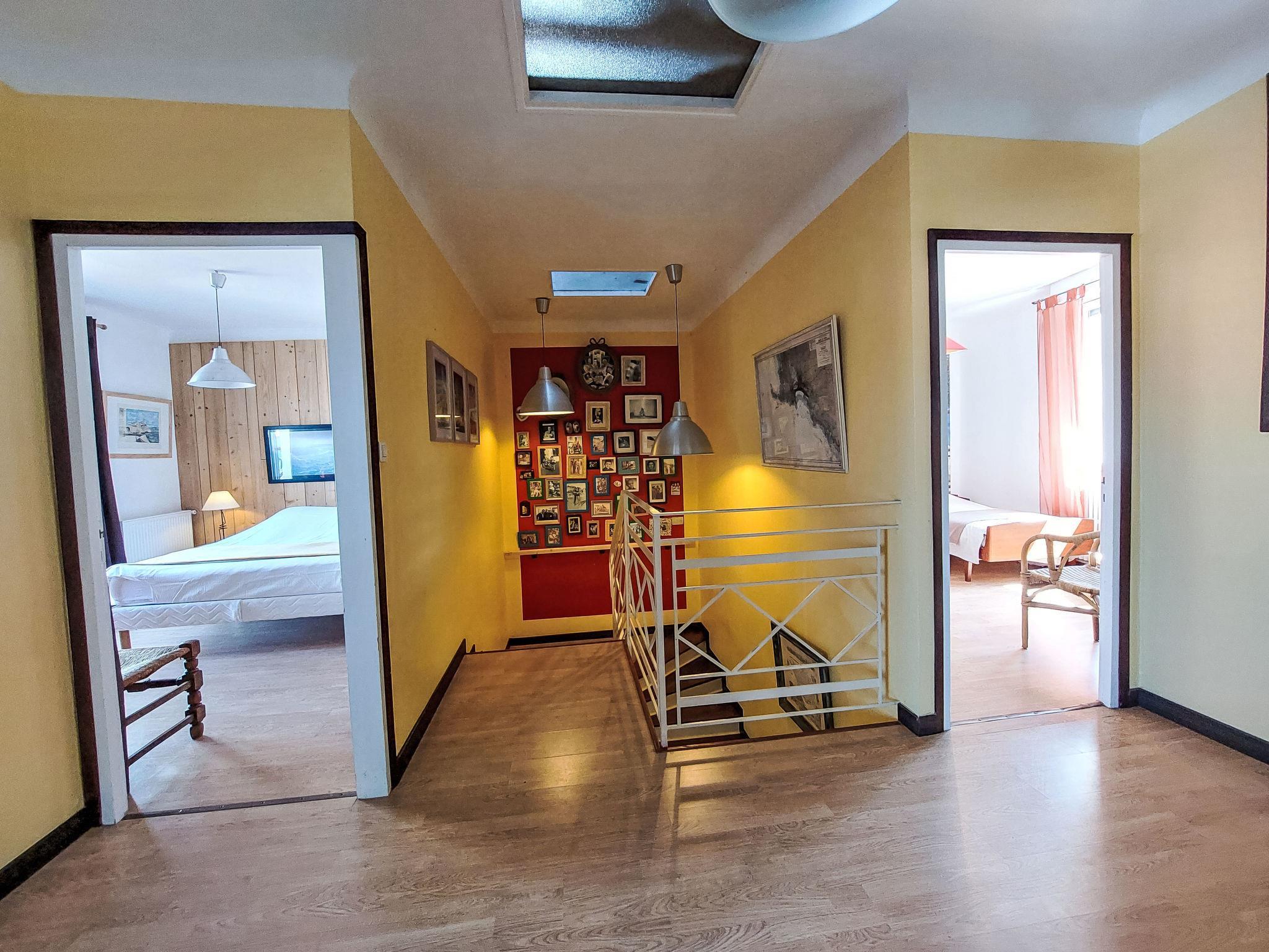 5-room terraced house 145 m2. Very beautiful furnishings: large entrance hall. Exit to the veranda. Large living/dining room 45 m2 with open-hearth fireplace (only for decoration), TV (flat screen). Exit to the veranda. Open kitchen (oven, dishwasher, 4 gas rings, toaster, kettle, microwave, electric coffee machine) with dining table. Exit to the garden. Sep. WC. Upper floor: 1 large room with 1 french bed (160 cm, length 200 cm), hand-basin and shower. Exit to the balcony. 1 room with 1 french bed (160 cm, length 200 cm). Exit to the terrace. 1 large room with 2 beds (90 cm, length 190 cm), hand-basin and shower. 1 room with 1 french bed (160 cm, length 200 cm). Bath/WC, double hand-basin. Gas heating. Large terrace 16 m2. Terrace furniture, barbecue, deck chairs. Facilities: washing machine, children's high chair, baby cot. Internet (WiFi). Please note: non-smoking house. Maximum 1 pet/ dog allowed. Smoke alarm. Offer by a private individual according to Art. 155, IV of CGI. 85194001391EE