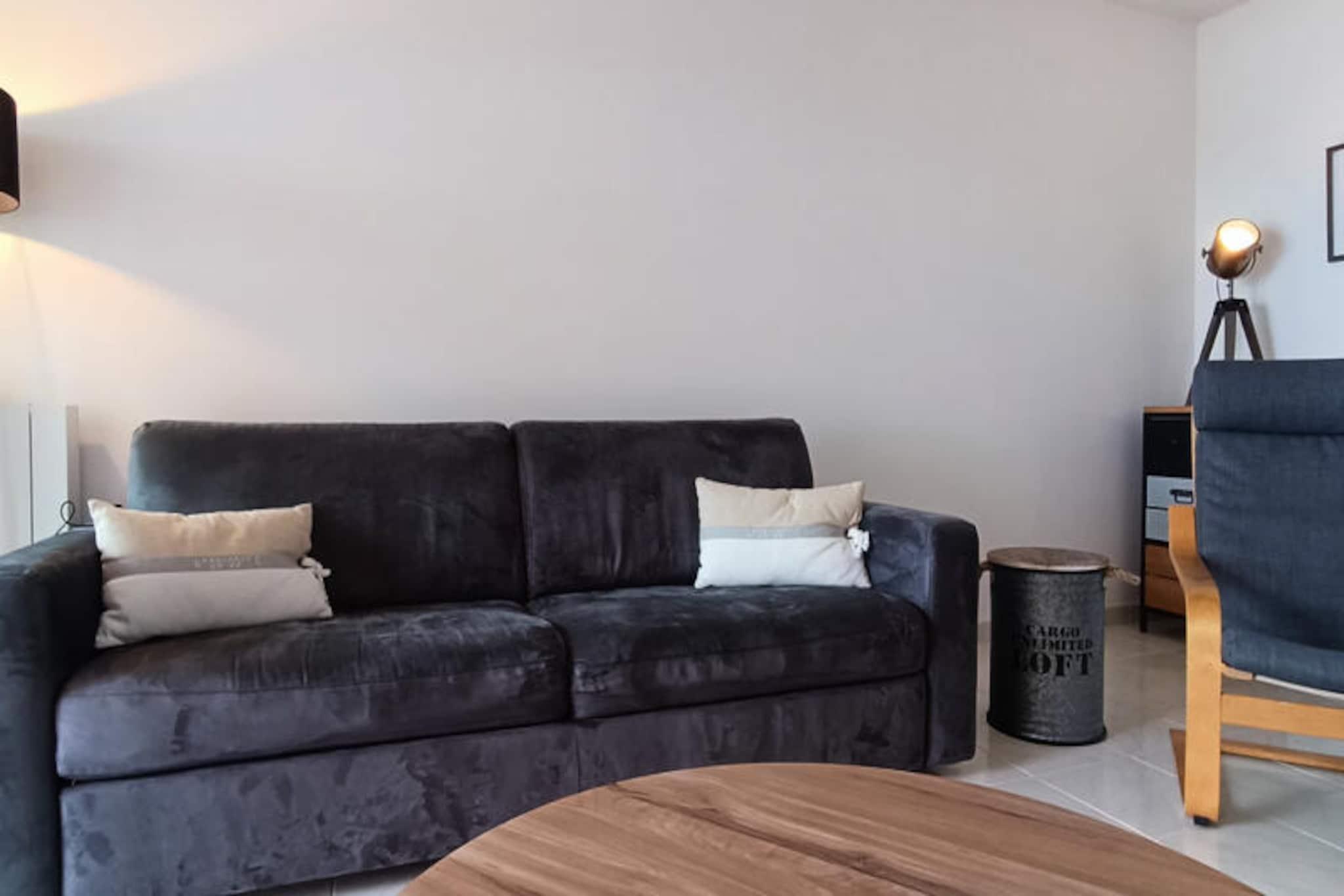 Hvor den atlantiske brise møder charmen i det historiske La Chaume-distrikt, tilbyder denne dejlige etværelseslejlighed i Les Sables-d'Olonne en rolig oase for 2 til 4 gæster. Forestil dig at vågne op til lyden af ??bølger og træde ud på din private balkon for at nyde den vidtstrakte havudsigt og den frodige grønne omgivelse i den omkringliggende park. Uanset om du søger ro eller eventyr, tilbyder dette kystnære tilflugtssted den perfekte balance mellem begge dele. \n\nIndenfor er lejligheden omhyggeligt designet til komfort og bekvemmelighed. Det hyggelige soveværelse har en 140x190 seng med rigelig opbevaringsplads, mens stuen kan prale af en 160x200 sovesofa, et tv og en spiseplads til fælles måltider. Det fuldt udstyrede køkken inviterer dig til at tilberede friske, lokale delikatesser, og fiberoptisk Wi-Fi sikrer, at du forbliver forbundet under hele dit ophold. Gå udenfor for at nyde den fælles opvarmede swimmingpool, der er åben fra maj til september, eller benyt dig af den private parkeringsplads i den sikre Grand Bleu-residens.\n\nDenne lejlighed ligger kun 60 meter fra den vilde kyst og placerer dig i hjertet af naturens skønhed. Gå en tur langs gågaderne langs havet, udforsk kajen og dens charmerende butikker kun 850 meter væk, eller tag en forfriskende dukkert i Ombret-bassinet, en naturlig swimmingpool kun 650 meter fra din dørtrin. For strandelskere venter hovedstranden og en række aktiviteter kun 1 kilometer væk.\n\nUanset om du er her for at slappe af ved poolen, udforske den pulserende lokale kultur eller blot indånde den salte havluft, tilbyder denne lejlighed et uforglemmeligt ophold i en af ??Frankrigs mest maleriske kystbyer. Lad bølgernes rytme og La Chaumes charme forynge din sjæl.