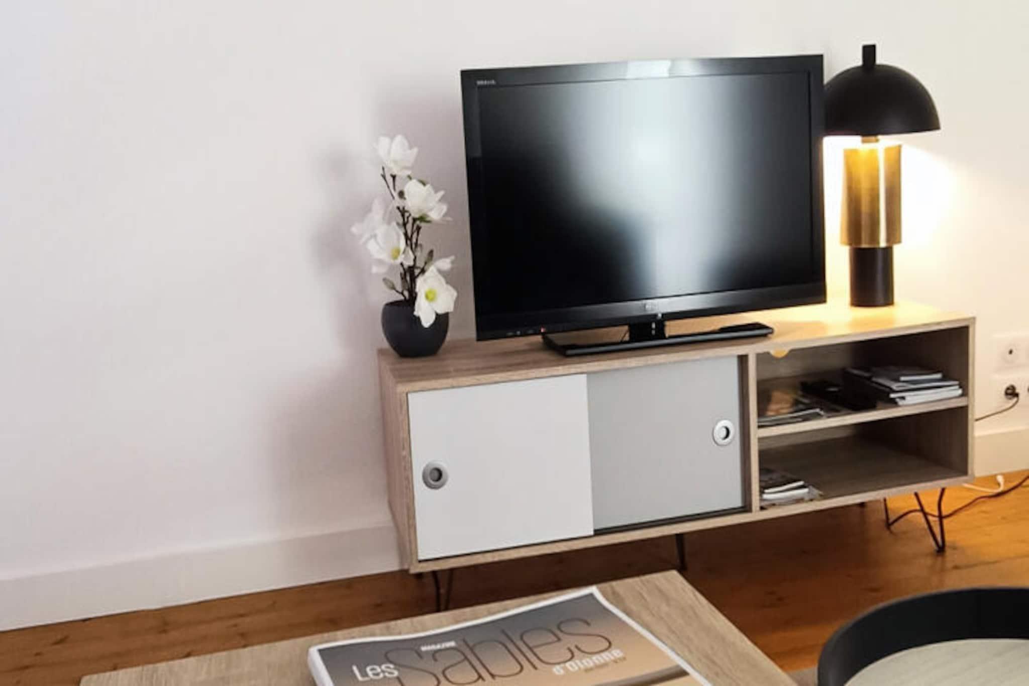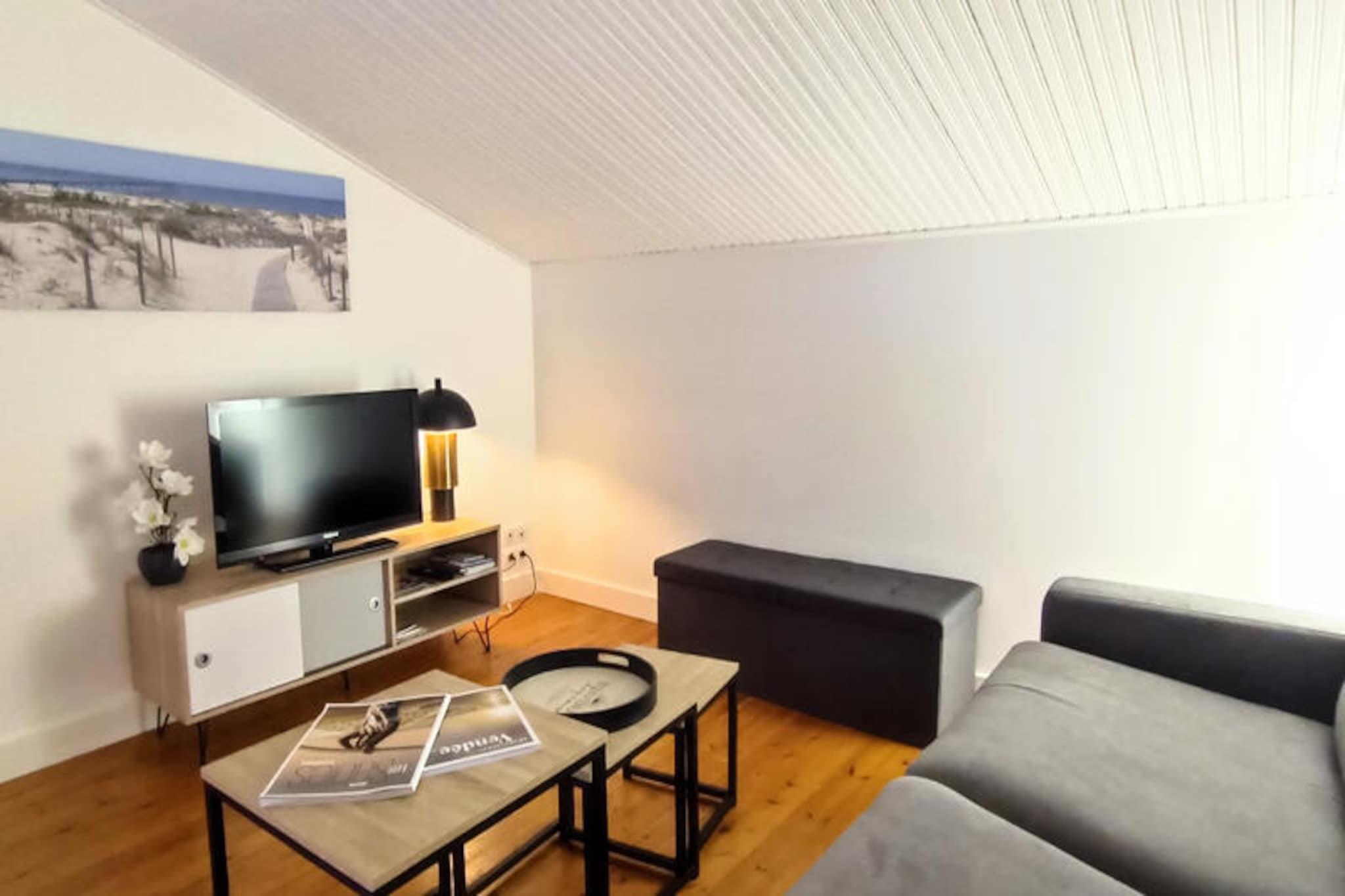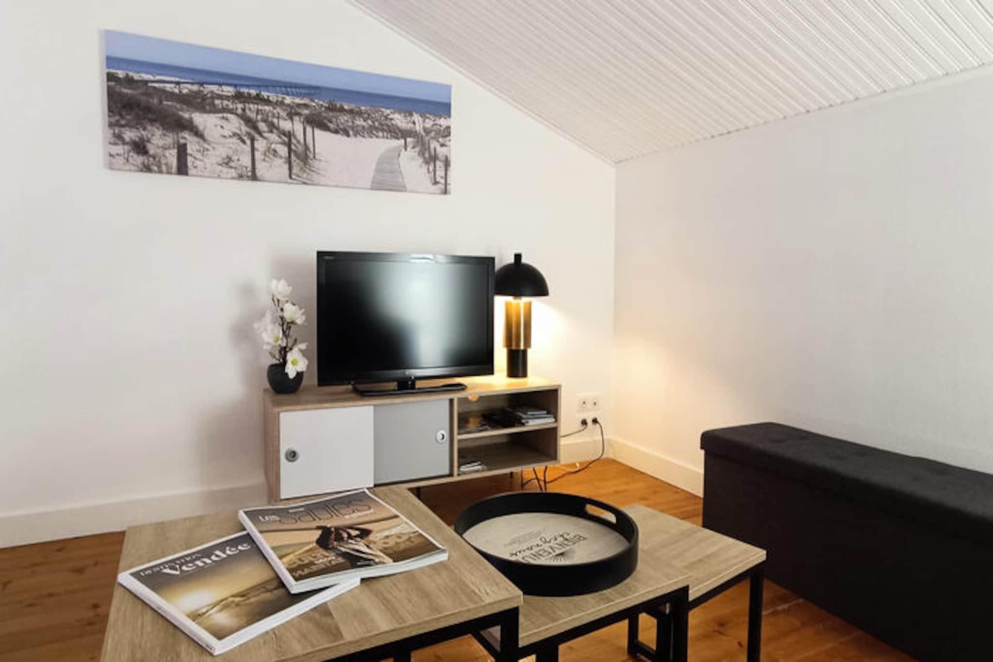 I det historiske La Chaume-distrikt i Les Sables-d'Olonne, hvor byens rødder flettes sammen med charmen ved Atlanterhavskysten, inviterer denne smukt renoverede lejlighed dig til at opleve essensen af ??livet ved havet. Fra sin anden sal tilbyder dette hyggelige tilflugtssted en blanding af moderne komfort og autentisk fransk kyststemning, perfekt til par eller små grupper, der søger en mindeværdig ferie. Forestil dig at slentre gennem hyggelige gader, indånde den salte havluft og opdage den pulserende marina kun få skridt væk. Uanset om du er her for Vendée Globe eller en rolig flugt, er denne beliggenhed ideel til at fordybe dig i havets rytme og byens rige kultur. Indenfor er lejligheden omhyggeligt designet til at sikre et afslappende ophold. Entréhallen byder dig velkommen med rigelig opbevaringsplads, der fører til en lys spiseplads og et fuldt udstyret køkken med ovn, mikrobølgeovn, køleskab med fryser, opvaskemaskine og vaskemaskine. Soveværelset har en queensize-seng med indbyggede skabe, mens mezzanin-loungeområdet tilbyder et fladskærms-tv og en komfortabel sovesofa med en rigtig madras. Et separat toilet og et badeværelse med badekar fuldender planløsningen og sikrer bekvemmelighed og privatliv. Med ADSL Wi-Fi og en privat parkeringsplads er hver eneste detalje tænkt over for din komfort. Gå udenfor og find dig selv omgivet af alt, hvad du behøver. Butikker, restauranter, cykeludlejning og offentlig transport ligger inden for gåafstand. Den maleriske Port Olona ligger kun 200 meter væk, mens Paracou-stranden med gratis parkering kun ligger 1,4 kilometer fra din dør. For en unik oplevelse kan du hoppe på den nærliggende færge for at udforske hovedstranden, bymidten eller andre attraktioner. Uanset om du søger eventyr med jetski og sejlads eller blot ønsker at slappe af på en lokal café, tilbyder La Chaume det hele. Denne lejlighed er mere end et sted at bo; det er en port til hjertet af Les Sables-d'Olonne. Lad havbrisen og charmen ved La Chaume skabe uforglemmelige minder under dit ophold.