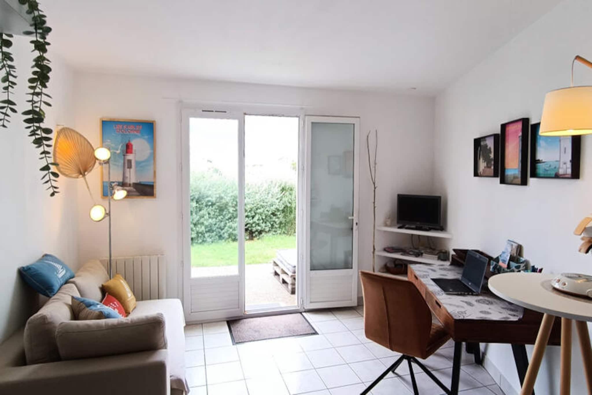 I hjertet af det historiske Chaume-distrikt i Les Sables-d'Olonne tilbyder dette dejlige sommerhus et roligt tilflugtssted kun få skridt fra det ikoniske Armandèche-fyrtårn og de maleriske kyststier. Omgivet af charmen i dette maritime kvarter, vil du mærke essensen af ??regionens rige historie, mens du nyder moderne bekvemmeligheder. Den private have inviterer dig til at slappe af i solen, mens den fælles swimmingpool lover forfriskende øjeblikke i de varmere måneder. Uanset om du er her for en romantisk ferie eller en fredelig flugt, er denne ejendom den perfekte base for at udforske Vendées kystlinjes skønhed. \n\nTræd indenfor og oplev et gennemtænkt designet rum, der blander komfort med funktionalitet. Stuen er et hyggeligt fristed, komplet med en sofa, tv, spiseplads og endda et skrivebord til dem, der har brug for at holde kontakten. Det fuldt udstyrede køkken er klar til dine kulinariske eventyr og har alt fra en kaffemaskine til krydderier. Master-suiten kan prale af en komfortabel 140x190 cm seng og et privat badeværelse med et moderne brusebad, mens et separat påklædningsværelse og toilet øger bekvemmeligheden. En vaskemaskine sikrer problemfri længere ophold. Udenfor er den private have med siddepladser ideel til spisning under åben himmel eller blot at nyde kyststemningen.\n\nBeliggende kun 900 meter fra Quai de la Chaume finder du et pulserende udvalg af butikker, restauranter og et livligt marked. Den charmerende passeur-båd, kun 1 km væk, giver en hurtig og naturskøn rute til hovedstranden og den travle bymidte. Fiske- og skaldyrselskere vil nyde de friske retter, der er tilgængelige kun 750 meter fra din dør, og et supermarked er bekvemt placeret 2 km væk for alle dine fornødenheder. Med cykelstier, kyststier og charmen ved Les Sables-d'Olonne lige ved hånden, er dette sommerhus din port til uforglemmelige minder ved havet.\n\nUanset om du udforsker de nærliggende attraktioner eller blot slapper af i haven, tilbyder denne ejendom den perfekte blanding af ro og eventyr. Book dit ophold i dag og oplev magien ved Vendée-kysten.