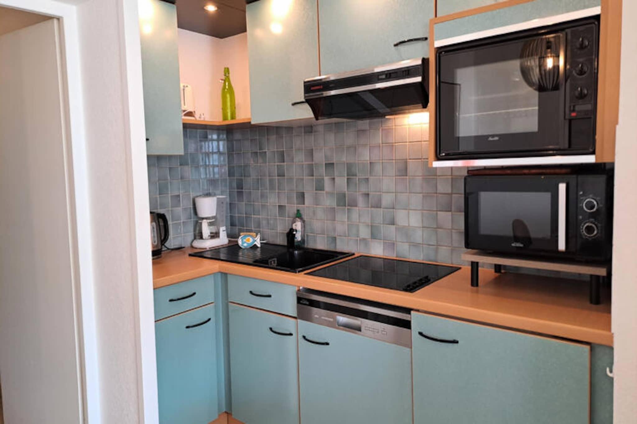 Væk dine sanser til Atlanterhavets beroligende rytme i denne charmerende lejlighed beliggende i hjertet af La Chaume, Les Sables-d'Olonne. Med en fantastisk udsigt over havet og det historiske Saint-Nicolas Priory tilbyder dette 3-stjernede tilflugtssted en perfekt blanding af ro og kystcharme, ideelt til en foryngende ferie. Forestil dig at nippe til din morgenkaffe på balkonen, mens bølgerne slår mod kysten, og Grand Jetty strækker sig ud i horisonten. \n\nIndvendigt er lejligheden omhyggeligt designet til at tilbyde komfort og bekvemmelighed. Den rummelige stue, badet i naturligt lys, tilbyder en fantastisk havudsigt, mens det åbne køkken er fuldt udstyret med moderne apparater, herunder opvaskemaskine, mikrobølgeovn og kogeplader, hvilket gør madlavning til en leg. Det hyggelige soveværelse, også med udsigt over havet, har en komfortabel dobbeltseng, og en ekstra alkove med en køjeseng sikrer rigelig soveplads til familier. Badeværelset er udstyret med bruser, vaskemaskine og masser af opbevaringsplads, suppleret af et separat toilet for ekstra privatliv. \n\nTræd udenfor, og du vil finde dig selv fordybet i det pulserende, men fredelige La Chaume-distrikt. Pointe du Prieuré Saint Nicolas og dens barske kystlinje ligger kun 150 meter væk, perfekt til naturskønne vandreture og udforskning af skjulte bugter. Gå 290 meter til Quai de la Chaume, hvor charmerende butikker og restauranter venter, eller besøg Bassin Dombret for en unik naturlig svømmeoplevelse. Det livlige Place Maraud-marked, kun 550 meter væk, tilbyder friske lokale råvarer og regionale lækkerier. For et strejf af eventyr kan du hoppe på den lille færge, kun 350 meter væk om sommeren, for at nå det travle bycentrum og Grand Beach. \n\nMed en privat parkeringsplads, direkte busforbindelse til togstationen og en række valgfrie tjenester, der forbedrer dit ophold, er denne lejlighed din port til det bedste af Les Sables-d'Olonne. Uanset om du søger en romantisk flugt, en familieferie eller et roligt tilflugtssted, lover denne kystperle uforglemmelige minder ved havet.