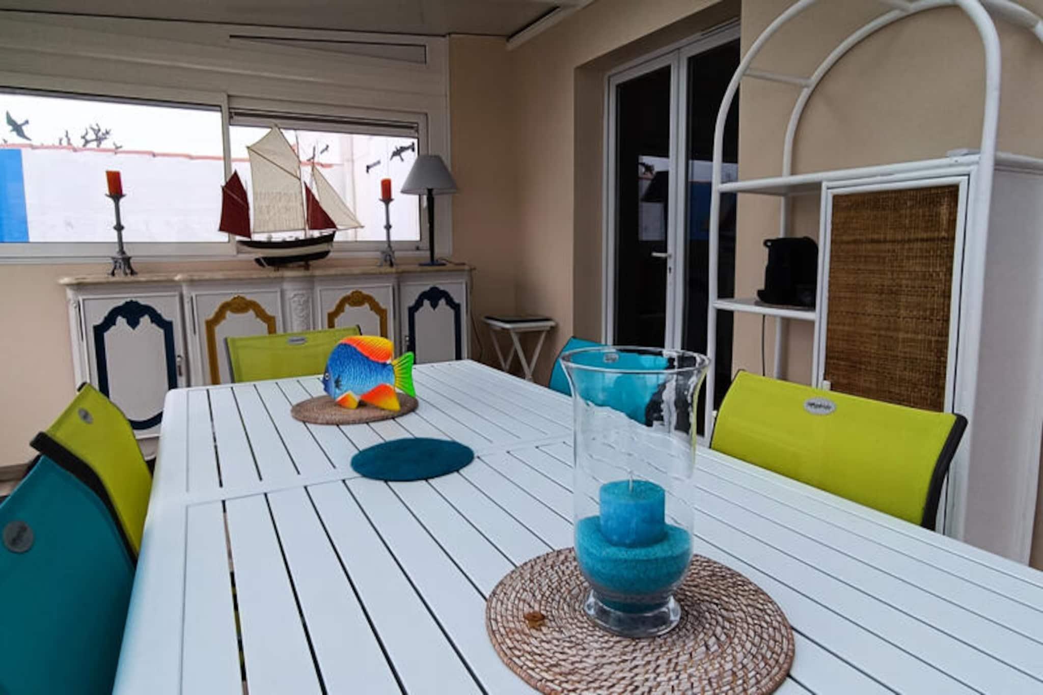 I det charmerende historiske distrikt La Chaume i Les Sables d'Olonne tilbyder dette dejlige hus med aircondition et roligt tilflugtssted kun få skridt fra havet og Grande Jetée. Forestil dig at vågne op til den blide havbrise, slentre gennem maleriske gader og udforske det pulserende liv i denne kystperle, alt imens du nyder den fredelige atmosfære i din private have. Uanset om du søger en romantisk ferie eller et familieeventyr, inviterer denne ejendom dig til at opleve det bedste af landsbylivet og kystcharme. Huset kan prale af tre komfortable soveværelser, herunder to med queensize-senge (en elektrisk) og et med to enkeltsenge, alle udstyret med rigelig opbevaringsplads. Det moderne badeværelse har bruser og håndvask, mens det separate toilet øger bekvemmeligheden. Det åbne køkken er fuldt udstyret med opvaskemaskine, ovn, køleskab/fryser og mere, hvilket gør det nemt at tilberede lækre måltider. Slap af i den hyggelige stue med aircondition, fjernsyn og sofa, eller slap af på den airconditionerede veranda, der problemfrit forbinder indendørs og udendørs områder. Udenfor venter den private have med liggestole og havemøbler, perfekt til at nyde solen eller en stille aften. En garage tilbyder sikker opbevaring af cykler, surfbrætter eller motorcykler, hvilket sikrer et problemfrit ophold.\n\nDenne ejendom ligger kun 260 meter fra havet og vandrestierne og er ideelt placeret til at udforske området til fods, på cykel eller med bus. Dombret-bassinet, La Chaume-kajen, lokale markeder og restauranter ligger alle inden for gåafstand, mens færgen tilbyder hurtig adgang til byens centrum og den store hovedstrand Les Sables d'Olonne. Uanset om du udforsker den vilde kyst, nyder frisk bagværk fra det nærliggende bageri eller nyder en svømmetur på den naturlige strand, er hvert øjeblik her uforglemmeligt.\n\nMed gratis parkering på gaden og en privat plads foran garagen sikrer dette hus bekvemmelighed og komfort til din ferie. Små hunde er velkomne, og yderligere tjenester som lagner og håndklæder kan reserveres for at gøre dit ophold endnu mere behageligt. Kom og oplev den perfekte blanding af ro og pulserende kystliv i La Chaume.