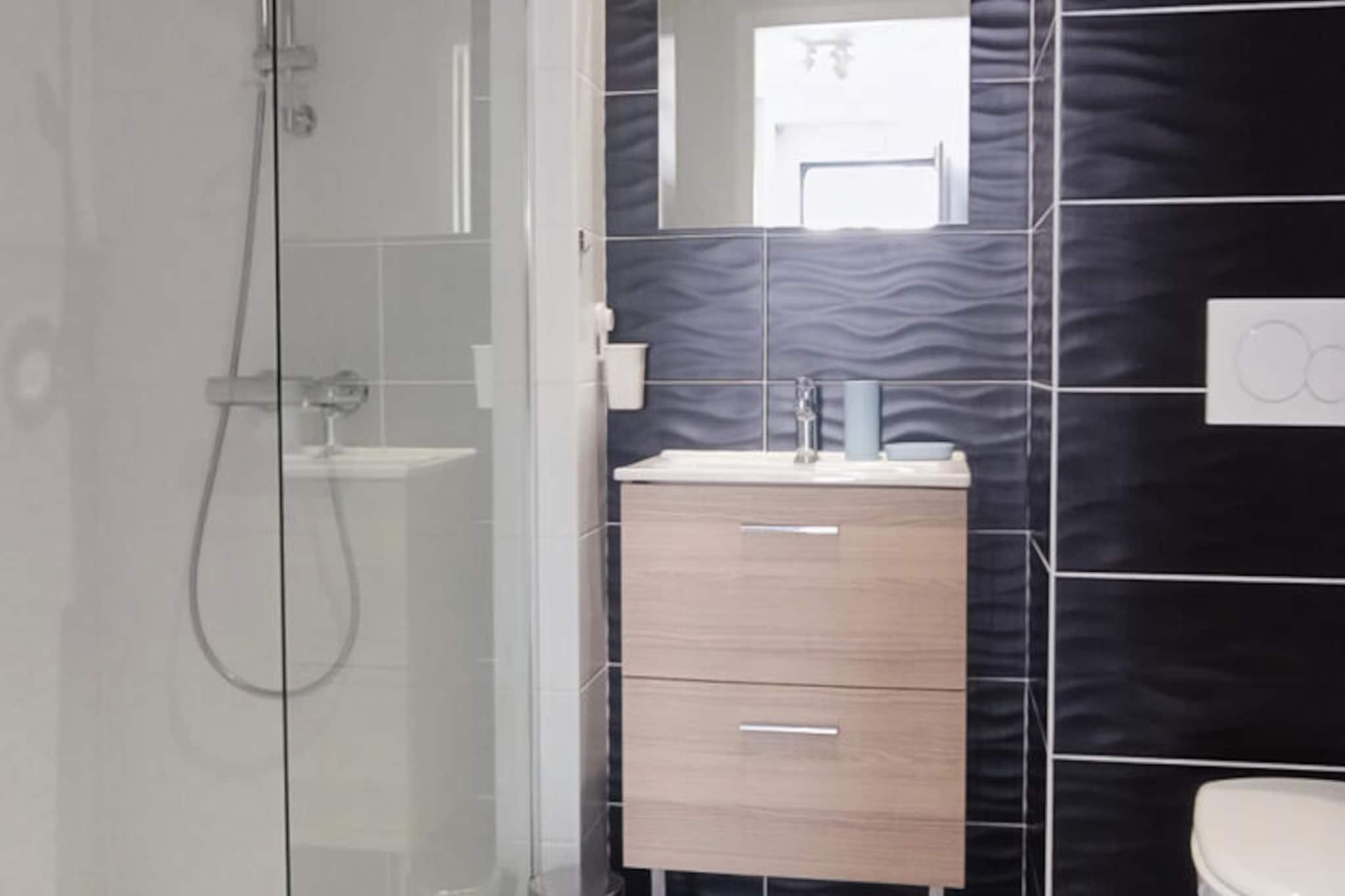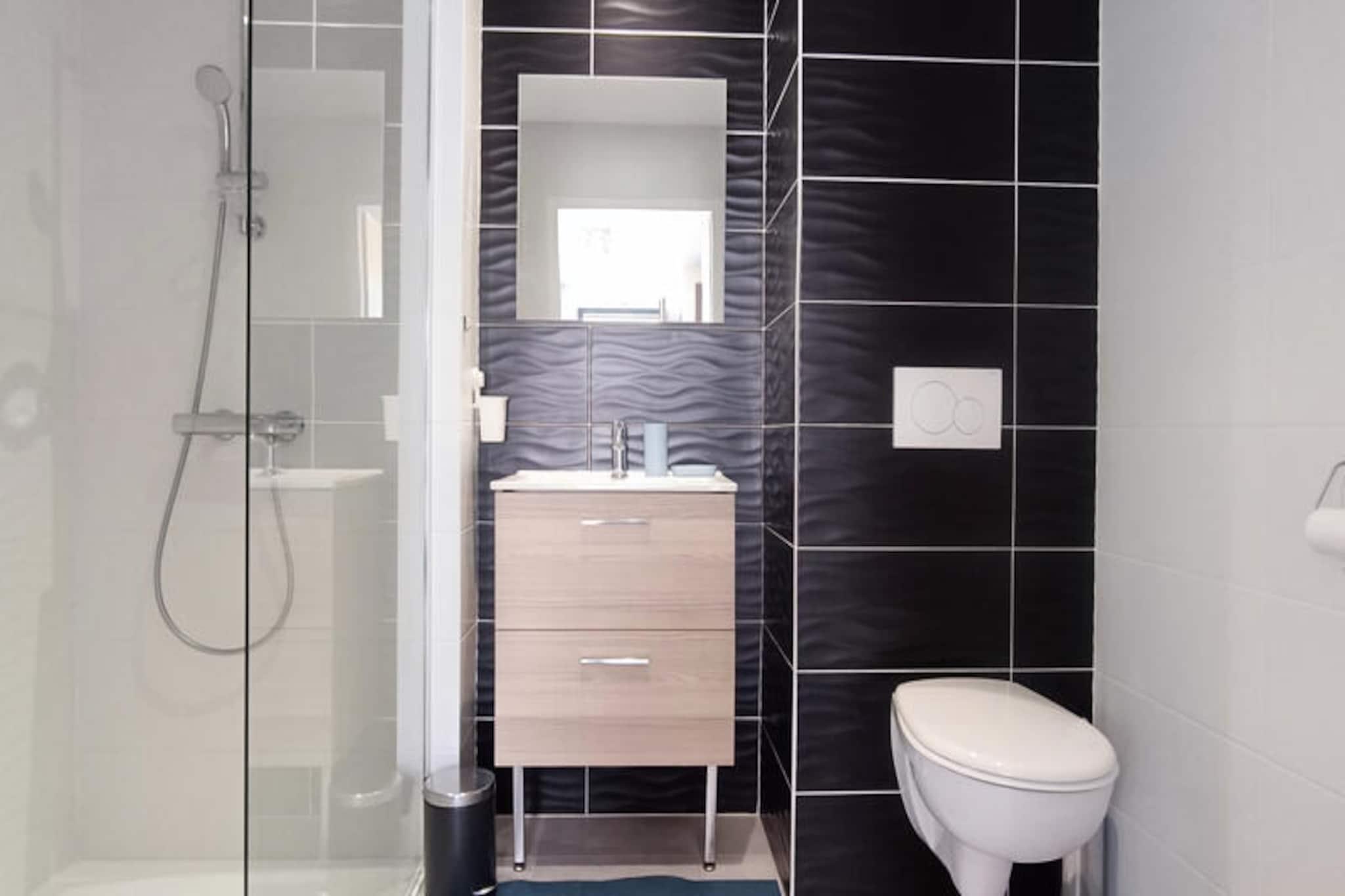 Kun en kort gåtur fra Atlanterhavskysten tilbyder denne charmerende lejlighed et roligt tilflugtssted i miljøvenlige omgivelser. Forestil dig at vågne op til den blide havbrise og starte din dag med en afslappet 5-minutters gåtur til Tanchet-stranden, hvor gyldent sand og glitrende vand venter. Uanset om du søger afslapning eller eventyr, tilbyder denne beliggenhed den perfekte balance mellem ro og livlige aktiviteter ved havet. Denne 43 m² store lejlighed ligger på første sal i en velholdt bolig og er omhyggeligt designet til at rumme op til fire gæster. Stuen har en hyggelig sovesofa, ideel til børn eller unge voksne, mens soveværelset tilbyder en komfortabel dobbeltseng til afslappende nætter. Det fuldt udstyrede køkken med Nespresso-kaffemaskine, mikrobølgeovn/ovn-kombination og komfur inviterer dig til at tilberede lækre måltider med lethed. Gå ud på den private balkon for at nyde din morgenkaffe eller slappe af efter en dag med udforskning. Moderne faciliteter, herunder Wi-Fi og et fladskærms-tv, sikrer et behageligt og forbundet ophold. Bekvemmelighed er lige ved hånden med en sikker parkeringsplads i kælderen og nærhed til vigtige attraktioner. Det pulserende kasino og et supermarked ligger blot 5 til 9 minutters gang væk, mens det charmerende marked La Pironnière ligger en behagelig gåtur på 15 minutter. For en smagsprøve på den lokale kultur ligger Les Sables-d'Olonnes travle bymidte kun 5 minutters kørsel derfra, og TGV-togstationen, der forbinder dig til Paris på bare 3,5 timer, ligger blot 7 minutters kørsel derfra. Uanset om du er her for at nyde solen, udforske de lokale markeder eller nyde den livlige kystatmosfære, er denne lejlighed den ideelle base for en uforglemmelig ferie. Lad skønheden i Vendée-regionen og komforten i denne dejlige indkvartering gøre din ferie virkelig speciel.
