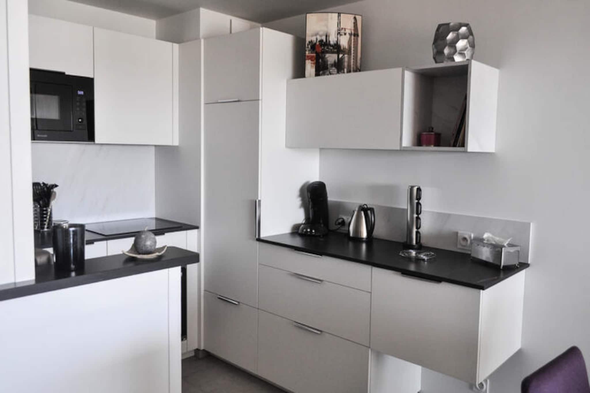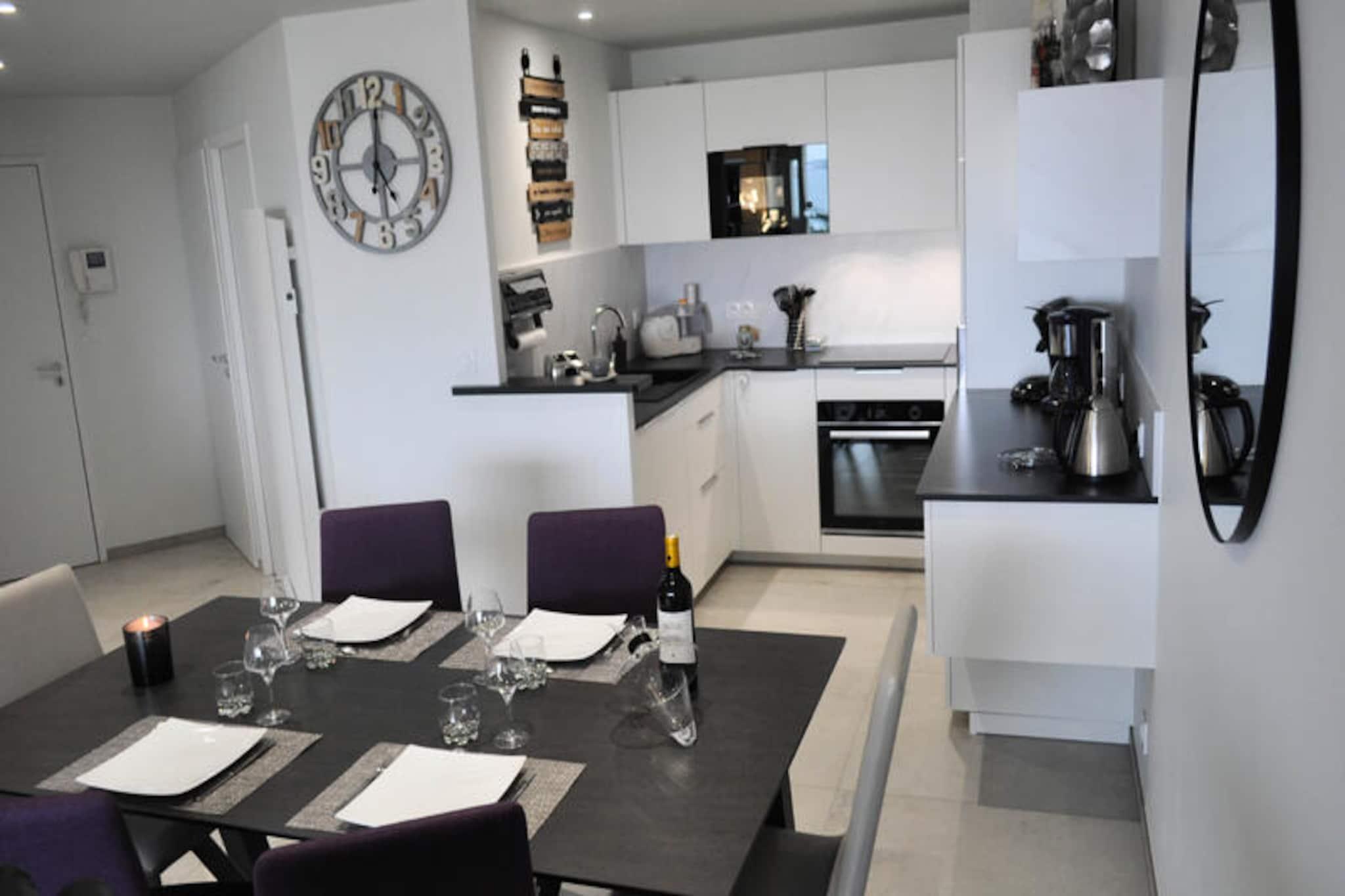 Vågn op til den beroligende lyd af bølger og den betagende udsigt over Atlanterhavet fra denne charmerende lejlighed i hjertet af Les Sables d'Olonne. Beliggende i det maleriske og historiske La Chaume-distrikt, tilbyder dette feriested med to soveværelser den perfekte blanding af ro og pulserende kystliv. Uanset om du nipper til kaffe på din private balkon med udsigt over havet eller slentrer langs den barske kystlinje, er hvert øjeblik her en hyldest til havets skønhed. \n\nLejligheden er på 70 m² og er omhyggeligt designet til komfort og afslapning. Den rummelige opholds- og spisestue kan prale af en fantastisk havudsigt, hvilket skaber en rolig atmosfære til at slappe af efter en dag med udforskning. Det fuldt udstyrede åbne køkken gør madlavning til en leg, mens de to hyggelige soveværelser, der begge har en blød dobbeltseng, lover afslappende nætter. For ekstra bekvemmelighed har lejligheden et moderne badeværelse med bruser, vaskemaskine og separat toilet. Hold dig forbundet med højhastigheds-Wi-Fi, mens du planlægger dine eventyr. \n\nTræd udenfor og fordyb dig i La Chaumes charme. Kun 150 meter væk kan du opleve Pointe du Prieuré Saint-Nicolas og dens afsondrede bugter. Du kan gå 290 meter til den livlige Quai de La Chaume, hvor der findes butikker, restauranter og terrasser. Familier vil elske den naturlige havvandspool ved Bassin Dombret, kun 350 meter væk, mens madelskere kan udforske det travle marked Place Maraud for at finde friske, lokale råvarer. Færgen, der ligger kun en kort gåtur væk, giver hurtig adgang til bymidten og den ikoniske Grande Plage. \n\nUanset om du søger en fredelig ferie ved havet eller en pulserende kulturel oplevelse, er denne lejlighed din port til det bedste af Les Sables d'Olonne. Book dit ophold i dag og skab uforglemmelige minder ved havet.
