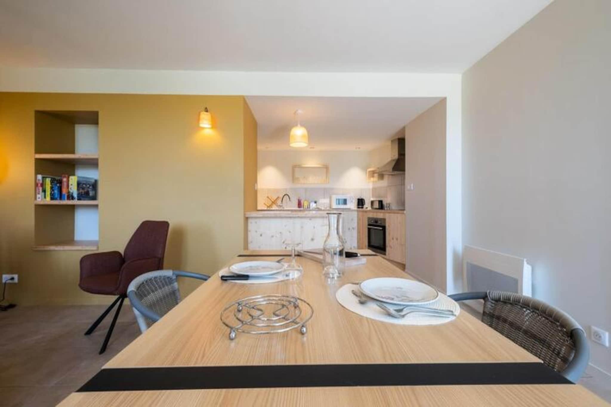 I hjertet af den maleriske landsby Les Salces, beliggende på det fredfyldte Aubrac-plateau i Lozère-regionen, inviterer dette charmerende fælleshus, Marguerite, dig til at opleve den perfekte blanding af ro og rustik charme. Omgivet af uberørt natur og en rig landlig kulturarv er dette et paradis for dem, der søger et fredeligt tilflugtssted væk fra hverdagens travlhed. Her går tiden langsommere, og skønheden i det franske landskab er i centrum. Huset, der ligger på første sal i et smukt restaureret traditionelt landsbyhus, kombinerer harmonisk moderne komfort med autentisk karakter. Det har komfortabel plads til op til fire gæster og byder på en lys stue med en hyggelig sovesofa, et fuldt udstyret køkken til at tilberede lækre måltider og et rummeligt soveværelse med en luksuriøs dobbeltseng og eget badeværelse. Et separat toilet bidrager til bekvemmeligheden. Udenfor venter en privat gårdhave med havemøbler og grill, perfekt til at nyde solrige eftermiddage eller stjerneklare aftener. Det omkringliggende område byder på uendelige muligheder for udforskning. Fra det bølgende landskab på Aubrac-plateauet til de charmerende lokale landsbyer er der et væld af naturlig skønhed og kulturarv at opdage. Uanset om du vandrer ad naturskønne stier, nyder regionale delikatesser eller blot slapper af ved den fælles swimmingpool, er hvert øjeblik her en hyldest til livets enkle glæder. Vælg Marguerite for et uforglemmeligt ophold, hvor komfort møder autenticitet, og lad den rolige atmosfære på Les Salces forynge din sjæl.