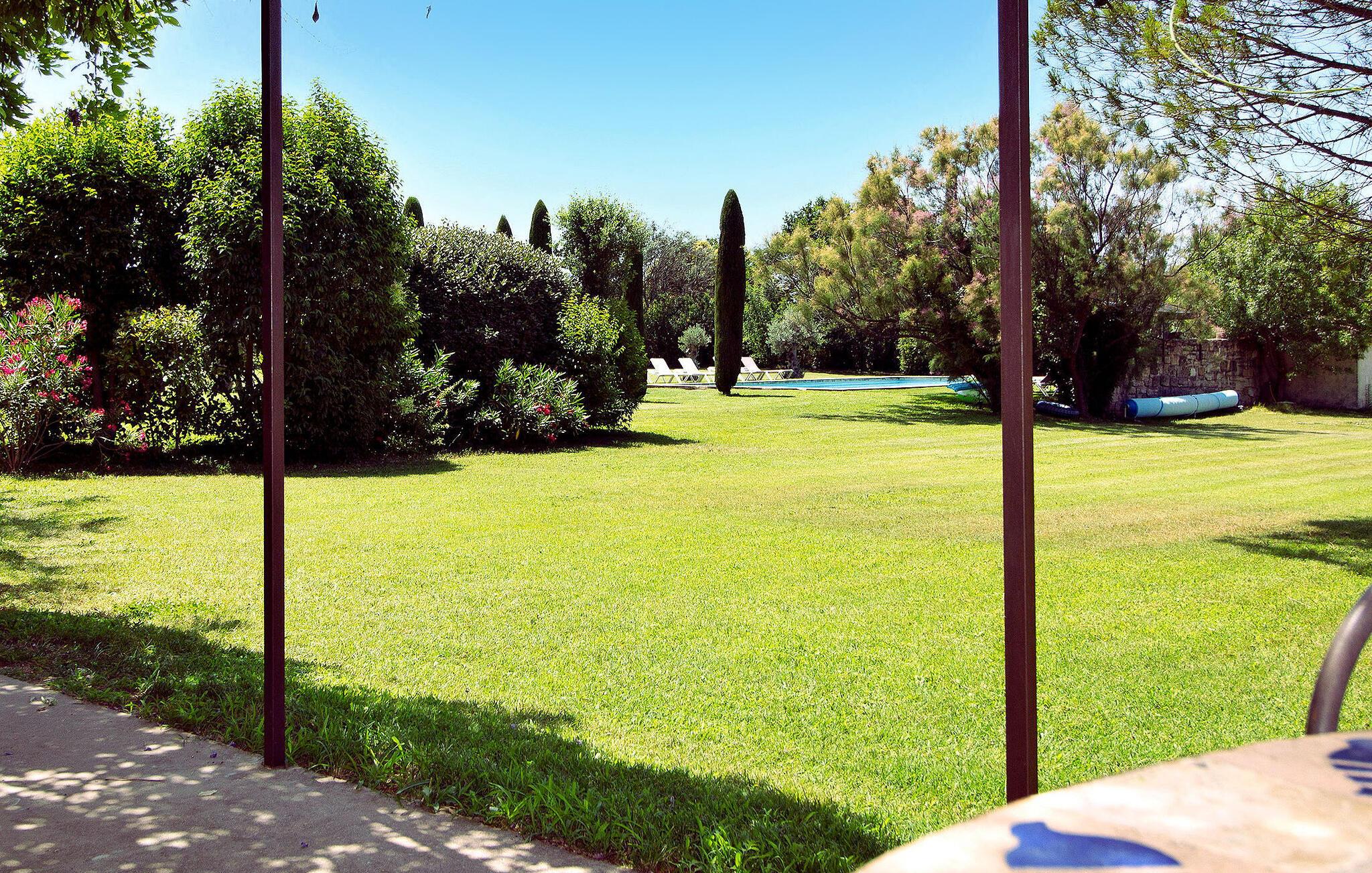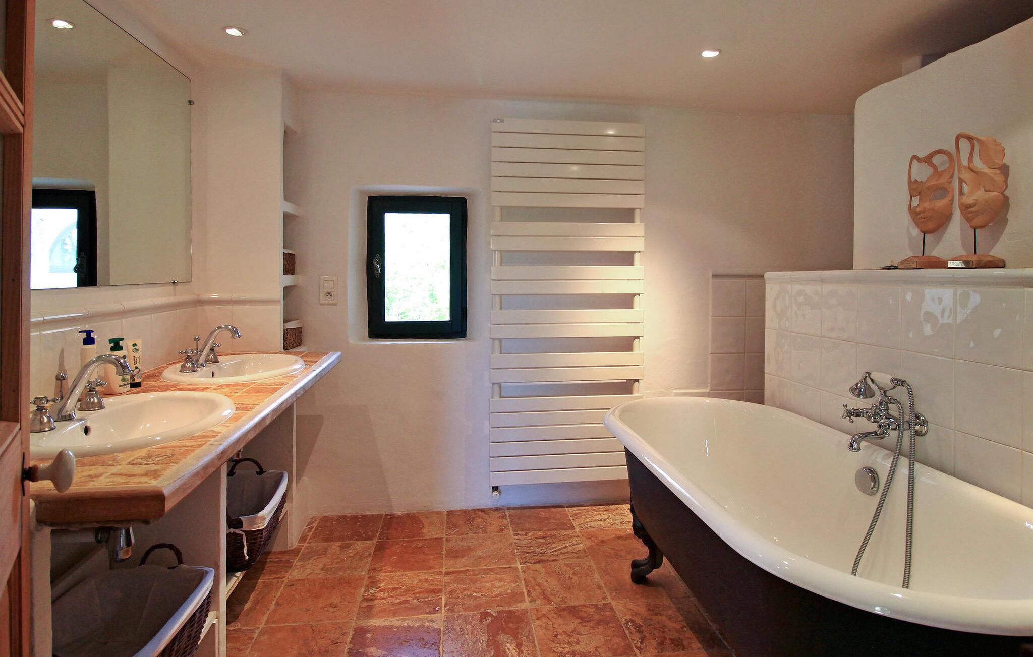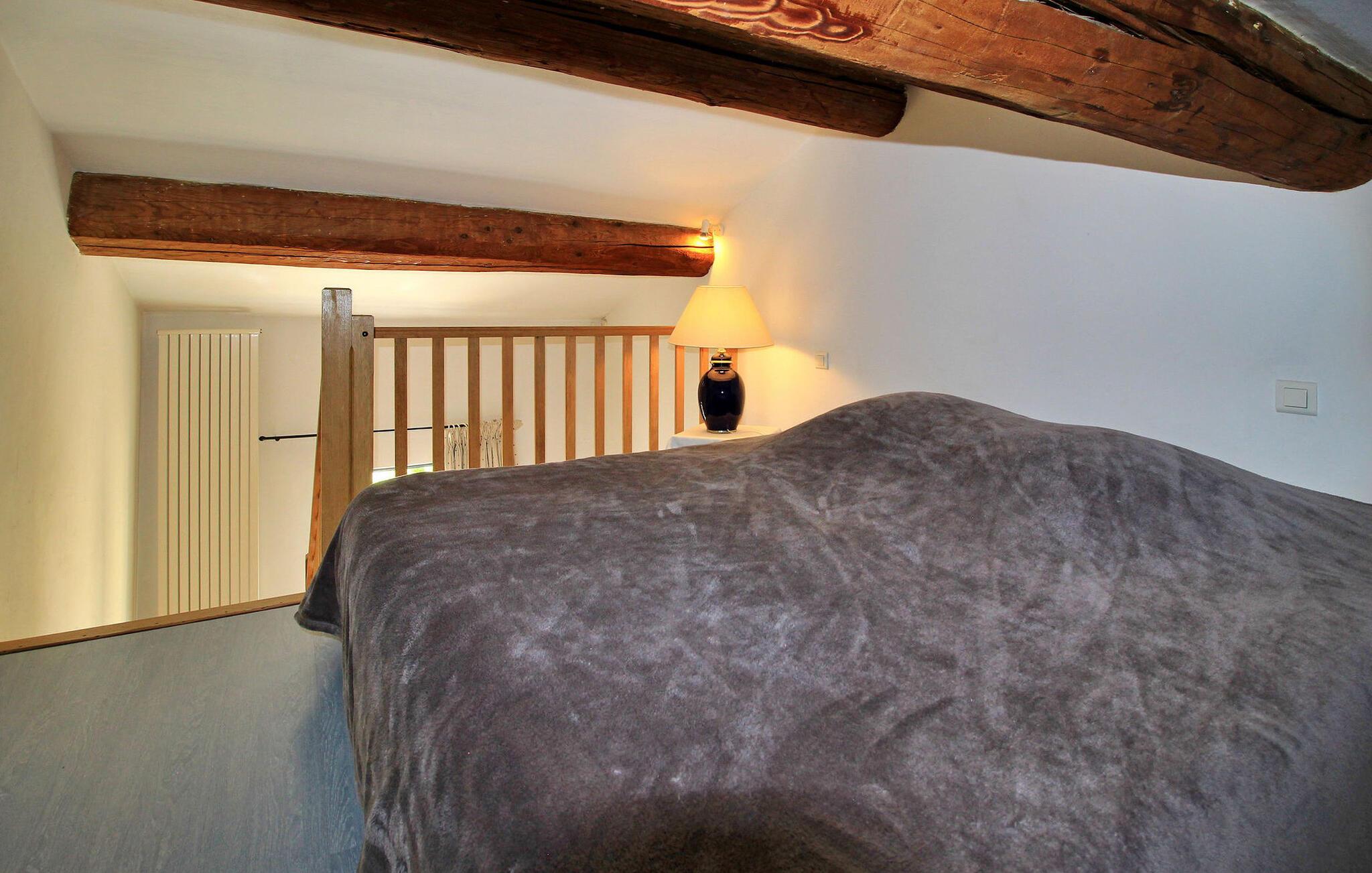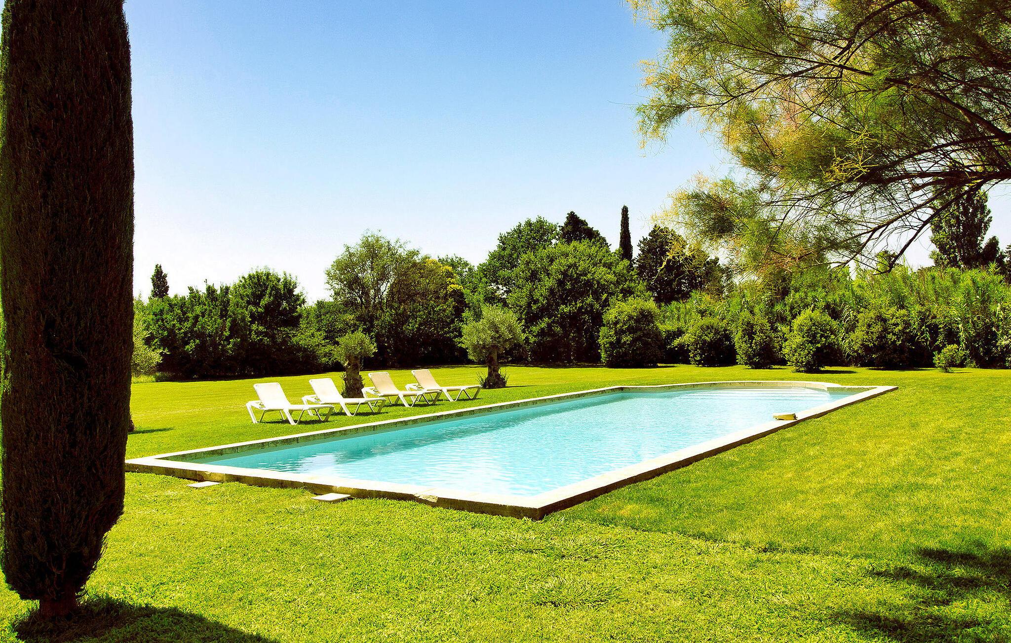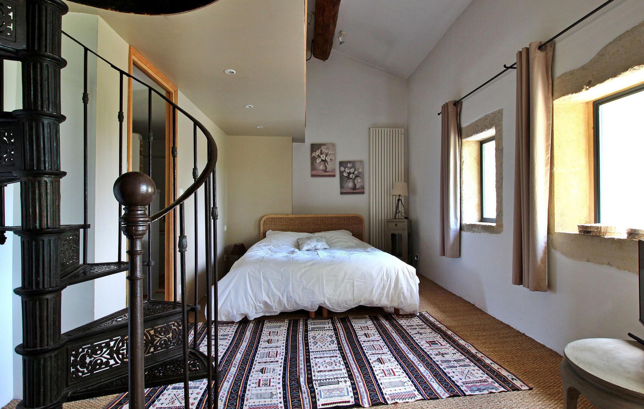 Denne bondegård i Les Taillades nær Luberon tilbyder rigelig plads og komfort mellem hovedhuset og en tilstødende uafhængig Mazet. Beliggende i udkanten af landsbyen og omkranset af naturskønne vandrestier, har denne ejendom et rummeligt haveområde og en opvarmet privat pool. Hovedhuset består af en stueetage med en indbydende opholdsstue, der inkluderer en stue, spisestue og separat køkken. Køkkenet er veludstyret til kulinariske behov. Ovenpå har de fire værelser med aircondition og eget badeværelse. Ved siden af hovedhuset står den uafhængige Mazet som en separat bolig, med en stue, et åbent køkken og tre ekstra soveværelser med fælles badeværelsesfaciliteter, hvilket giver gæsterne mere plads og privatliv. Udendørsrummet er stort og omfatter lukkede skovklædte grunde. Terrasserne giver dejlige rammer for udendørs afslapning, komplet med madlavnings- og spisefaciliteter. Den opvarmede pool, sikret med et alarmsystem og placeret omkring 60 m fra huset, tilbyder et forfriskende tilflugtssted, ledsaget af rigelige liggestole og skyggefulde områder. Stuehuset ligger omkring 5 minutters gang fra landsbyen med butikker og restauranter. Besøg de charmerende, maleriske landsbyer i Luberon: Gordes, Roussillon, Bonnieux, Lacoste. Bemærk venligst, at ejerne bor på stedet i et separat hus overfor lejeejendommen, dog har gæsterne eksklusiv adgang til poolen og haven under deres ophold. Derudover er kæledyr velkomne efter forudgående anmodning.