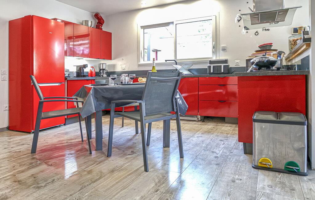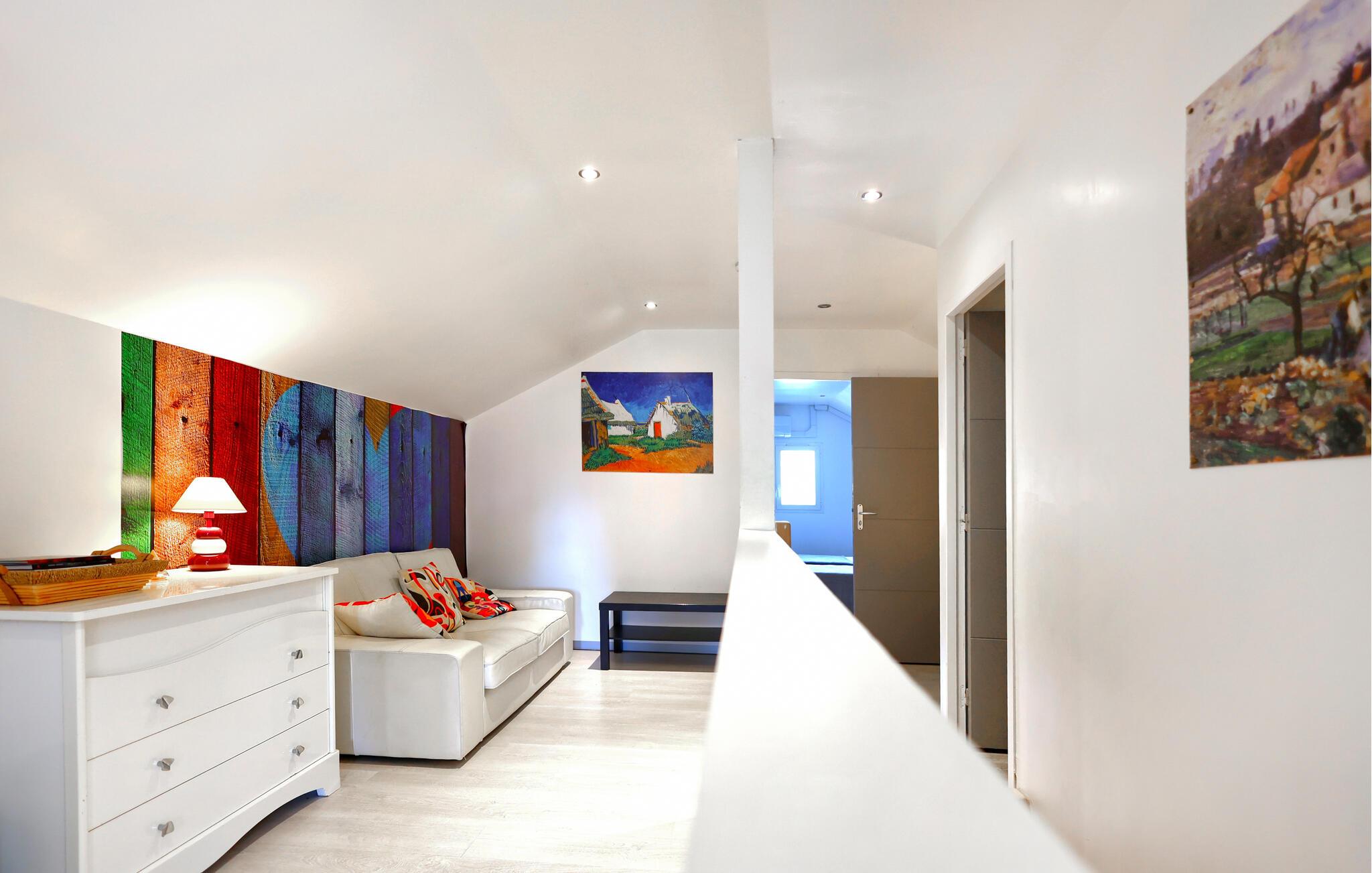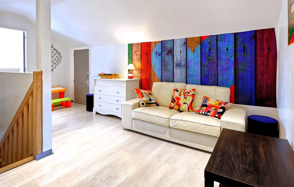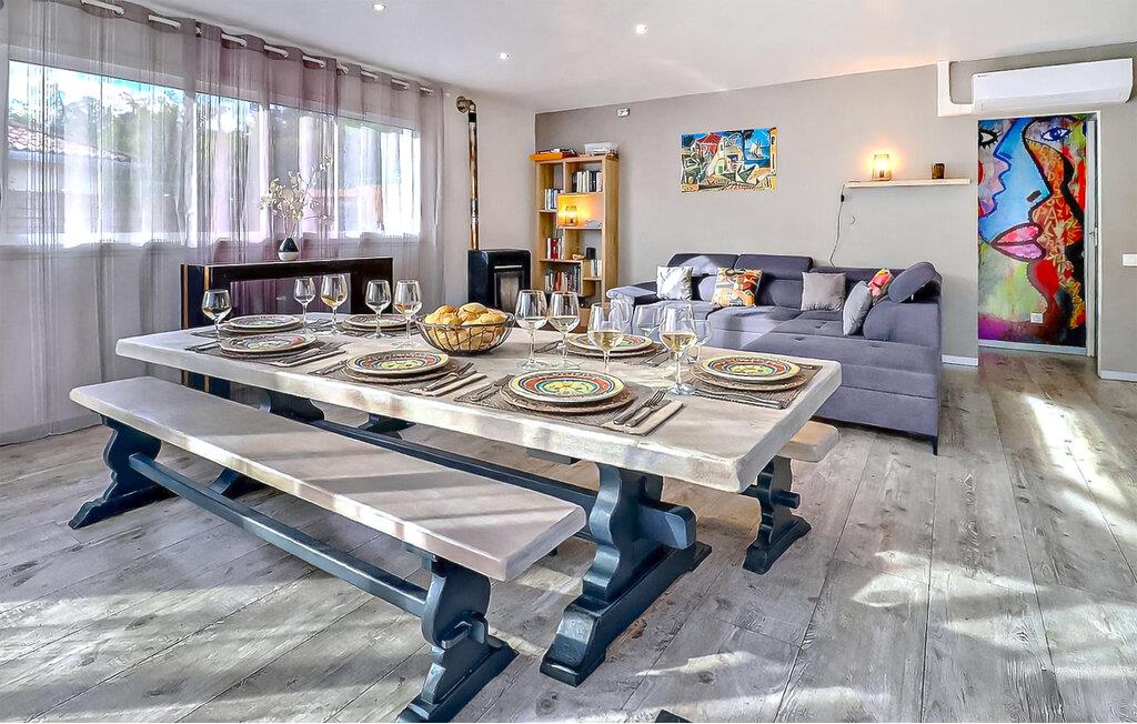 Dette smukt beliggende hus har en indbydende atmosfære, møbler af høj kvalitet og muntre farvestrejf. Det er perfekt, hvis I planlægger en ferie med en stor familie eller en gruppe venner. Stream de nyeste serier, spil kort med børnene eller nyd blot udsigten over de omkringliggende grønne områder, mens I laver mad sammen i køkkenet.