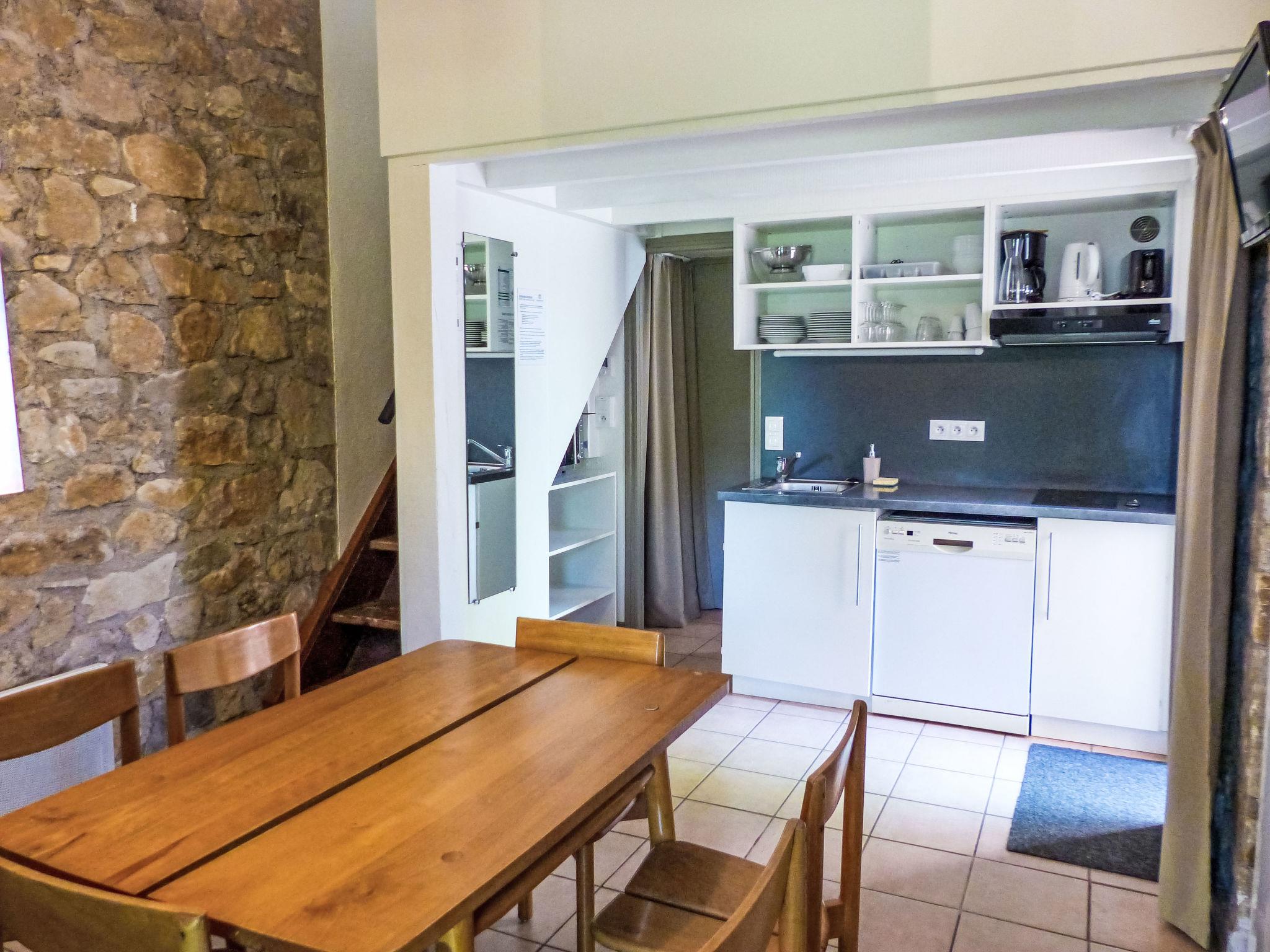 "Les Vans-Cottage 3 pièces 4 personnes", 3-room terraced house 41 m2 on 2 levels. Practical and beautiful furnishings: living room with TV (flat screen). Exit to the terrace. 1 room with 1 x 2 bunk beds (80 cm, length 190 cm). Kitchenette (dishwasher, 4 ceramic glass hob hotplates, toaster, kettle, microwave, freezer, electric coffee machine). Shower, sep. WC. Upper floor: 1 open room with sloping ceilings with 1 french bed (160 cm, length 200 cm). Electric heating. Terrace. Terrace furniture. Facilities: children's high chair, baby cot (extra). Please note: maximum 2 pets/ dogs allowed. Smoke alarm.