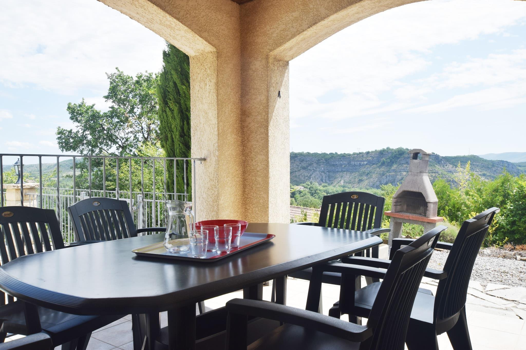 Dette feriehus med 4 soveværelser i Chassagnes, kun 2 km fra Les Vans Centre, er ideelt for familier eller grupper på op til 12 gæster. Det har en privat indhegnet pool (10×4 m), en frodig have med udsigt over bjergene og en terrasse med grill og liggestole. Indendørs finder du to køkkener, to stue/spisestuer med tv og radioer samt soveværelser med dobbeltsenge og køjesenge. Babyudstyr såsom en barneseng og høj stol tilbydes gratis, og der er aircondition, elvarme og privat parkering. Naturelskere kan udforske de nærliggende Gorges de l'Ardèche, kastanjeskove og floder - perfekt til vandreture, kanosejlads, kajaksejlads og fiskeri. Vandsport og floden ligger blot 1 km derfra, mens tennisbaner ligger 5 km fra villaen. Les Vans byder på charmerende pladser, markeder og restauranter som La Récré, Don Camillo og Côté Jardin, alle inden for 2 km. Den nærmeste lufthavn, Aérodrome Aubenas Ardèche Méridionale, ligger 29,3 km derfra. Med naturskønne omgivelser og nem adgang til udendørs eventyr er denne villa en komfortabel og veludstyret base for en mindeværdig Ardèche-ferie.