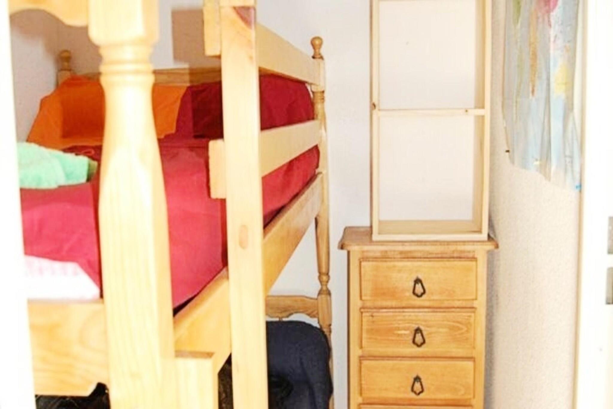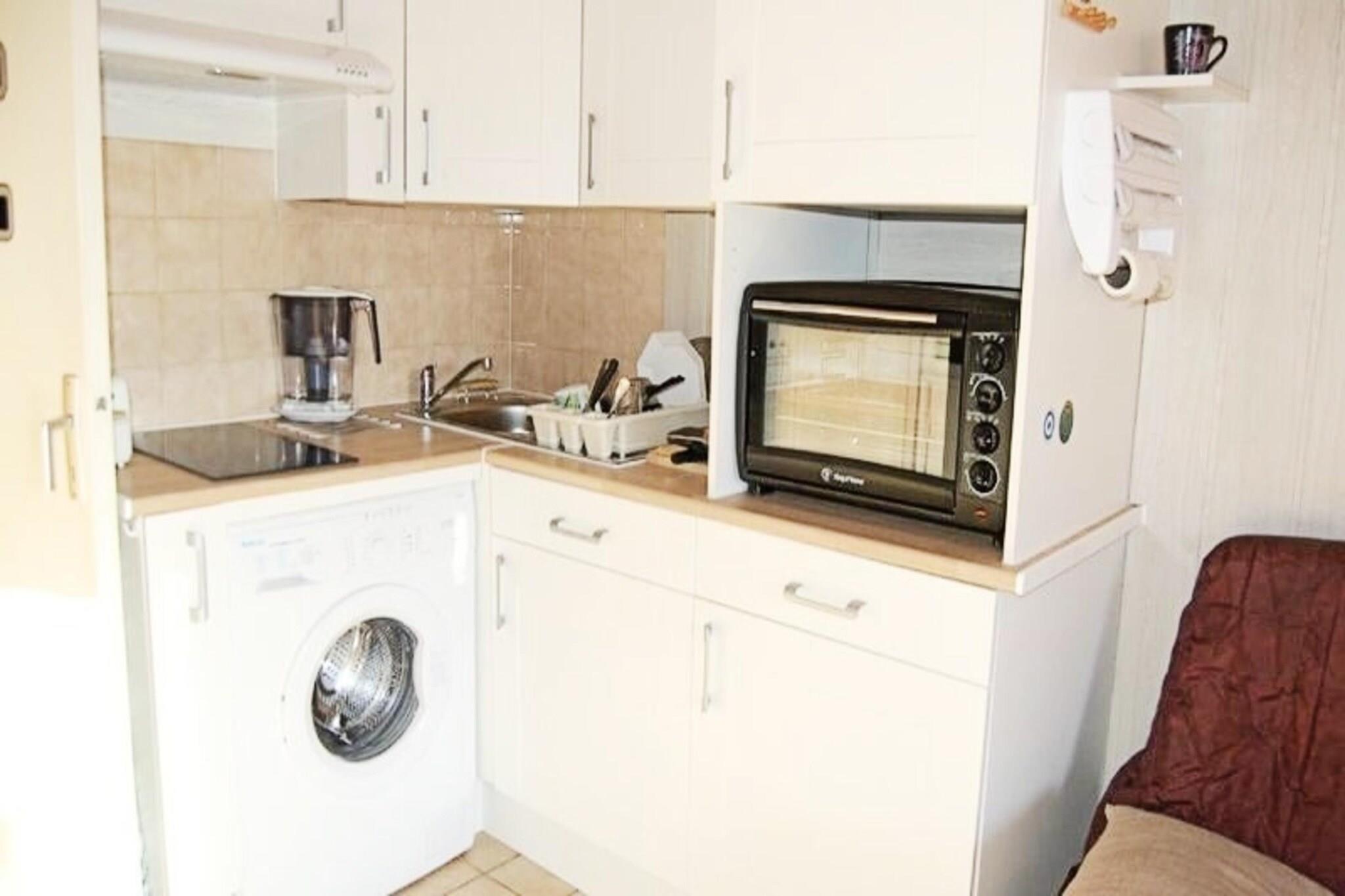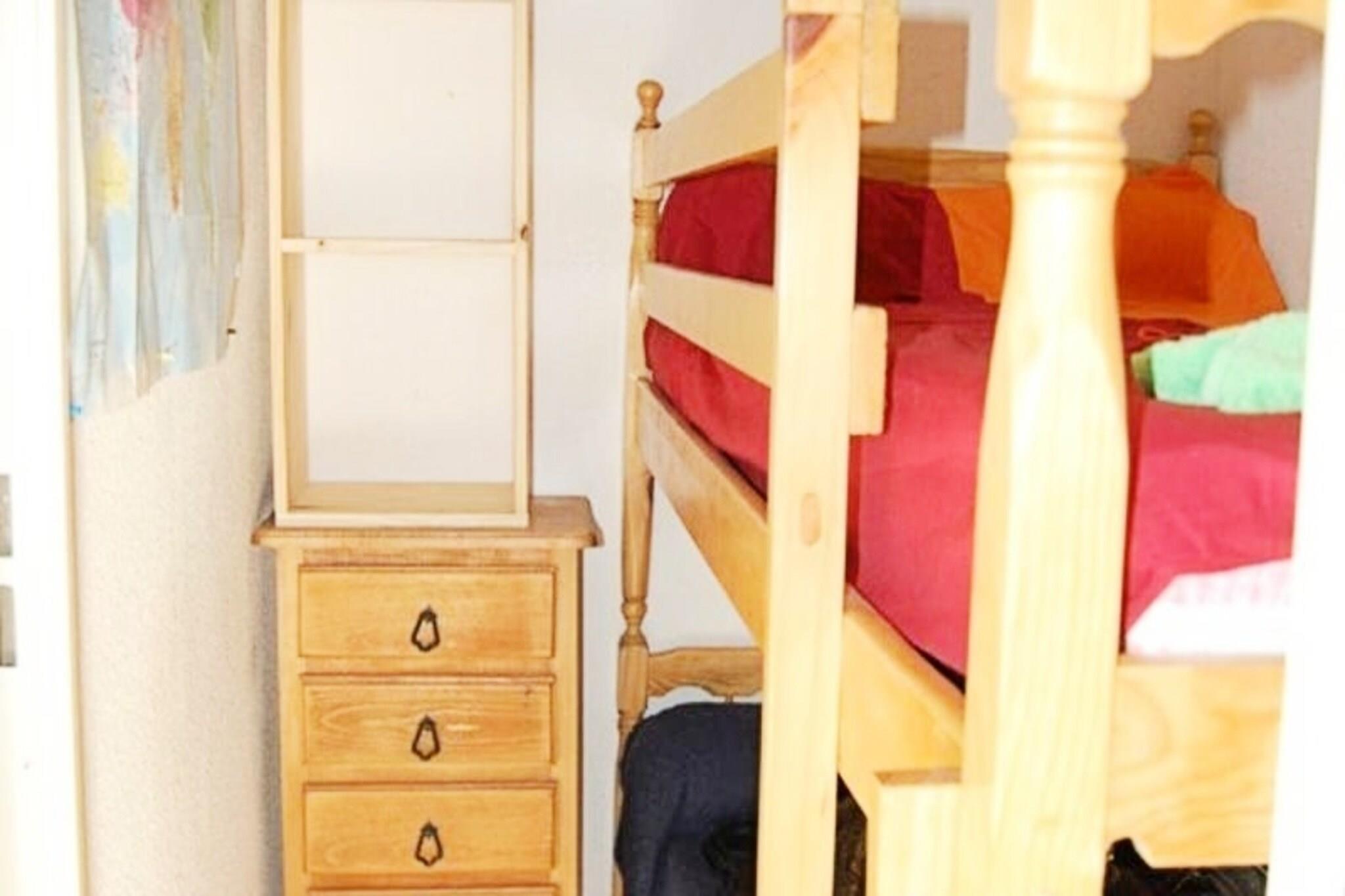 Denne hyggelige studiehytte mezzaninhytte tilbyder et behageligt ophold for op til 5 gæster. Den har en kahyt med køjesenge og en mezzanin udstyret med en dobbeltseng og en enkeltseng, perfekt til familier eller små grupper. Ejendommen er ikke kæledyrsvenlig, hvilket sikrer et rent og allergifrit miljø. Med et areal på 26 m² og en 10 m² terrasse giver denne charmerende hytte et afslappende sted at slappe af efter en dag med udforskning. Beliggende i havsøsektoren tilbyder kabinen en fredelig og fredfyldt atmosfære. Hytten er ideelt beliggende med stranden kun 800 meter væk og bymidten 700 meter fra dit dørtrin. Gæsterne kan nyde nærliggende attraktioner, såsom den smukke marinesø, kun 50 meter væk, og som tilbyder muligheder for fredelige gåture eller vandaktiviteter. Butikker er bekvemt placeret 350 meter fra ejendommen, hvilket giver nem adgang til lokale markeder og caféer, perfekt for dem, der ønsker at prøve det lokale køkken eller hente det væsentlige under deres ophold. Det veludstyrede køkken omfatter en elektrisk kogeplade, miniovn, mikroovn, køleskab med fryser og vaskemaskine for ekstra bekvemmelighed. Der er tv og dvd til underholdning, hvilket sikrer et afslappende ophold. Med en privat parkeringsplads med en barriere tilbyder kabinen sikker parkering under dit besøg, hvilket gør den til den perfekte base for en mindeværdig ferie.