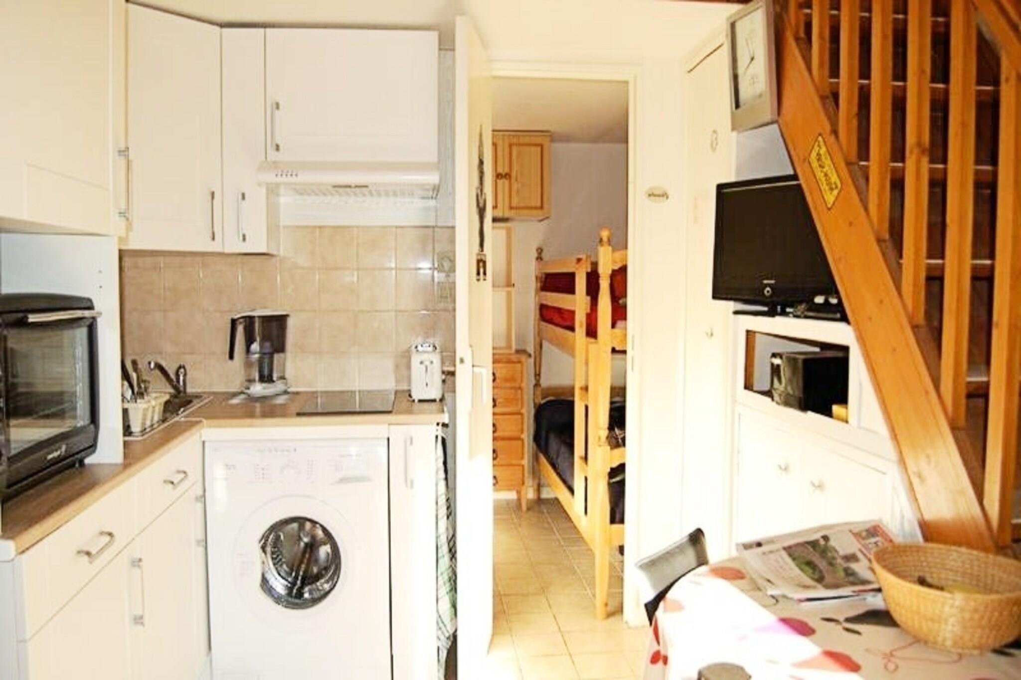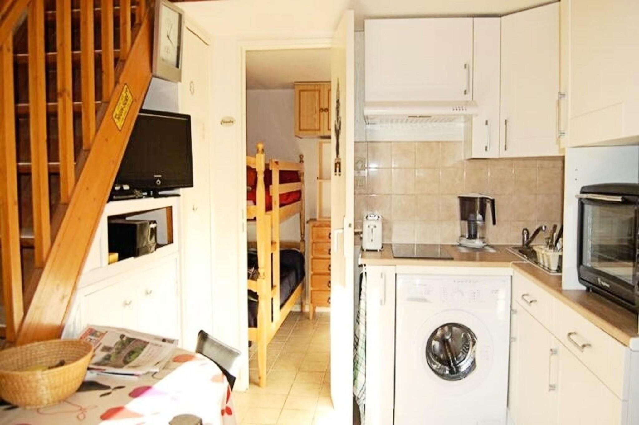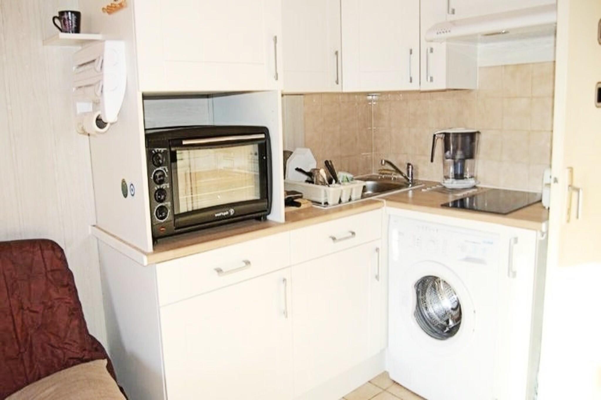 Denne hyggelige studiehytte mezzaninhytte tilbyder et behageligt ophold for op til 5 gæster. Den har en kahyt med køjesenge og en mezzanin udstyret med en dobbeltseng og en enkeltseng, perfekt til familier eller små grupper. Ejendommen er ikke kæledyrsvenlig, hvilket sikrer et rent og allergifrit miljø. Med et areal på 26 m² og en 10 m² terrasse giver denne charmerende hytte et afslappende sted at slappe af efter en dag med udforskning. Beliggende i havsøsektoren tilbyder kabinen en fredelig og fredfyldt atmosfære. Hytten er ideelt beliggende med stranden kun 800 meter væk og bymidten 700 meter fra dit dørtrin. Gæsterne kan nyde nærliggende attraktioner, såsom den smukke marinesø, kun 50 meter væk, og som tilbyder muligheder for fredelige gåture eller vandaktiviteter. Butikker er bekvemt placeret 350 meter fra ejendommen, hvilket giver nem adgang til lokale markeder og caféer, perfekt for dem, der ønsker at prøve det lokale køkken eller hente det væsentlige under deres ophold. Det veludstyrede køkken omfatter en elektrisk kogeplade, miniovn, mikroovn, køleskab med fryser og vaskemaskine for ekstra bekvemmelighed. Der er tv og dvd til underholdning, hvilket sikrer et afslappende ophold. Med en privat parkeringsplads med en barriere tilbyder kabinen sikker parkering under dit besøg, hvilket gør den til den perfekte base for en mindeværdig ferie.