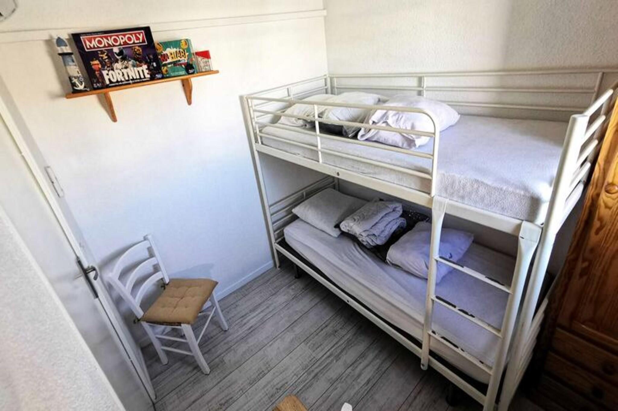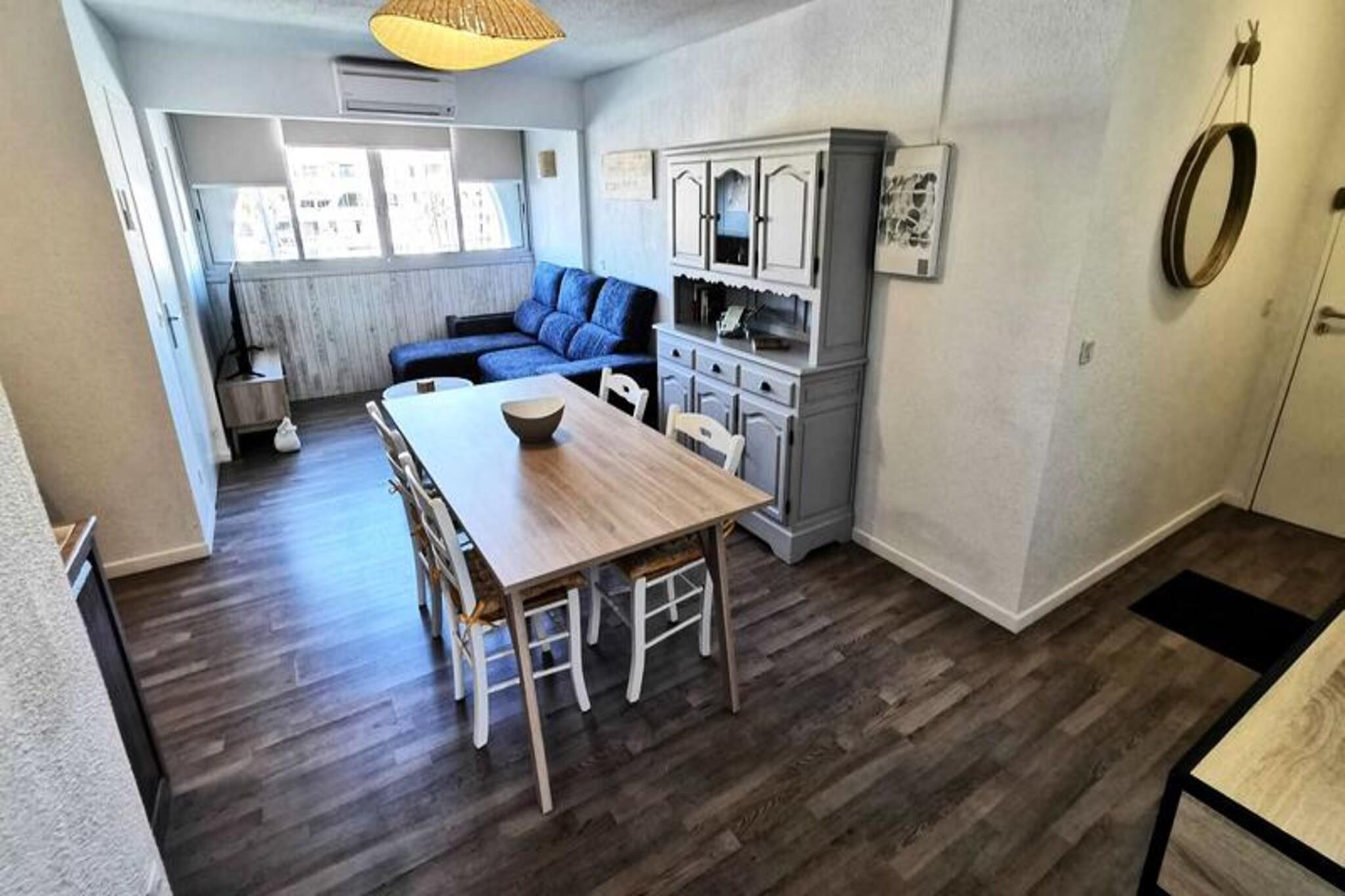 Denne fire-værelses lejlighed, ideel til op til seks personer, tilbyder et behageligt ophold med aircondition på hvert værelse. Den har et soveværelse med en dobbeltseng, et andet soveværelse med to enkeltsenge og et tredje soveværelse med køjesenge til børn. Ejendommen er ikke kæledyrsvenlig, hvilket sikrer et rent og roligt miljø for alle gæster. Med moderne faciliteter såsom tv, induktionskomfur, ovn, mikroovn, køleskab med fryser, vaskemaskine og tørretumbler er denne lejlighed fuldt udstyret til et problemfrit ophold. Beliggende kun 800 meter fra stranden og 400 meter fra centrum, er denne lejlighed perfekt placeret til at nyde både afslapning ved havet og lokale attraktioner. I nærheden finder du forskellige caféer, restauranter og butikker, der tilbyder en bred vifte af spise- og shoppingmuligheder. Havneudsigten tilføjer en fredfyldt atmosfære til dit ophold, hvilket gør det til det perfekte sted at slappe af efter en dag med udforskning. Lejlighedens rummelige 63 m² store areal omfatter alle hjemmets bekvemmeligheder med et fuldt udstyret køkken til tilberedning af dine måltider og et praktisk vaskerum med en tørretumbler. Ejendommen er beliggende på anden sal uden elevator og inkluderer en privat lukket parkeringsplads med en barriere for din bekvemmelighed. Med vestvendt eksponering kan du nyde den smukke solnedgang fra lejlighedens vinduer.