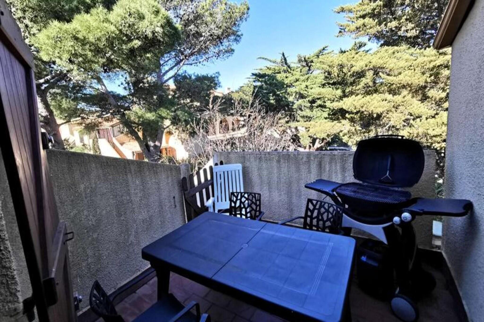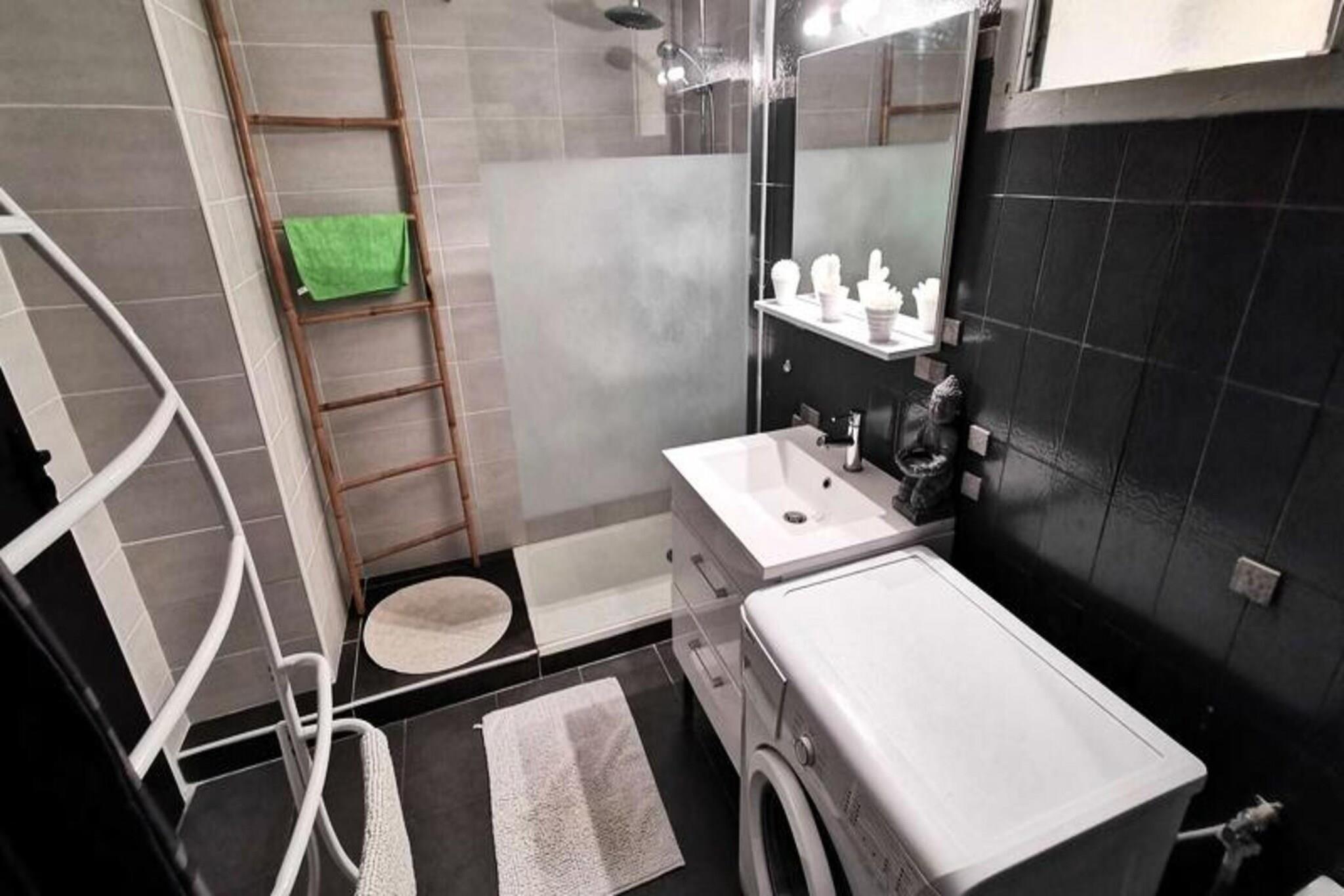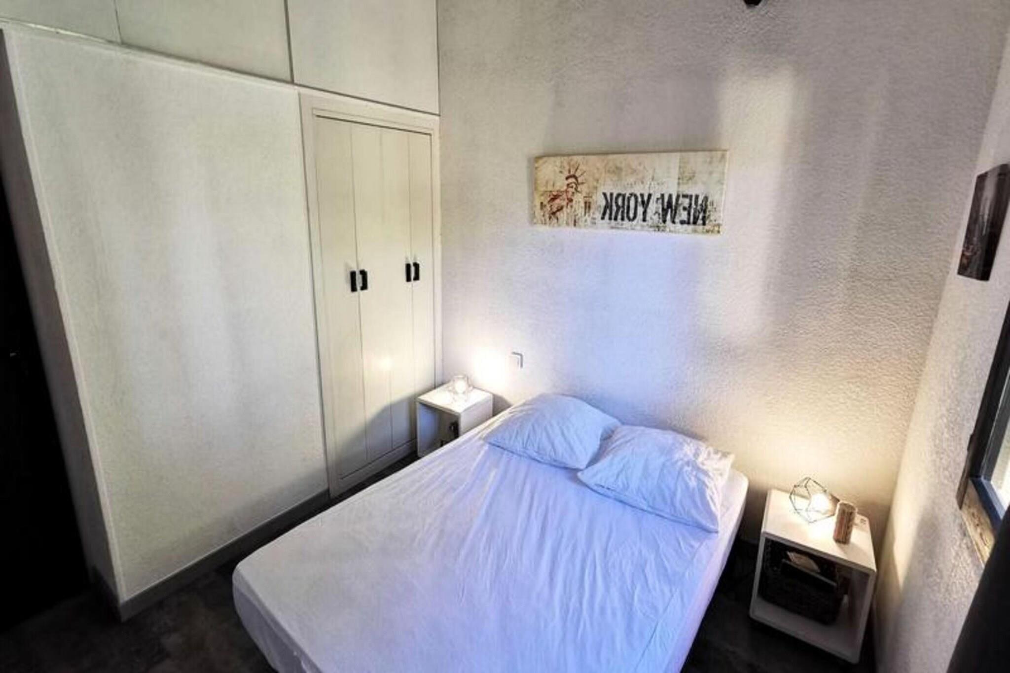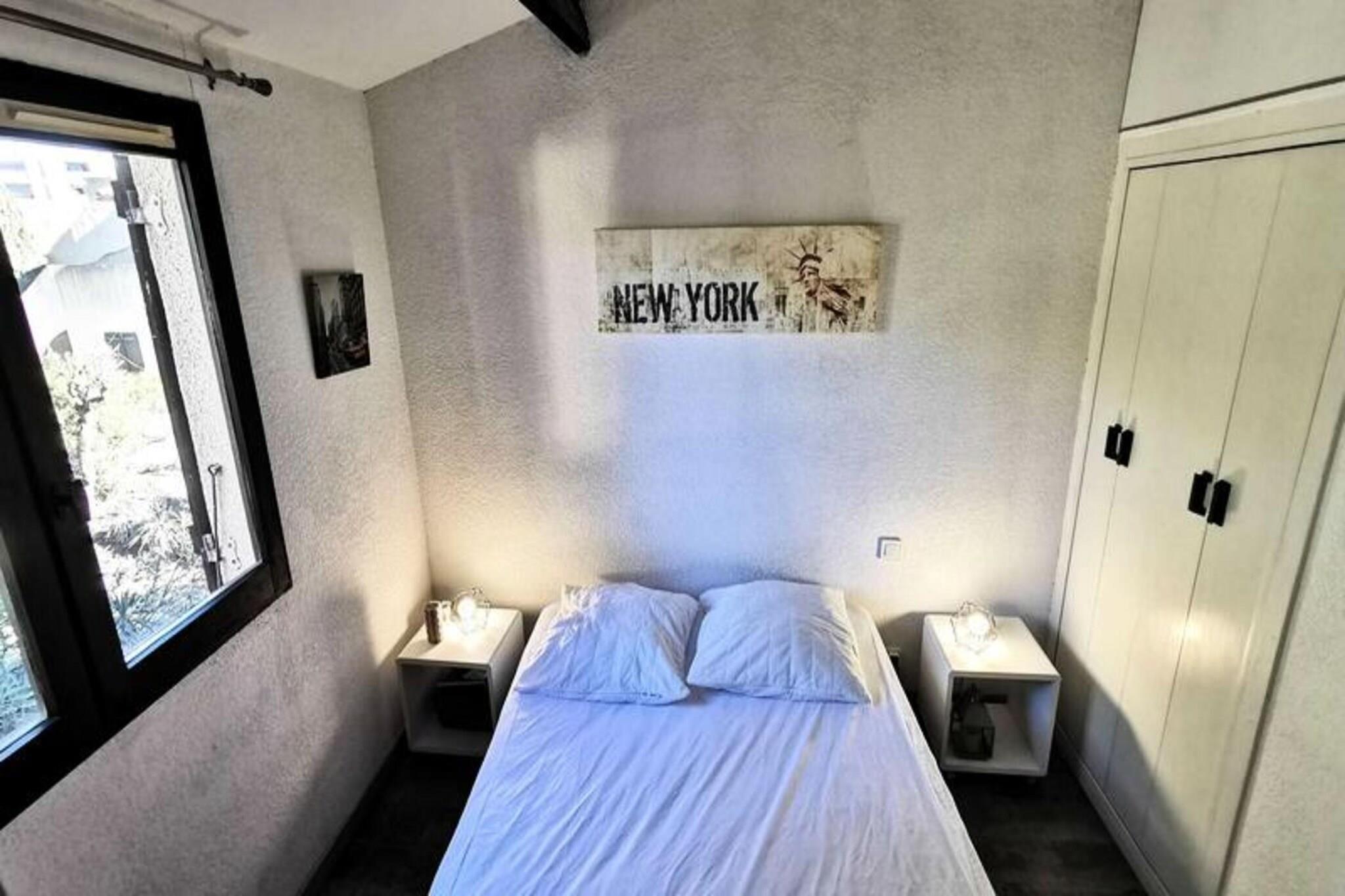 Denne toværelses mezzaninlejlighed er ideel til op til 6 personer og tilbyder et komfortabelt tilflugtssted med moderne bekvemmeligheder. Lejligheden har et soveværelse med en dobbeltseng, en mezzanin med en to-personers sovesofa og et loftsværelse med en dobbeltseng. Det er en kæledyrsfri ejendom, der sikrer et rent og roligt miljø. Med en terrasse på 9 m² og eksponering mod nordvest kan gæsterne nyde udendørs afslapning i fredelige omgivelser. Lejligheden er bekvemt placeret mellem stranden og centrum, kun 200 meter fra stranden for nem adgang til solbadning og vandsport. Centret, kun 300 meter væk, byder på et udvalg af caféer, restauranter og butikker, så gæsterne kan opleve lokale smagsoplevelser og kultur. Nærliggende markeder giver en fremragende mulighed for at udforske regionale produkter og varer, hvilket gør dette til en ideel base for at opdage området. Lejligheden er fuldt udstyret med køkken med elektrisk kogeplade, kombineret ovn, køleskab med fryser og vaskemaskine. Gæsterne kan også nyde underholdning med et tv, PlayStation 2 og en dvd-afspiller. Ejendommen inkluderer en gasgrill til udendørs spisning og en privat parkeringsplads med en barriere for ekstra bekvemmelighed. Disse faciliteter sikrer et behageligt og behageligt ophold for alle gæster.