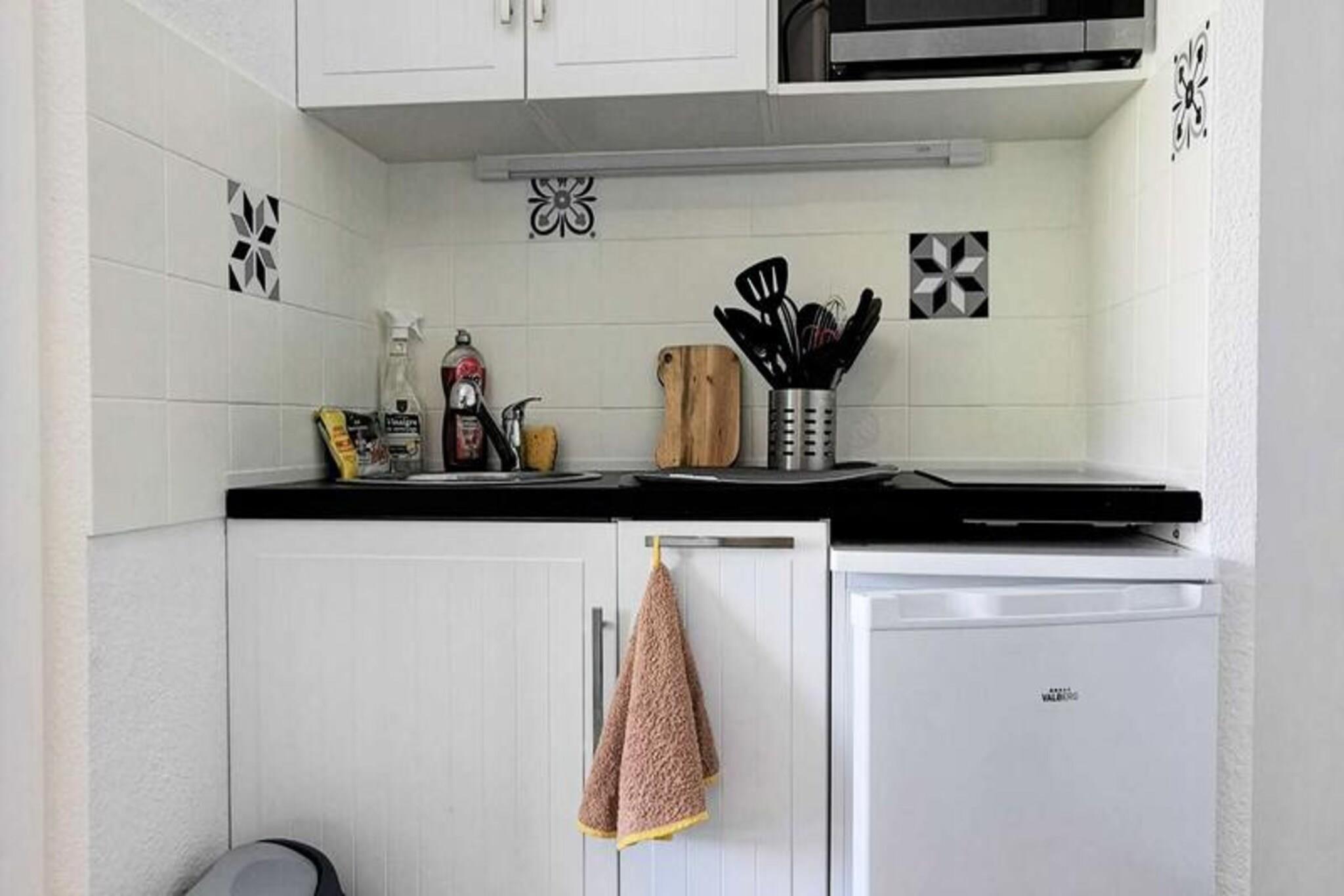 Denne charmerende to-værelses lejlighed kan rumme op til 3 personer, og byder på en hyggelig stue med en 120 cm enkelt sovesofa og et komfortabelt soveværelse med en dobbeltseng. Ejendommen byder på havudsigt og en 6 m² stor terrasse, hvor gæsterne kan slappe af og nyde omgivelserne. Lejligheden er ikke kæledyrsvenlig, hvilket sikrer et fredeligt miljø for alle gæster. Det er udstyret med væsentlige faciliteter såsom opvarmning, et tv og en række køkkenmaskiner, herunder en elektrisk kogeplade, miniovn, mikroovn og køleskab med fryser. Beliggende kun 100 meter fra stranden, er denne lejlighed ideel for dem, der nyder solbadning, svømning og strandaktiviteter. Byens centrum ligger 1 km derfra og byder på en række caféer, restauranter og lokale markeder, hvor du kan udforske lokale produkter og nyde regionale retter. Den pulserende atmosfære og den nemme adgang til forskellige attraktioner gør dette til et ideelt sted for en ferie ved havet. Indvendigt byder lejligheden på et funktionelt køkken udstyret med alle de nødvendige værktøjer til at tilberede måltider, herunder en elektrisk planxa til grillning. Baderummet giver komfort, og lejlighedens private parkeringsplads sikrer bekvemmelighed. Beliggende på første sal uden elevator, tilbyder lejligheden et hyggeligt tilflugtssted for dem, der ønsker at nyde skønheden i havet og det omkringliggende område.