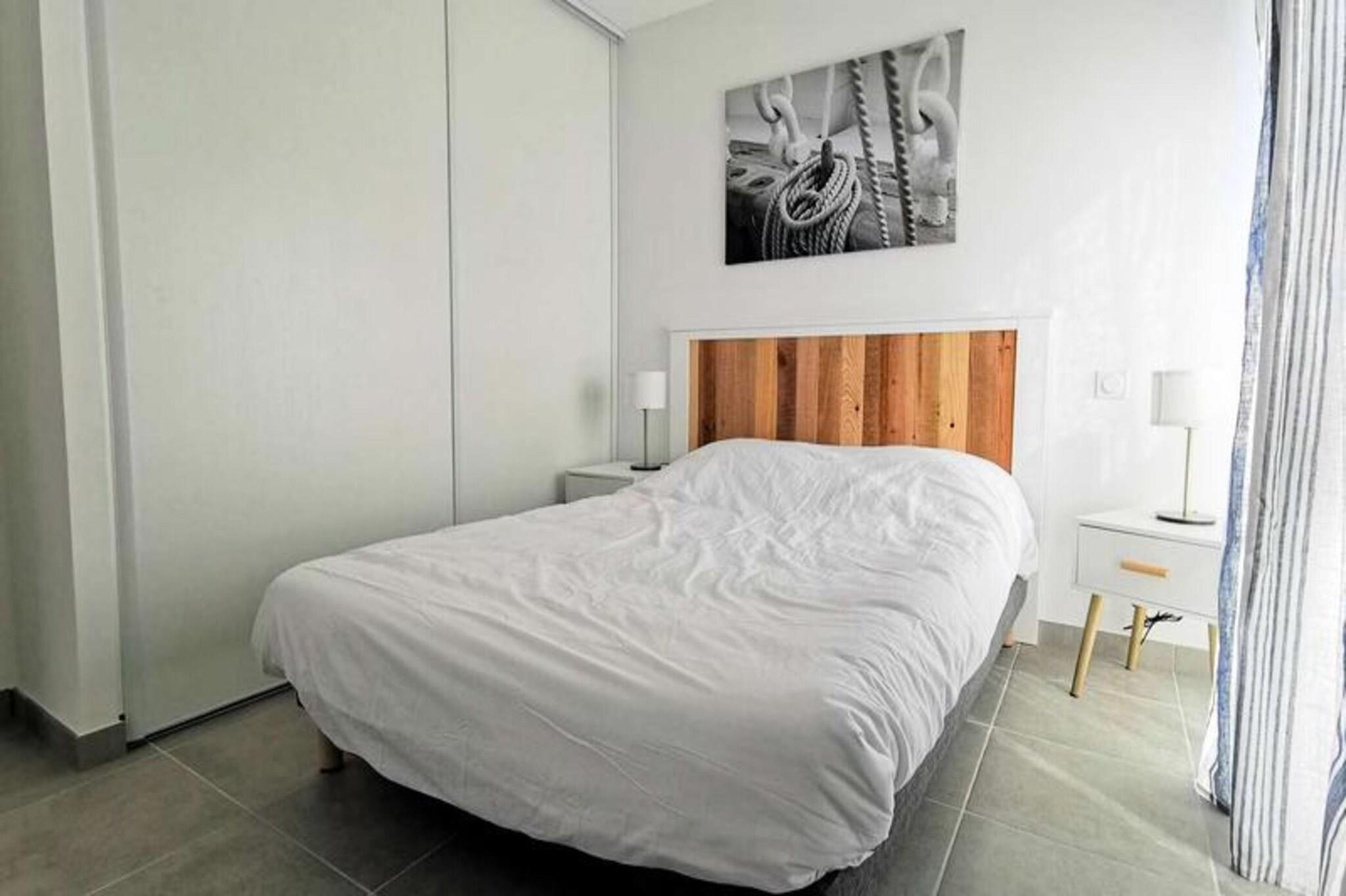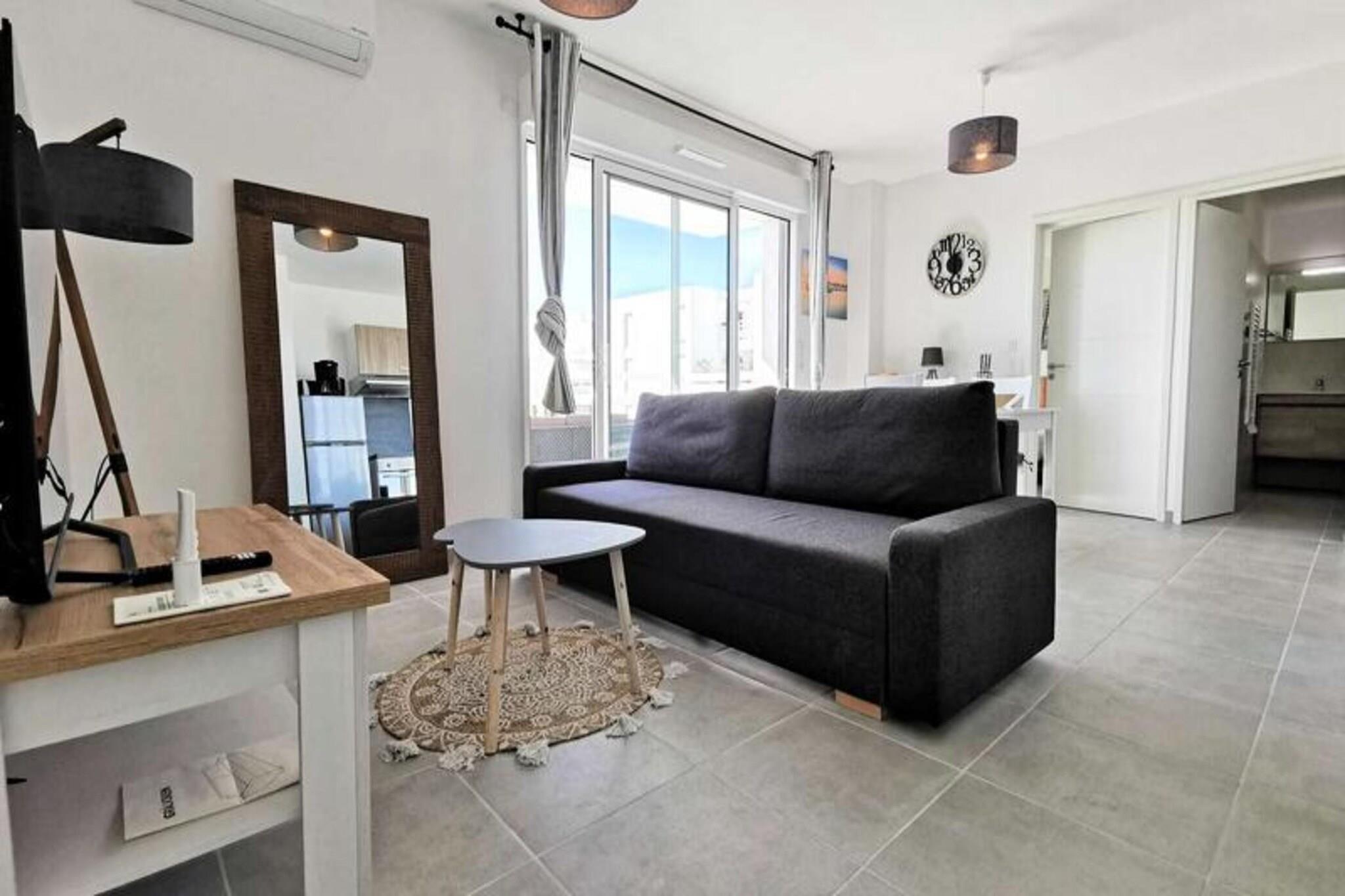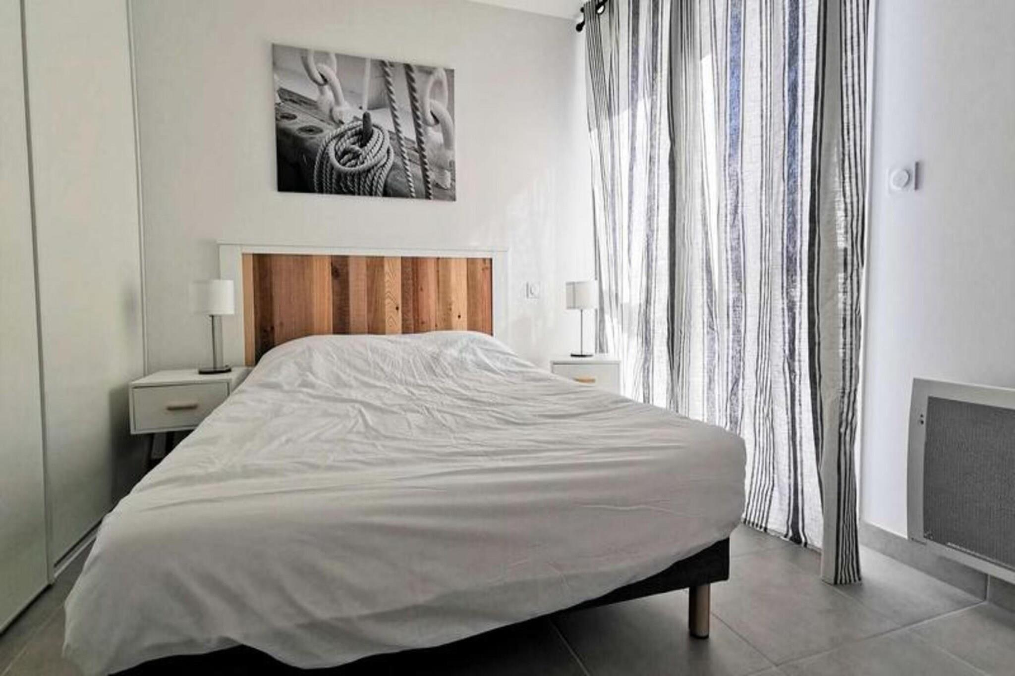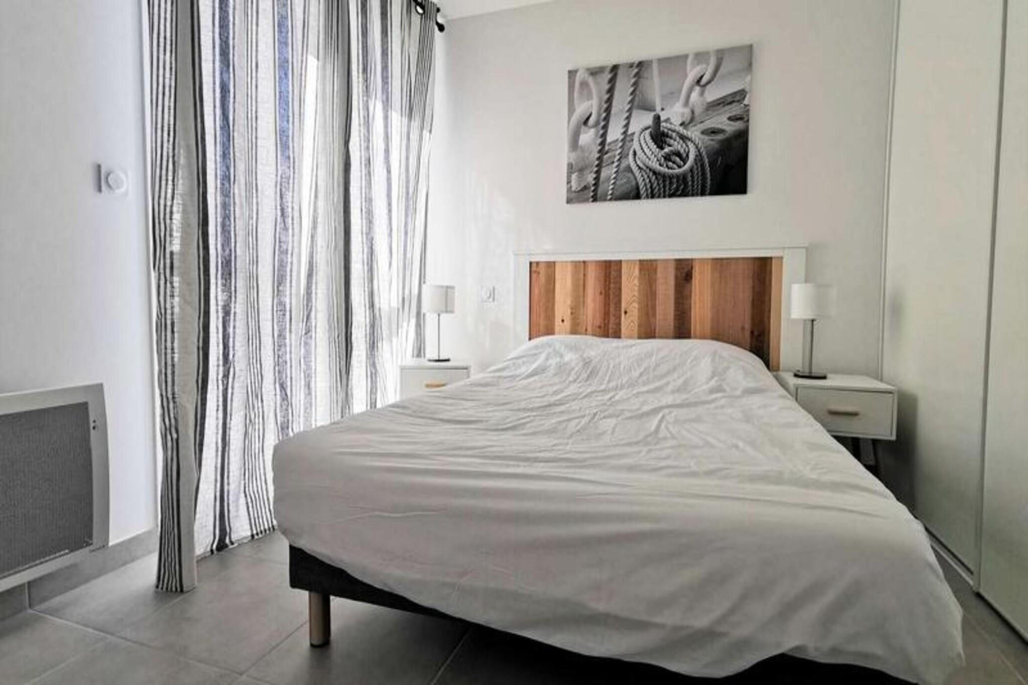 Denne fantastiske 2-værelses lejlighed er ideel til op til 4 personer, og byder på en komfortabel stue med en sovesofa til 2 personer og et hyggeligt soveværelse med en dobbeltseng. Lejligheden er fuldt udstyret med moderne bekvemmeligheder, herunder to tv'er, en keramisk kogeplade, ovn, mikroovn, køleskab med fryser, opvaskemaskine og vaskemaskine. Lejligheden byder på et rummeligt opholdsareal på 41 m² og en privat terrasse på 13 m², perfekt til at nyde udendørs. Lejligheden ligger på tredje sal med elevator og har aircondition og kæledyrsvenlig til små dyr på op til 10 kg. Lejligheden er bekvemt beliggende kun 600 meter fra stranden, hvilket gør det nemt at nyde Middelhavet. Den pulserende bymidte ligger kun 400 meter væk, hvor gæsterne kan udforske en række caféer, butikker og restauranter. Uanset om du ønsker at slappe af ved stranden, nyde en afslappet spadseretur gennem byen eller opdage lokale markeder, er alt hvad du behøver inden for gåafstand. Inde i lejligheden finder du et fuldt udstyret køkken med keramisk kogeplade, ovn, mikroovn og køleskab med fryser, hvilket giver mulighed for nem tilberedning af måltider. Det moderne badeværelse har alle nødvendige faciliteter, mens vaskemaskinen tilføjer ekstra bekvemmelighed. Med privat parkering tilbyder denne lejlighed den perfekte blanding af komfort, praktisk og en førsteklasses beliggenhed for et uforglemmeligt ophold.