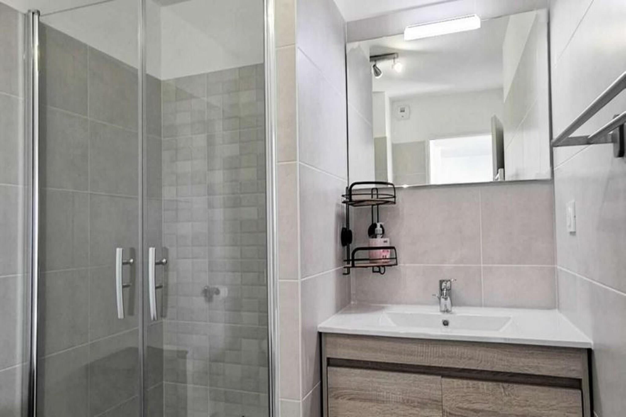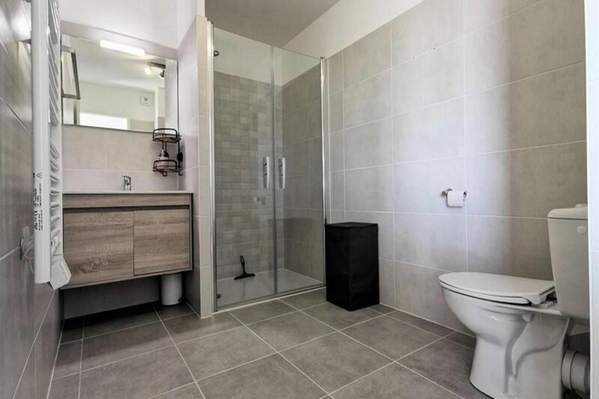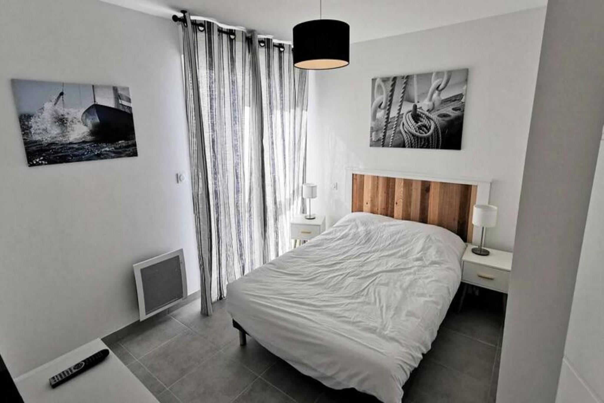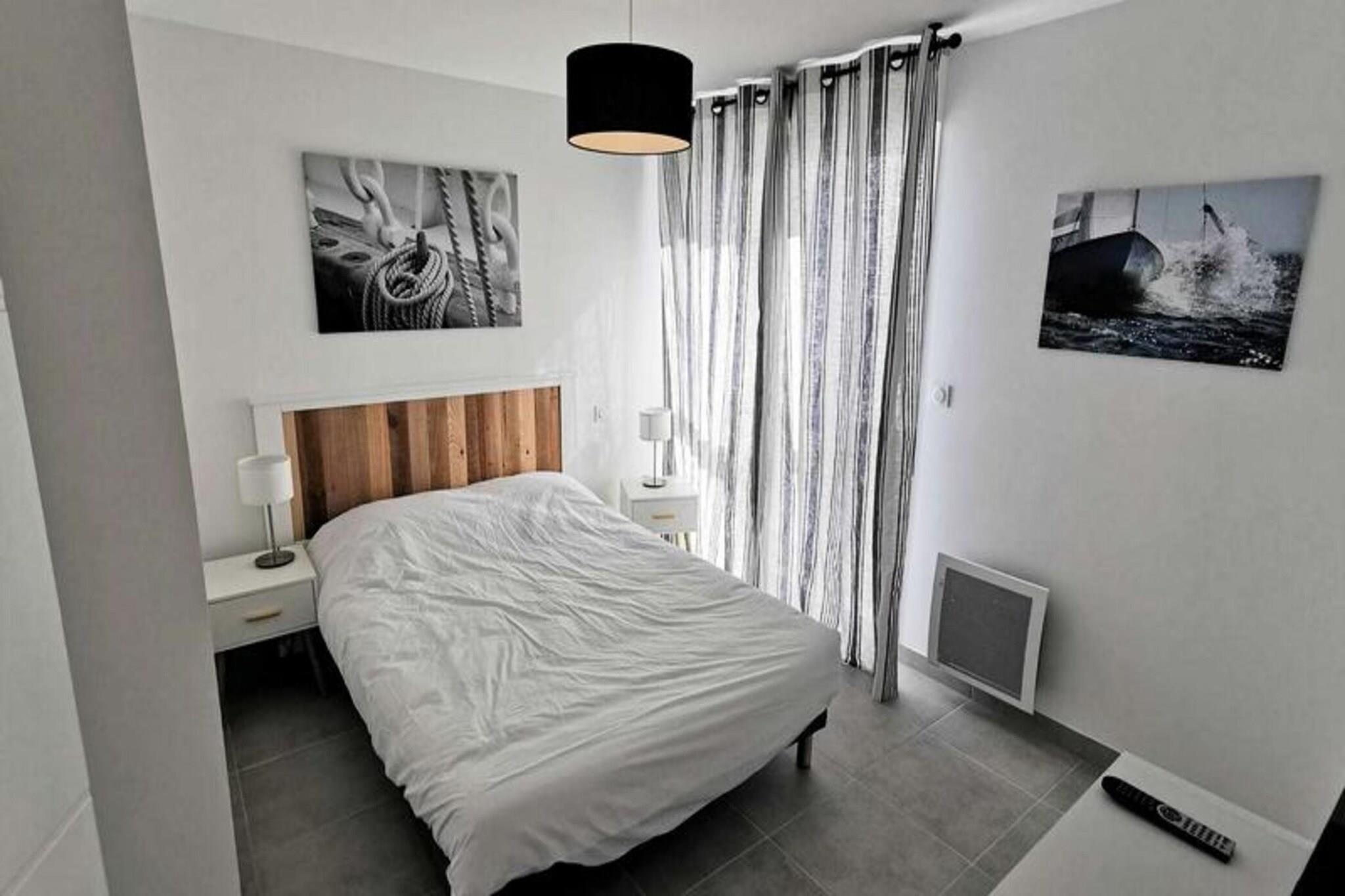 Denne fantastiske 2-værelses lejlighed er ideel til op til 4 personer, og byder på en komfortabel stue med en sovesofa til 2 personer og et hyggeligt soveværelse med en dobbeltseng. Lejligheden er fuldt udstyret med moderne bekvemmeligheder, herunder to tv'er, en keramisk kogeplade, ovn, mikroovn, køleskab med fryser, opvaskemaskine og vaskemaskine. Lejligheden byder på et rummeligt opholdsareal på 41 m² og en privat terrasse på 13 m², perfekt til at nyde udendørs. Lejligheden ligger på tredje sal med elevator og har aircondition og kæledyrsvenlig til små dyr på op til 10 kg. Lejligheden er bekvemt beliggende kun 600 meter fra stranden, hvilket gør det nemt at nyde Middelhavet. Den pulserende bymidte ligger kun 400 meter væk, hvor gæsterne kan udforske en række caféer, butikker og restauranter. Uanset om du ønsker at slappe af ved stranden, nyde en afslappet spadseretur gennem byen eller opdage lokale markeder, er alt hvad du behøver inden for gåafstand. Inde i lejligheden finder du et fuldt udstyret køkken med keramisk kogeplade, ovn, mikroovn og køleskab med fryser, hvilket giver mulighed for nem tilberedning af måltider. Det moderne badeværelse har alle nødvendige faciliteter, mens vaskemaskinen tilføjer ekstra bekvemmelighed. Med privat parkering tilbyder denne lejlighed den perfekte blanding af komfort, praktisk og en førsteklasses beliggenhed for et uforglemmeligt ophold.