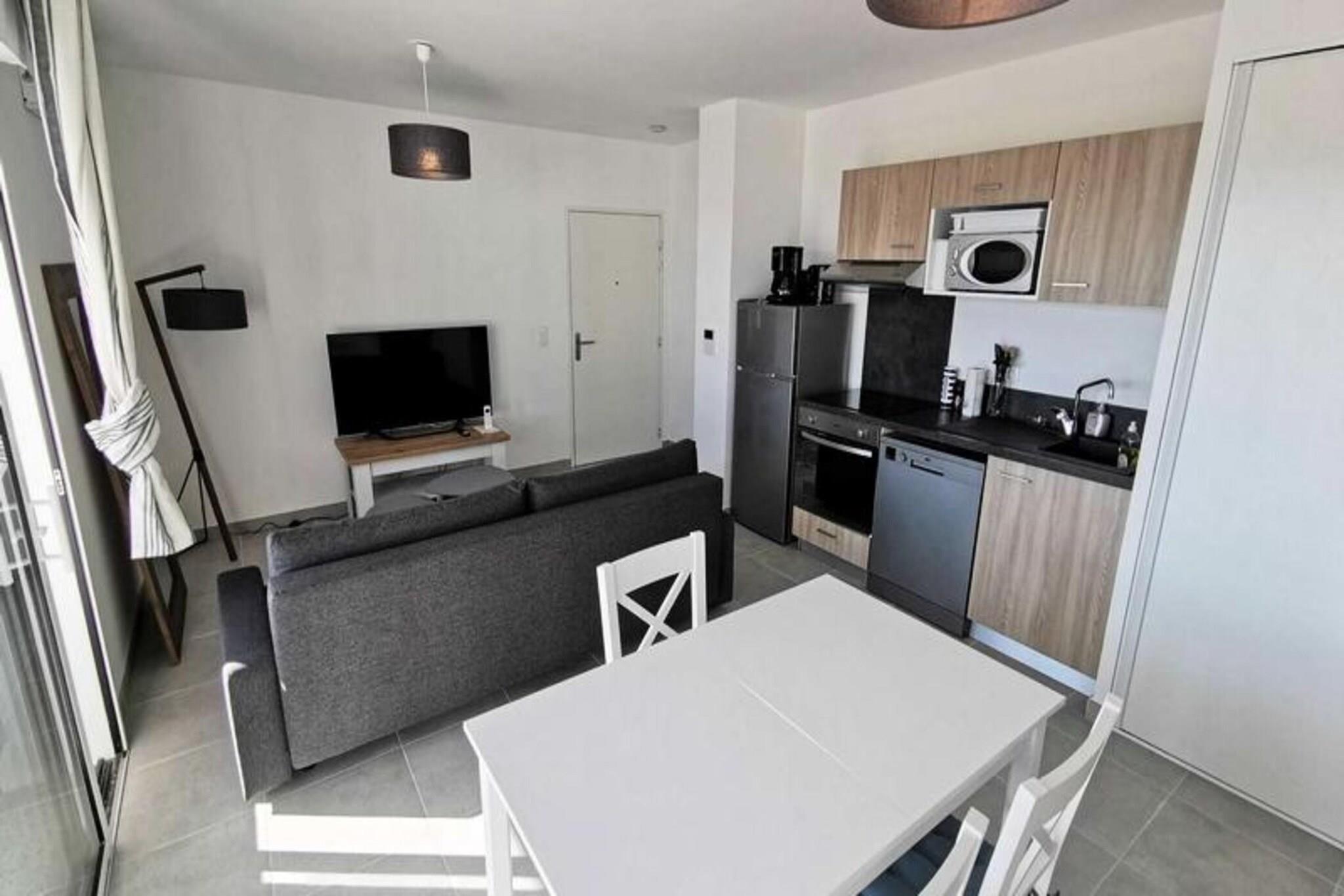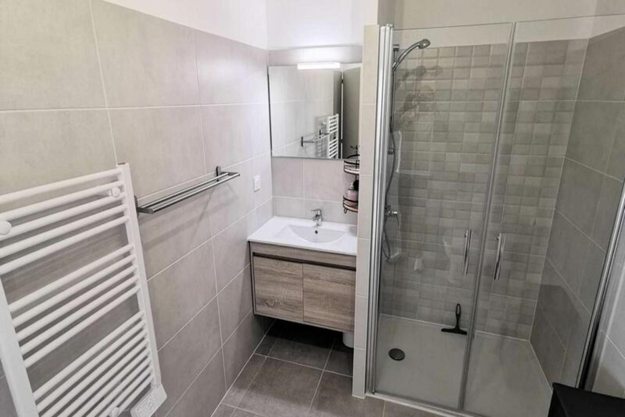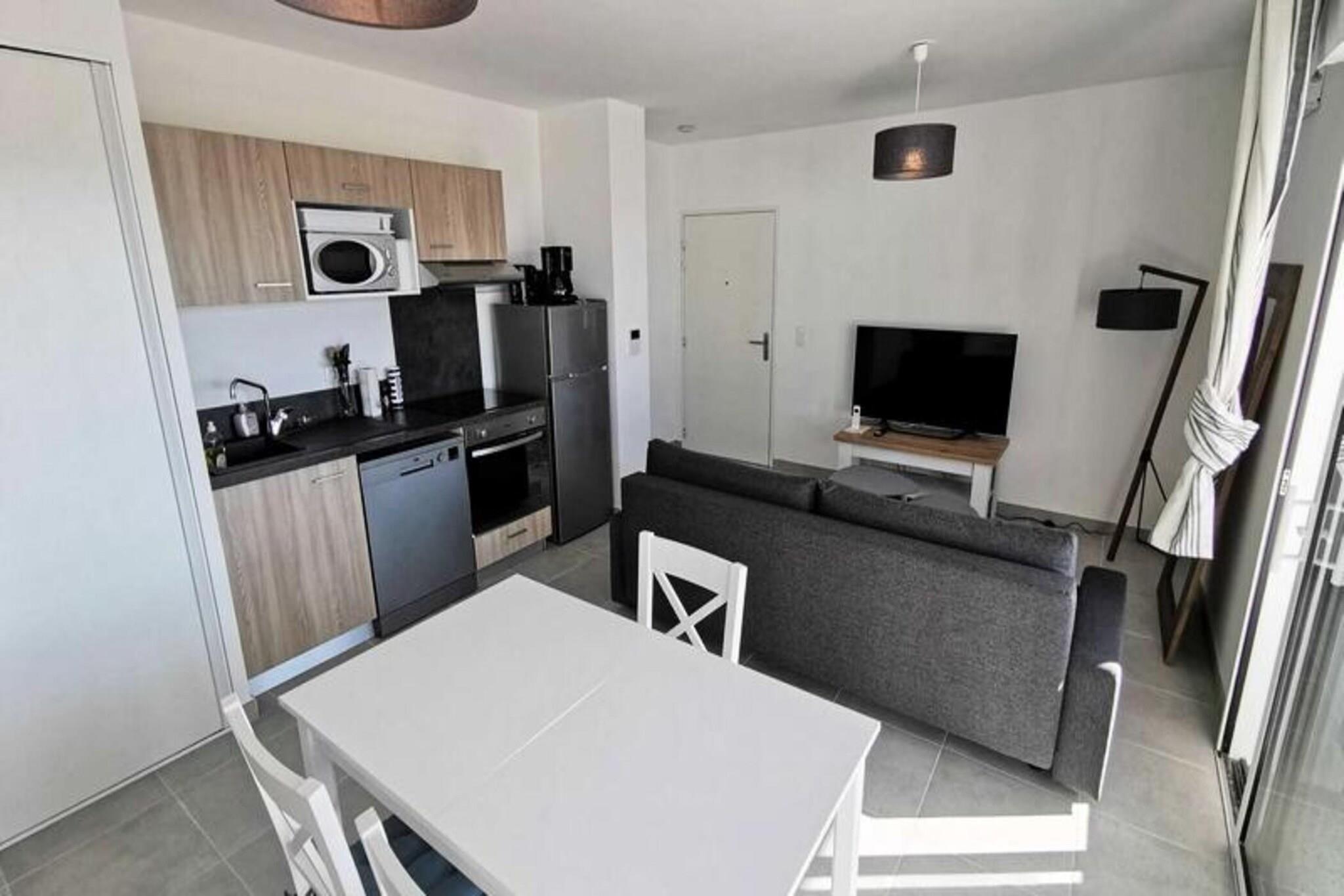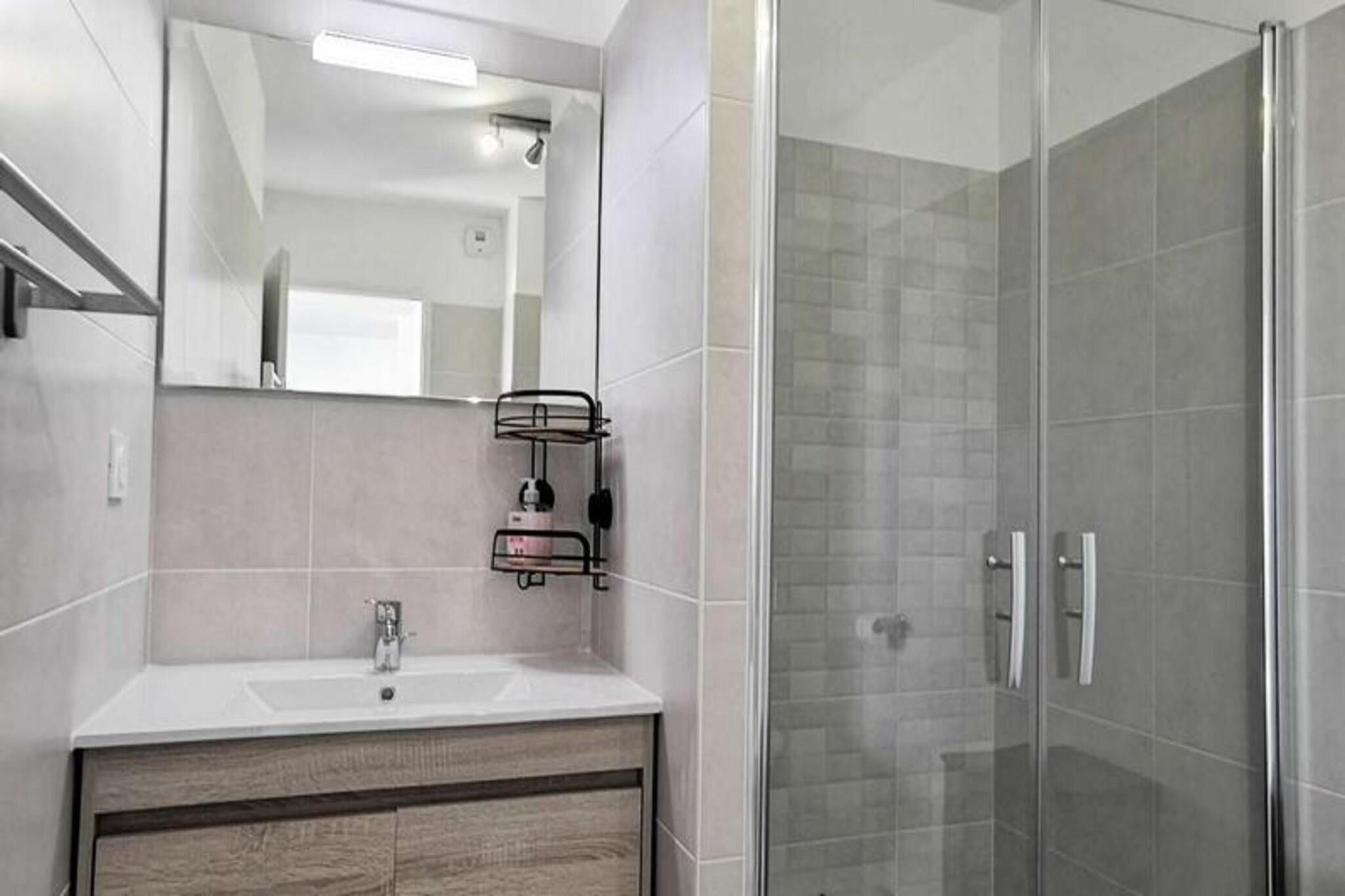 Denne fantastiske 2-værelses lejlighed er ideel til op til 4 personer, og byder på en komfortabel stue med en sovesofa til 2 personer og et hyggeligt soveværelse med en dobbeltseng. Lejligheden er fuldt udstyret med moderne bekvemmeligheder, herunder to tv'er, en keramisk kogeplade, ovn, mikroovn, køleskab med fryser, opvaskemaskine og vaskemaskine. Lejligheden byder på et rummeligt opholdsareal på 41 m² og en privat terrasse på 13 m², perfekt til at nyde udendørs. Lejligheden ligger på tredje sal med elevator og har aircondition og kæledyrsvenlig til små dyr på op til 10 kg. Lejligheden er bekvemt beliggende kun 600 meter fra stranden, hvilket gør det nemt at nyde Middelhavet. Den pulserende bymidte ligger kun 400 meter væk, hvor gæsterne kan udforske en række caféer, butikker og restauranter. Uanset om du ønsker at slappe af ved stranden, nyde en afslappet spadseretur gennem byen eller opdage lokale markeder, er alt hvad du behøver inden for gåafstand. Inde i lejligheden finder du et fuldt udstyret køkken med keramisk kogeplade, ovn, mikroovn og køleskab med fryser, hvilket giver mulighed for nem tilberedning af måltider. Det moderne badeværelse har alle nødvendige faciliteter, mens vaskemaskinen tilføjer ekstra bekvemmelighed. Med privat parkering tilbyder denne lejlighed den perfekte blanding af komfort, praktisk og en førsteklasses beliggenhed for et uforglemmeligt ophold.