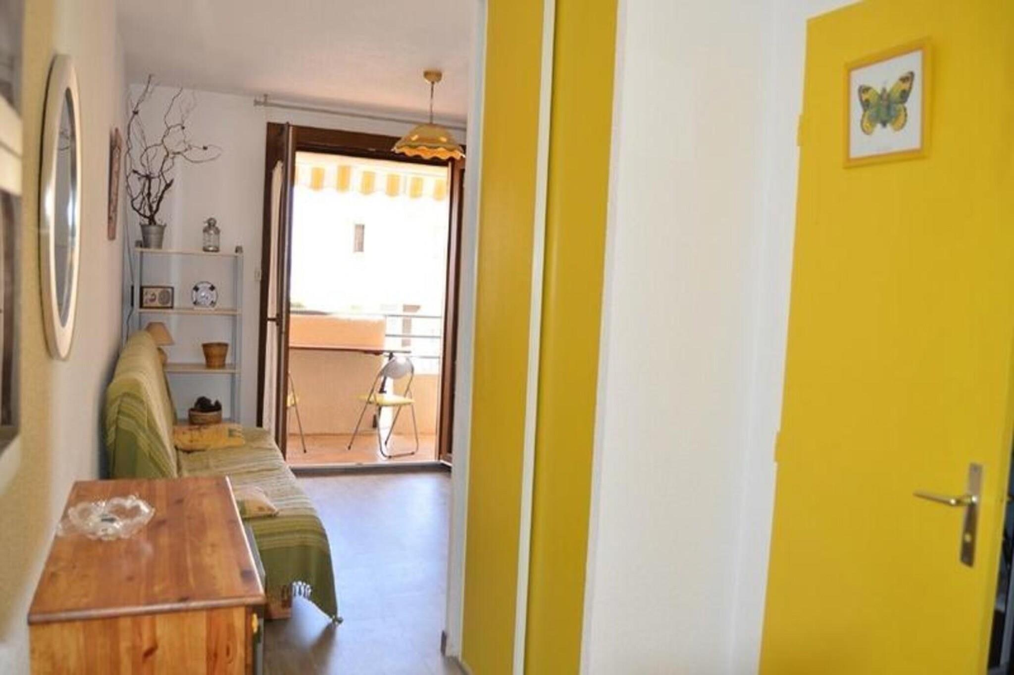 Denne lejlighed er designet til at rumme op til fire personer og tilbyder et soveområde med køjesenge, perfekt til to gæster, og en stue med en to-personers konvertible for ekstra komfort. Ejendommen er ikke kæledyrsvenlig, hvilket sikrer et roligt miljø for alle gæster. Beliggende på første sal med elevator giver lejligheden nem adgang til alle faciliteter. Beliggende kun 50 meter fra stranden, tilbyder lejligheden direkte adgang til vandet, hvilket gør den ideel for strandelskere. Centret ligger 900 meter væk, hvor besøgende kan nyde lokale caféer, butikker og en række forskellige markeder. Et supermarked er bekvemt placeret kun 350 meter fra ejendommen, hvilket giver nem adgang til det væsentlige under dit ophold. Lejligheden er udstyret med et kompakt køkken med elektriske kogeplader, en mikrobølgeovn, miniovn og et topkøleskab, hvilket giver mulighed for praktisk tilberedning af måltider. Med et areal på 22 m² og en 5 m² altan byder pladsen på komfort og et fantastisk sted at slappe af. Den sydøstlige eksponering sikrer masser af naturligt lys, mens den lukkede private parkeringsplads med en barriere tilføjer sikkerhed og bekvemmelighed.