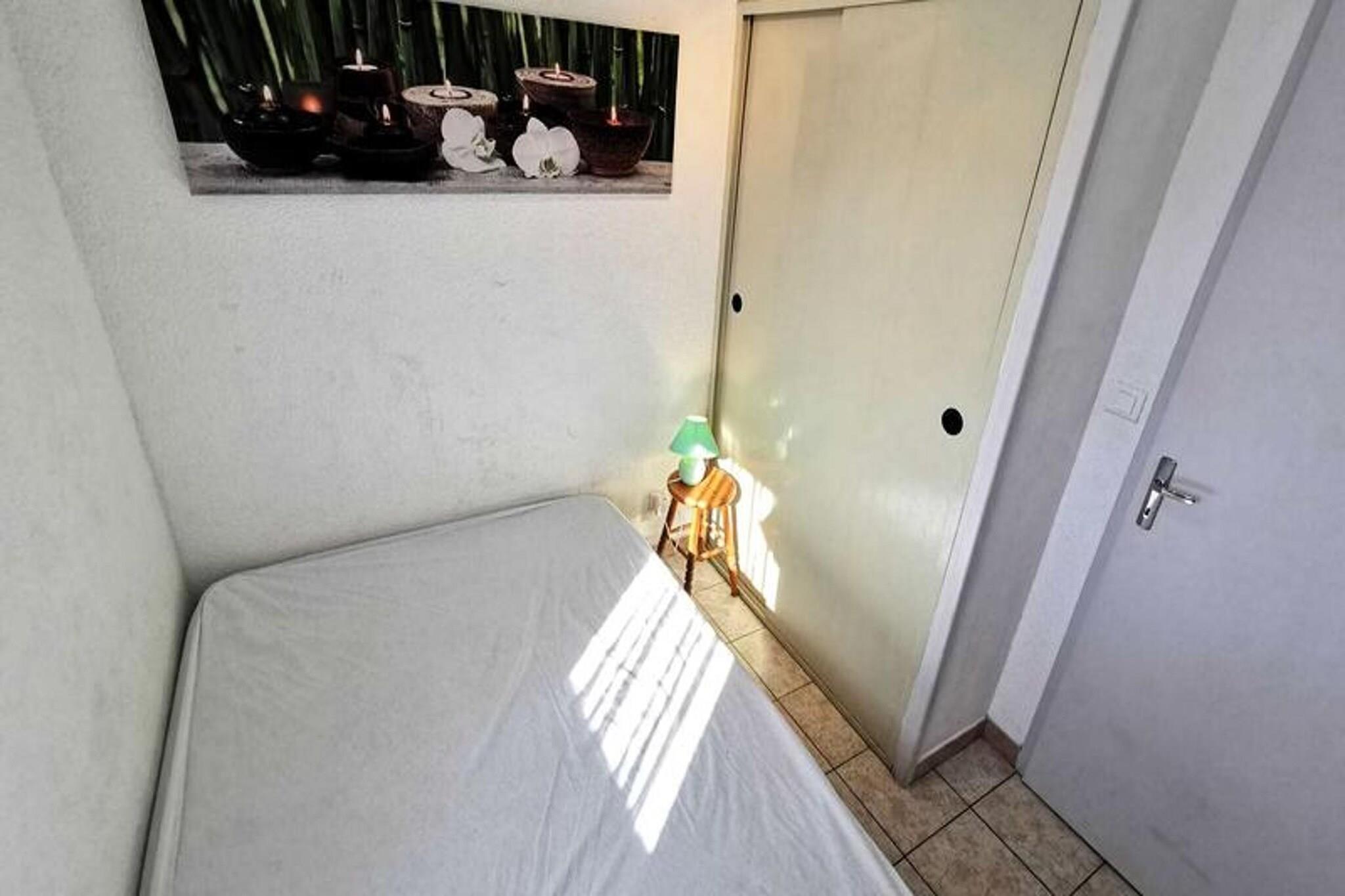 Denne tre-værelses lejlighed er et perfekt tilflugtssted for op til fire gæster, og tilbyder komfortabel indkvartering med en stue med en to-personers sovesofa. Det omfatter to hyggelige soveværelser, hver med en dobbeltseng, ideel til afslappende nætter. Beliggende på første sal (uden elevator), er lejligheden ikke kæledyrsvenlig, hvilket sikrer et fredeligt miljø. Lejligheden har et samlet areal på 30 m², med en 6 m² terrasse, der giver et behageligt uderum. Denne lejlighed ligger kun 150 meter fra stranden og 300 meter fra centrum og giver nem adgang til en række nærliggende attraktioner. Gæsterne kan nyde de lokale caféer, restauranter og markeder, alle inden for gåafstand. Uanset om du ønsker at slappe af ved stranden eller udforske det pulserende centrum, er alt bekvemt tæt på for en tilfredsstillende ferie. Lejligheden er udstyret med væsentlige faciliteter, herunder et køkken med elektriske kogeplader, en ovn, en mikrobølgeovn og et køleskab med fryser, perfekt til at tilberede måltider. Badeværelset byder på alt nødvendigt inventar for et behageligt ophold. Derudover tilbyder ejendommen lukket kollektiv parkering med en barriere for sikker og bekvem parkering under dit besøg.