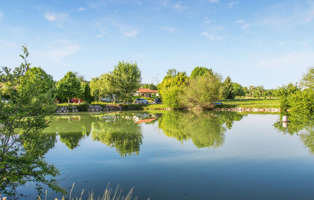 Dette praktiske feriehus ligger på en flot naturgrund ved bredden af ??en sø. Hvis I rejser med den udvidede familie eller jeres gode venner, er der en lignende bolig i nærheden. Huset er enkelt og funktionelt udstyret med alt, hvad I skal bruge. Der er gode fællesarealer, hvor I kan samles, og der er lagt op til hyggelige aktiviteter som at fiske efter karper og ørreder ved søen, tilberede dagens måltider på grillen eller se børnene lege på legepladsen. Der er også en sportsbane, hvor I kan have det sjovt sammen.