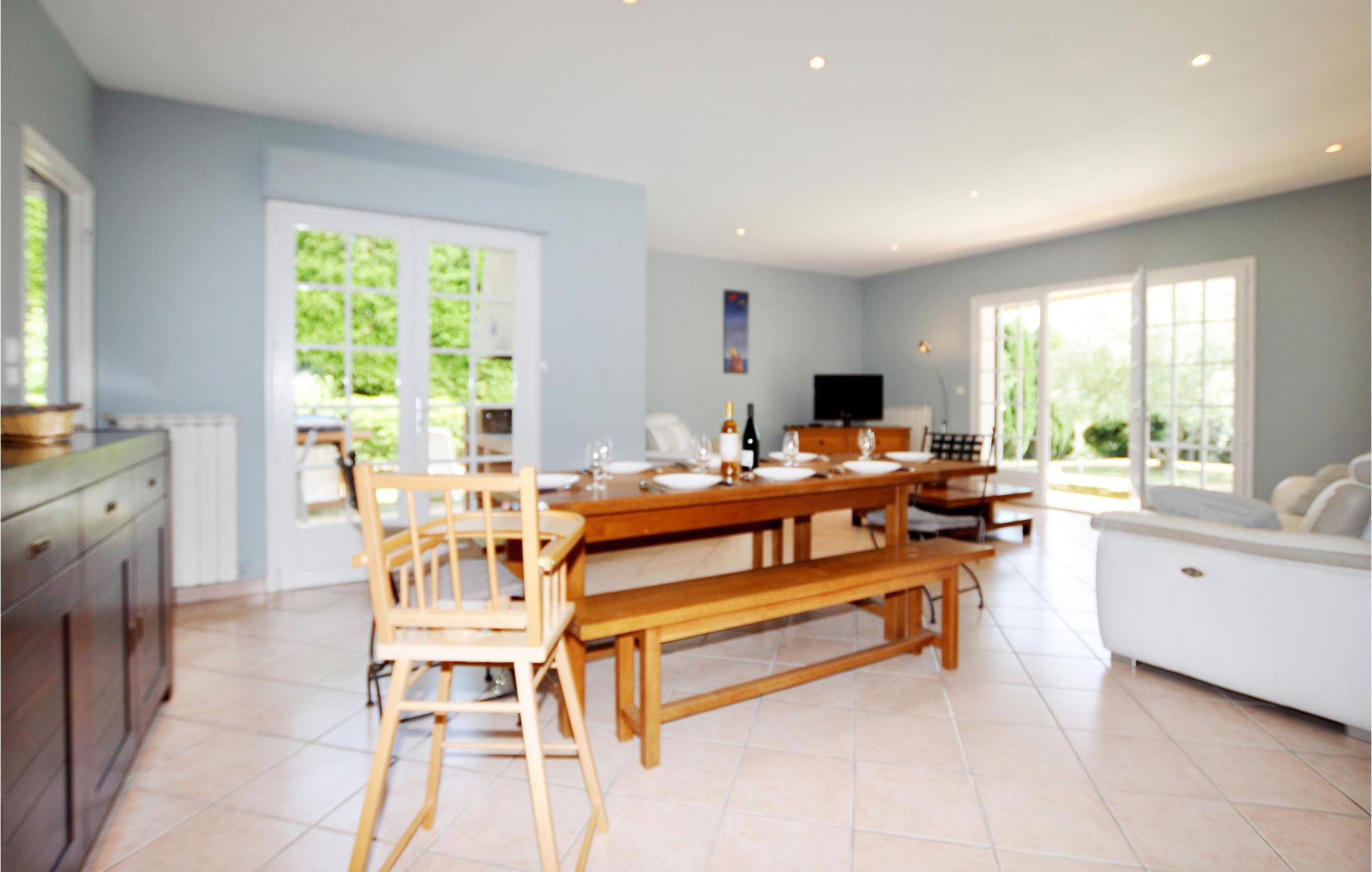Det moderne opholdsrum er rummeligt, meget lyst og komfortabelt. Find jer godt til rette med jeres familie og nyd en uforglemmelig ferie sammen. Udendørs kan I sætte jer i solen, investere jeres tid i en roman eller køle ned i poolen. Grillen på terrassen står klar, så I kan tilberede lækre sommerretter udendørs.