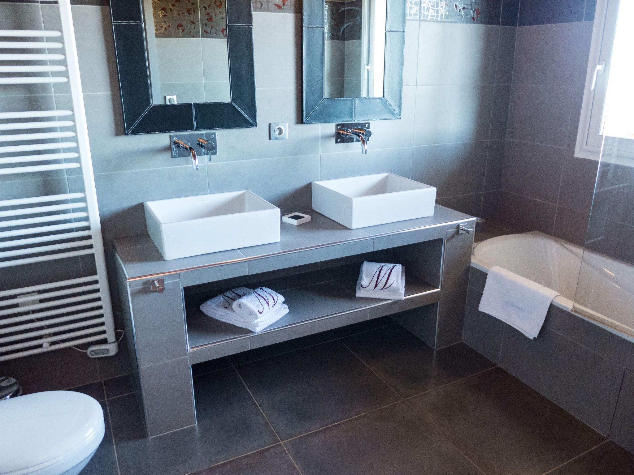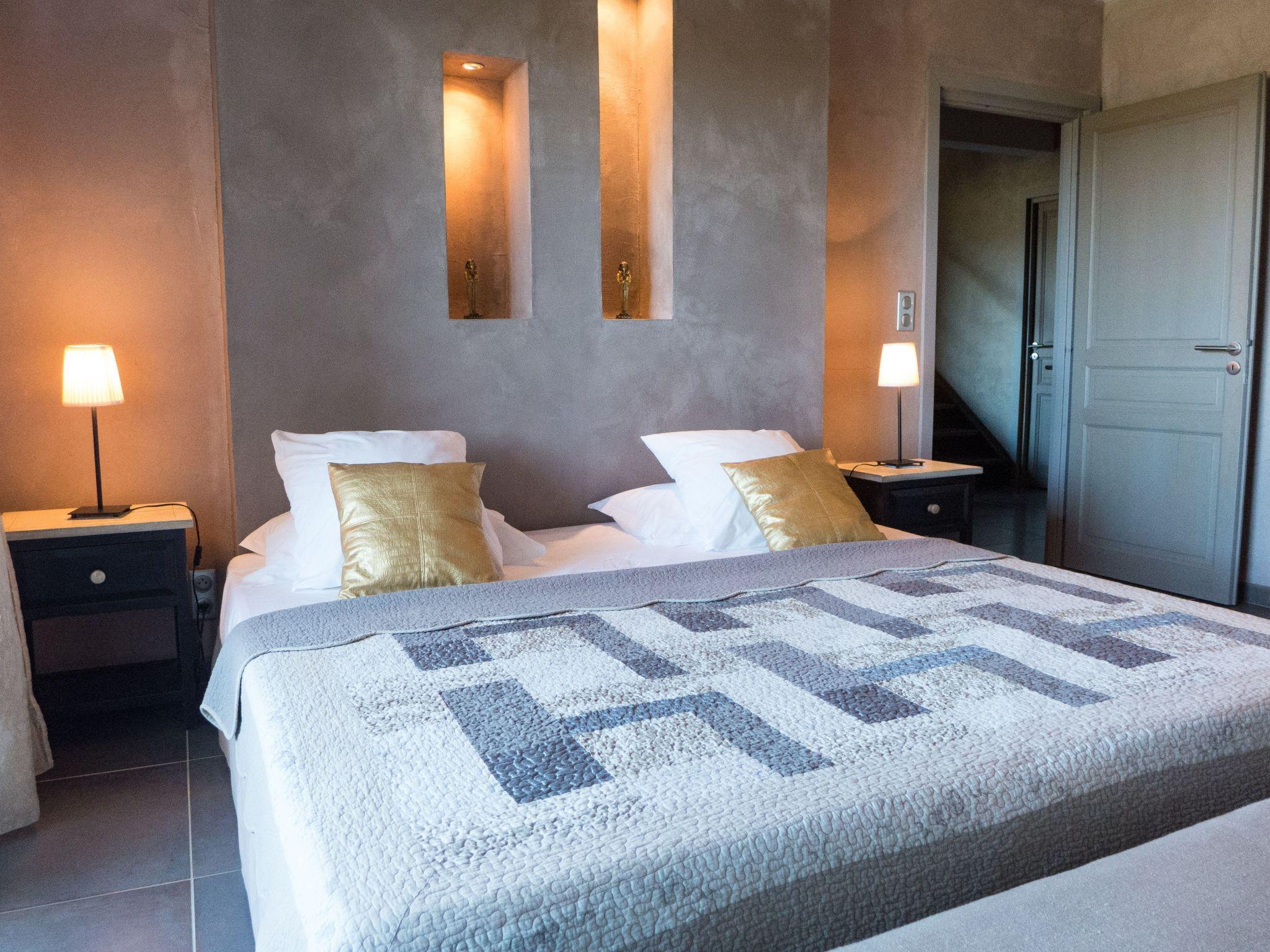 Description of mas 1. On the ground floor: large living room of nearly 100 m² with separate kitchen, dining room and lounge area. 1 independent toilet. Upstairs, 1 bedroom with king size bedroom and private bathroom with bath, double sinks and toilet, 1 twin bedroom with 2 beds 1m x 2m and private bathroom with walk-in shower, double sinks and WC. On the 2nd floor, 1 king size bedroom and private bathroom with bath, large basin, 1 twin bedroom with 2 beds 1m x 2m and private bathroom with shower and double sinks, separate toilet and large terrace of 150 m² with garden lounge with beautiful views.