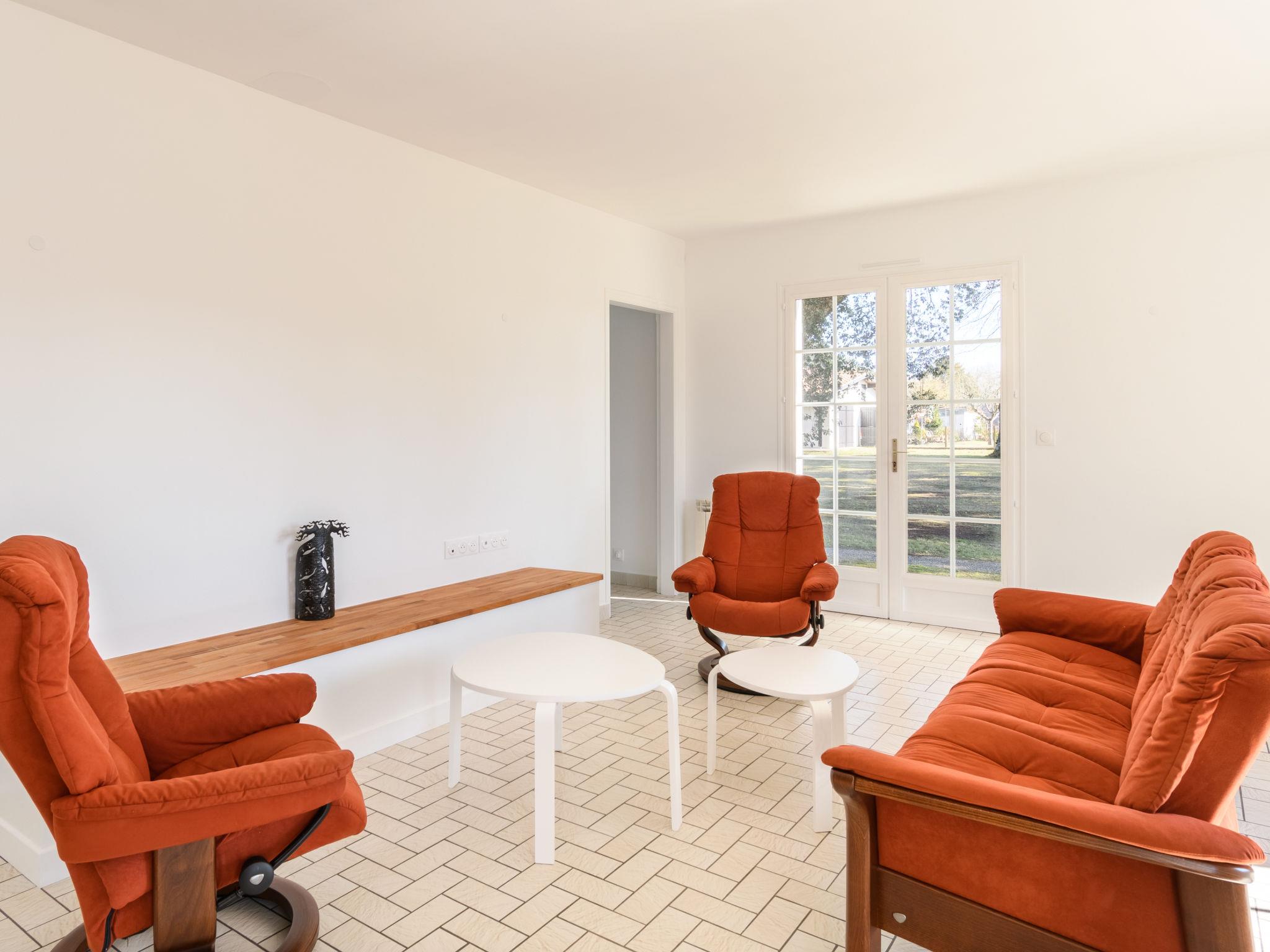 Large house "Les Chênes", 2 storeys, renovated in 2022, surrounded by trees. 700 m from the centre of Lit-et-Mixe, 4 km from the centre of Saint-Julien-en-Born, 20 km from the centre of Mimizan / Léon, in the residential district, excellent location: right in the centre but still quiet, 9.5 km from the sea, 9.5 km from the beach. Private: natural state property 2'500 m2 (fenced) with trees, parking (for 3 cars) at the house on the premises. Shop 700 m, supermarket 1.7 km, restaurant 700 m, bus stop "Moliets et Maa-Office de tourism" 25 km, sandy beach "Cap de L'Homy / Contis-Plage" 9.5 km. Golf course (18 hole) 30 km. Well-known lakes can easily be reached: Lac de Léon 16 km. Please note: suitable for families. Object suitable for 6 adults + 4 children. Part of the house is closed and unoccupied.