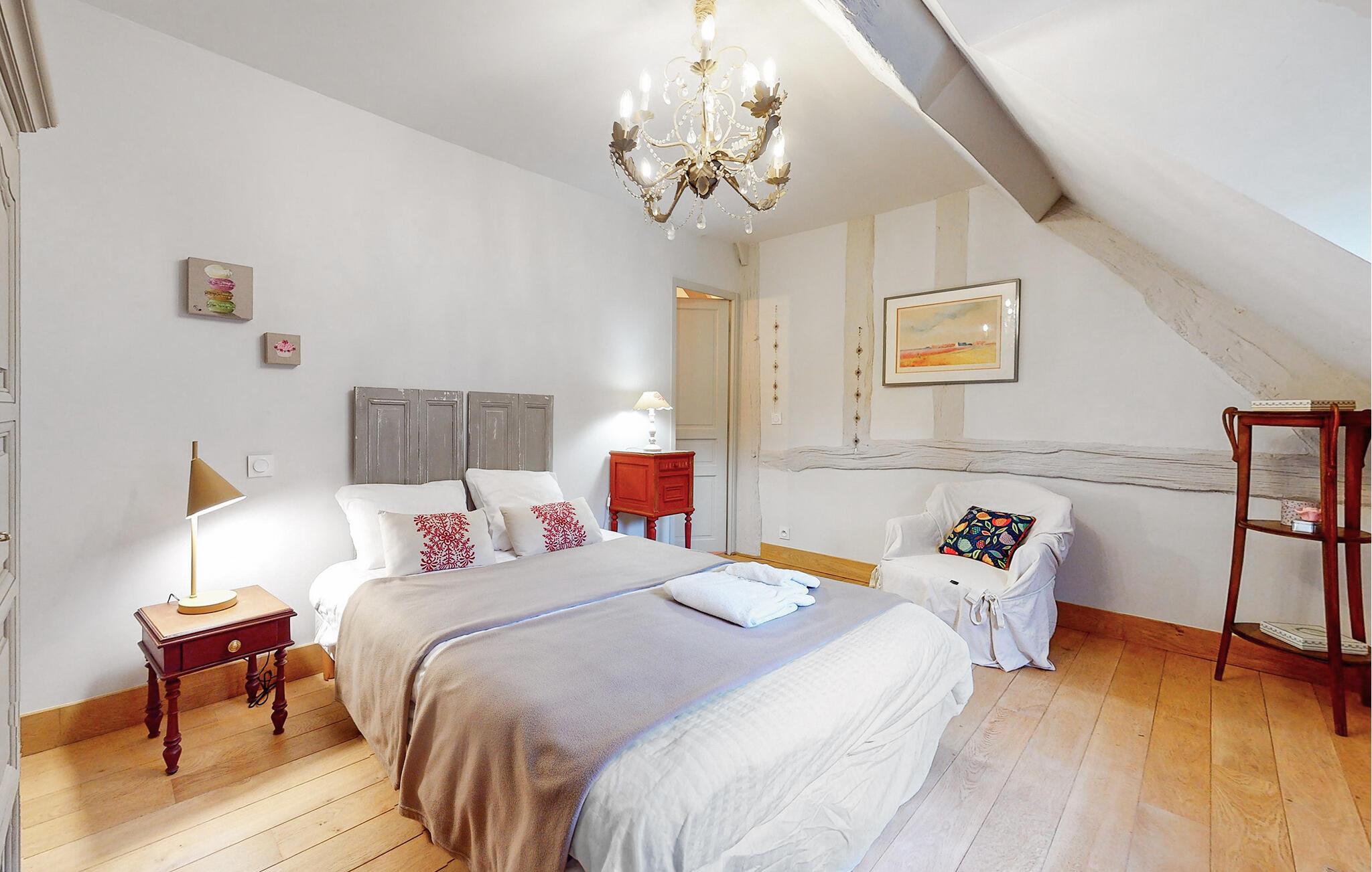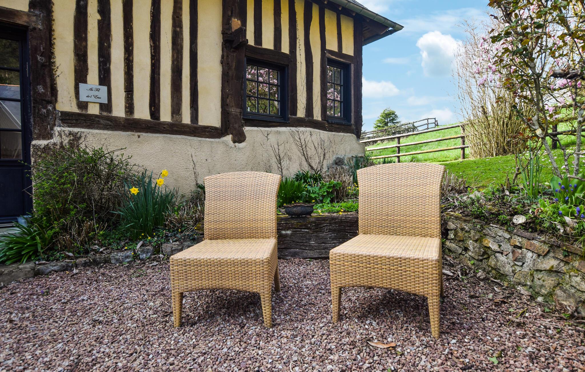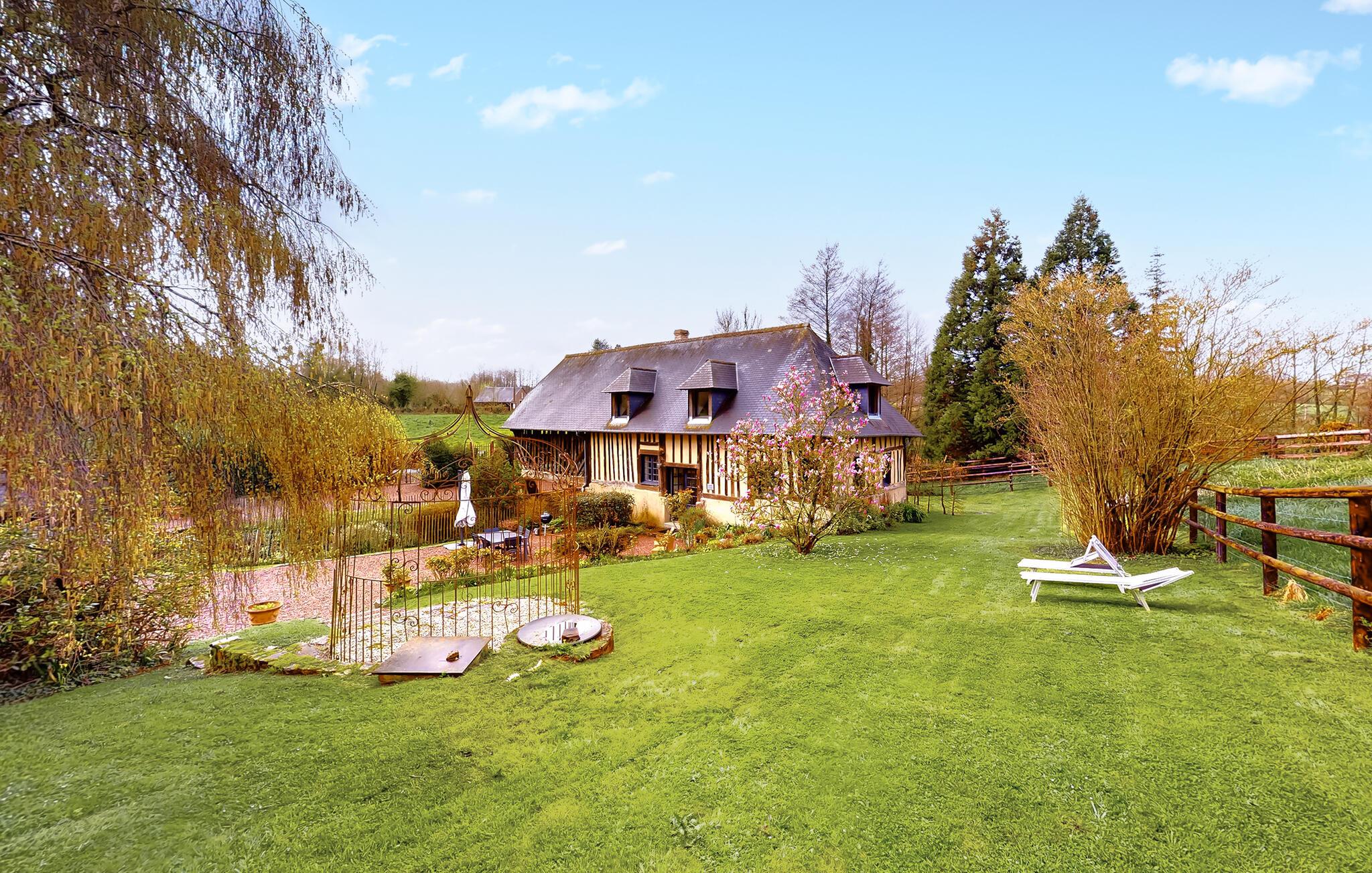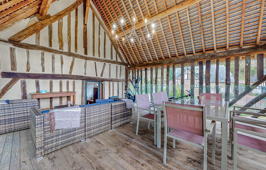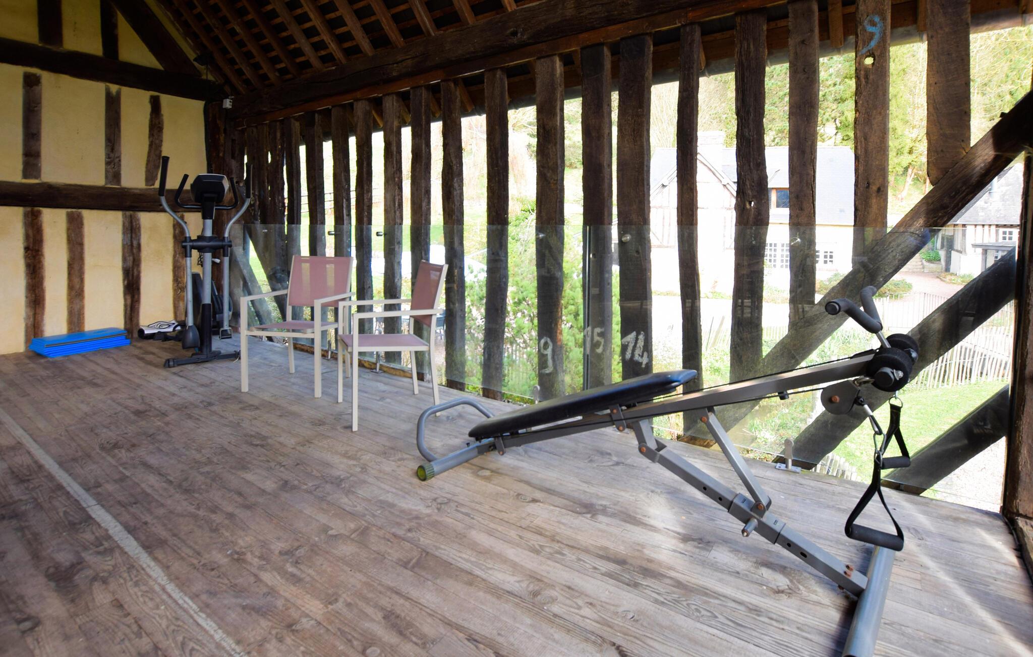 Tag familien under armen og rejs til Pays d'Auge, hvor I får base i dette charmerende, normanniske bindingsværkshus. Huset var oprindeligt et garveri og har beholdt flere af sine autentiske træk, der krydret med de moderne faciliteter skaber en absolut dejlig helhedsoplevelse, I sent vil glemme. Hold vaskebrættet ved lige i fitnessrummet, sved godt igennem i saunaen og rund en herlig dag af med brætspil eller en god film i sofaen ved pejsen.