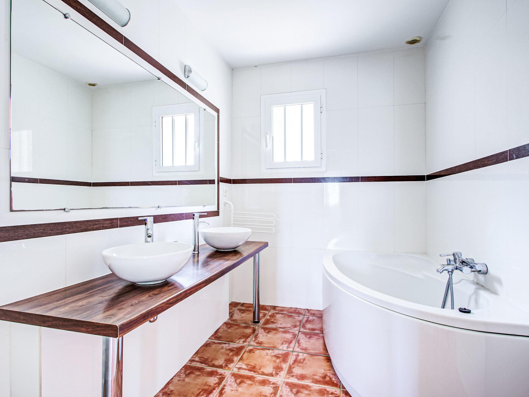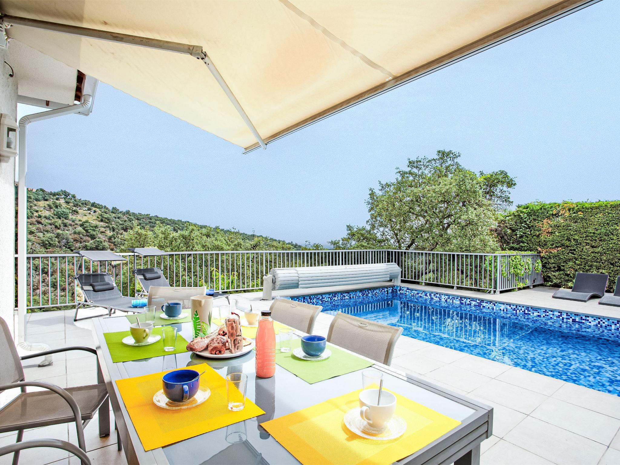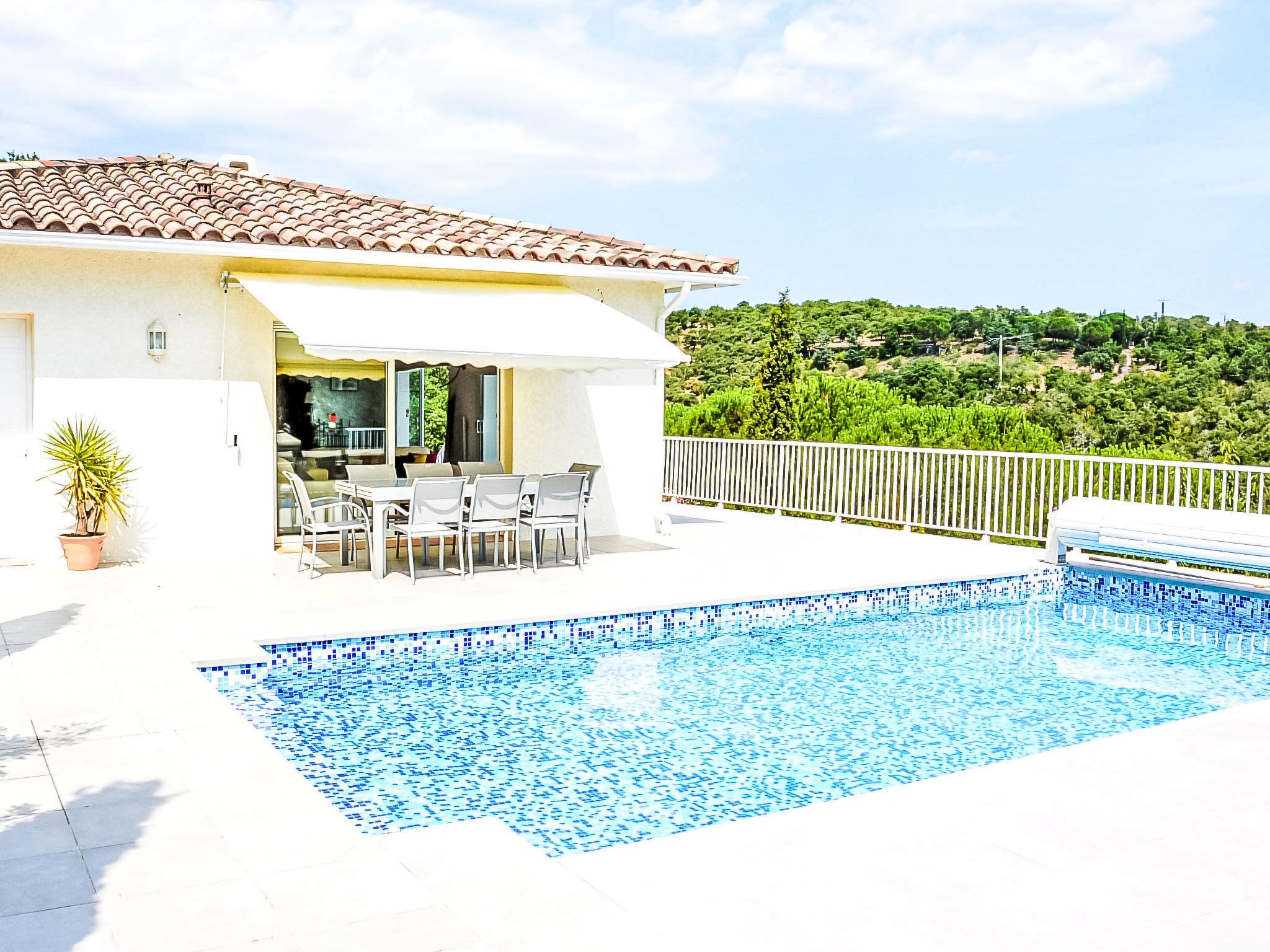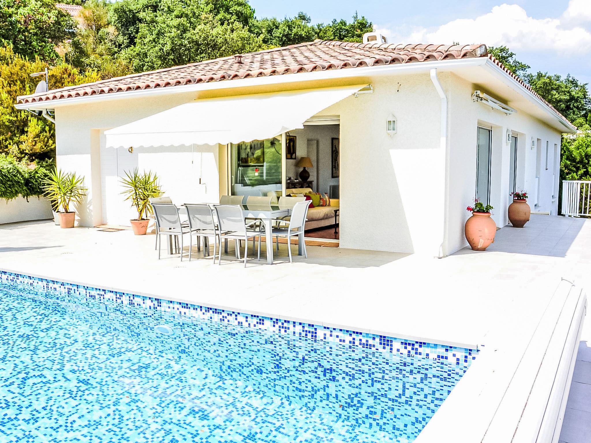 Llauro 13 km from Thuir: Single-family house "Jardins de Camille". In the resort 1.2 km from the centre of Llauro, 31 km from the sea, 31 km from the beach. Private: property 1'000 m2 (fenced), swimming pool angular, heated (4 x 8 m, depth 120 - 180 cm, seasonal availability: 01.May. - 30.Sep.) with shutter cover and salt-electrolysis pool-cleaning system. Table tennis, pool maintenance by the owner/gardener. In the house: table football. Parking on the premises. Grocery, restaurant, bakery, café 900 m, bus stop 12 km, railway station "Perpignan" 23 km, sandy beach "Saint Cyprien" 31 km. Sports harbour 32 km, golf course (18 hole) 32 km. Nearby attractions: Le Monastir del Camp 10 km, Collioure 36 km, Thuir, cité du Byrrh et ses caves 13 km, Castelnou, village médiéval & château 18 km, Espagne 22 km. Well-known lakes can easily be reached: Lac de Villeneuve de la Raho 21 km, Lac de St Jean Pla de Corts 11 km. Hiking paths: St Martin du Canigou 65 km, Pic du Canigou 75 km, Lac des Bouillouses 100 km. Please note: car recommended.