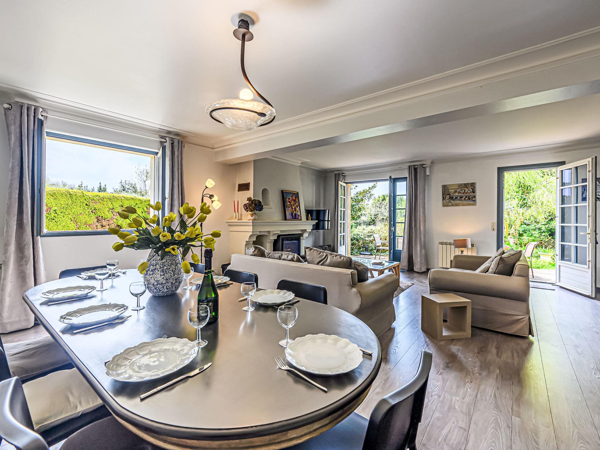"Maison de Kermian", 6-room house 170 m2 on 2nd floor. Comfortable furnishings: living/dining room with open-hearth fireplace and TV (flat screen). Exit to the terrace. 1 room with 1 french bed (1 x 140 cm, length 190 cm). Kitchen (oven, dishwasher, 4 gas rings, toaster, kettle, electric coffee machine). Shower/bidet/WC, sep. WC, double hand-basin. Upper floor: 1 room with 1 french bed (1 x 140 cm, length 190 cm). 1 room with 1 french bed (1 x 160 cm, length 190 cm). 1 room with 2 beds (90 cm, length 190 cm). Bathroom, bath/shower/bidet/WC. Electric heating. Terrace 30 m2. Facilities: washing machine. Please note: suitable for families. Smoke alarm. Offer by a private individual according to Art. 155, IV of CGI. 56116 000138 2C