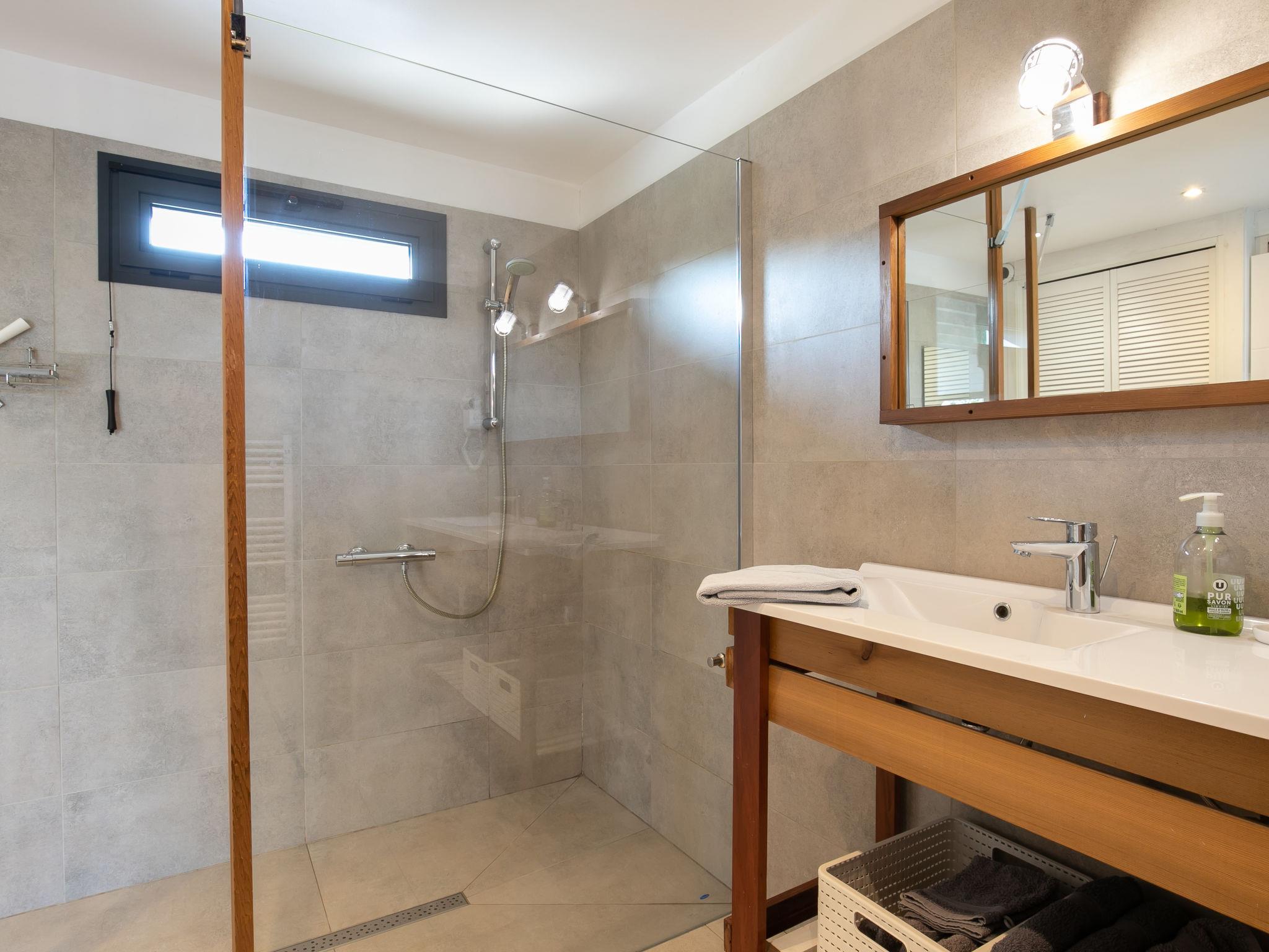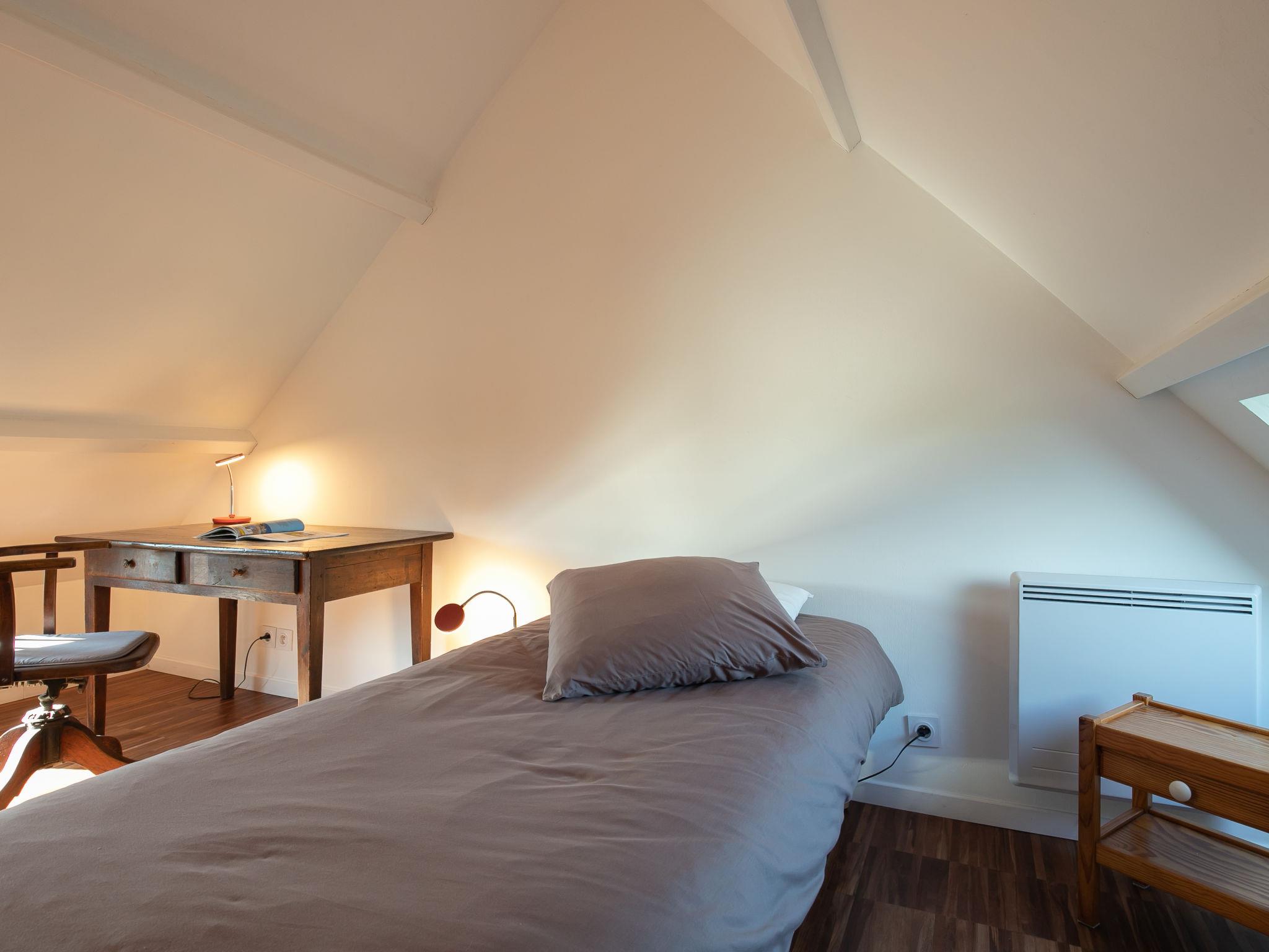 "L'Atelier", 3-room house 65 m2 on 2 levels. Bright, modern and stylish furnishings: open living/dining room with dining table, satellite TV and international TV channels. Exit to the garden, to the terrace. Open kitchen (oven, dishwasher, 4 induction hot plates, microwave, electric coffee machine, Capsules for coffee machine (Senseo) extra). Shower/WC, double hand-basin. Upper floor: 1 room with sloping ceilings with 1 double bed (2 x 90 cm, length 200 cm). 1 room with sloping ceilings with 1 bed (90 cm, length 190 cm). Sep. WC. Solar energy heating. Wooden floors. Terrace. Terrace furniture, barbecue (portable), deck chairs (2). View of the sea and the garden. Facilities: washing machine, dryer, iron, children's high chair, baby cot, hair dryer. Internet (WiFi, free). Please note: non-smoking house. Smoke alarm.