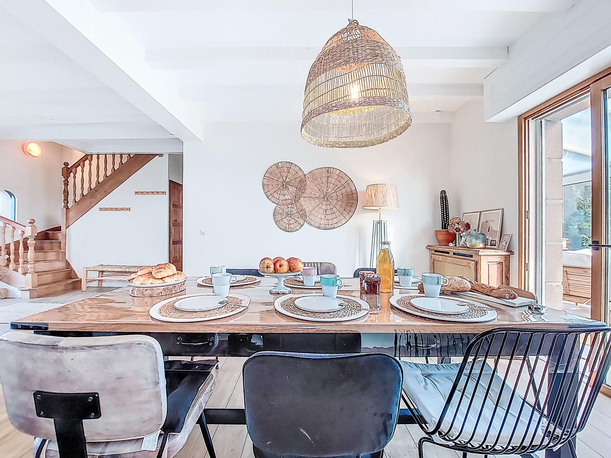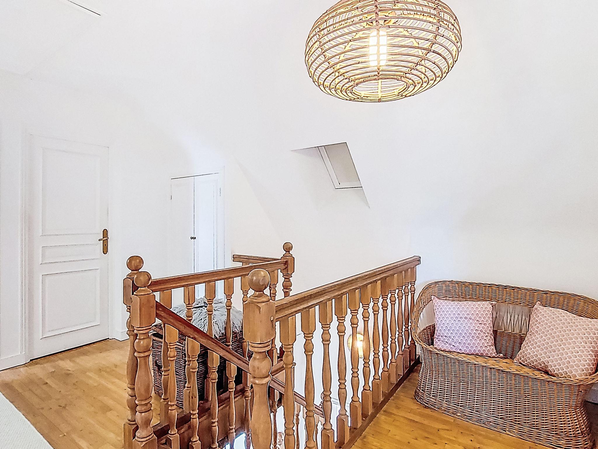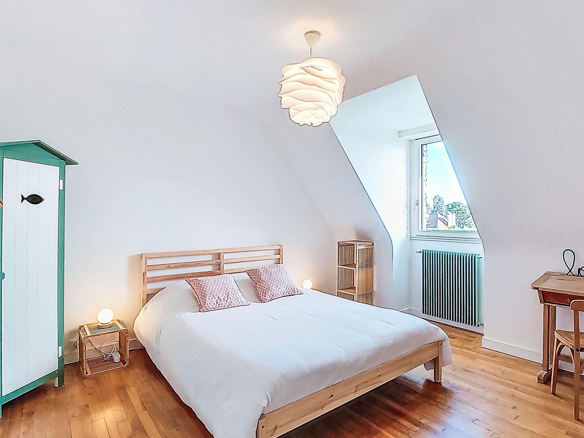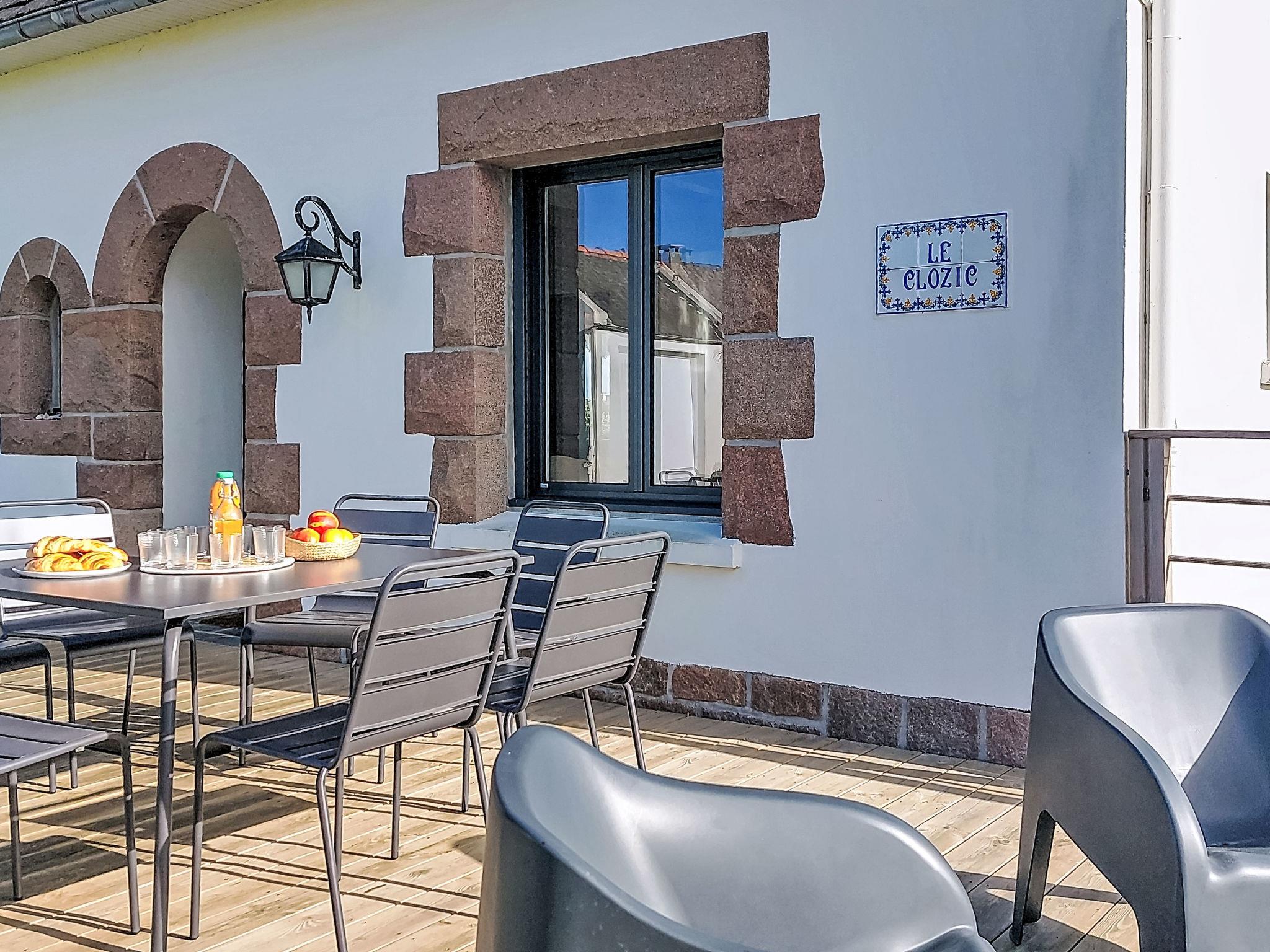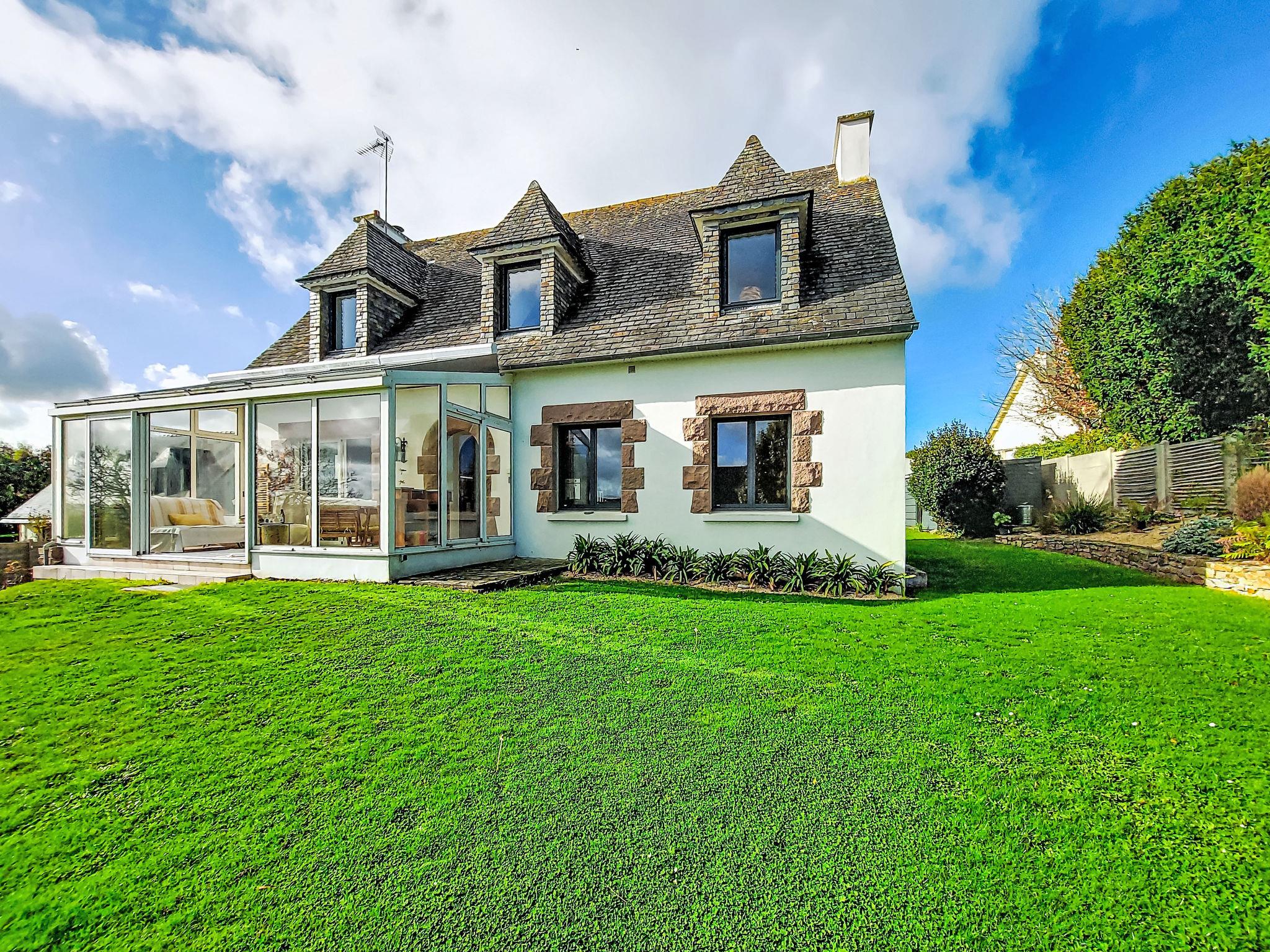 "Le Clozic", 6-room house 140 m2 on 2 levels. Comfortable and beautiful furnishings: open living/dining room 35 m2 with TV, flat screen and electric shutters. Exit to the garden, to the terrace. With veranda, panoramic window. Exit to the garden. 1 room 12 m2 with 1 french bed (140 cm, length 190 cm). Kitchen 12 m2 (dishwasher, 4 induction hot plates, toaster, kettle, microwave, freezer, electric coffee machine, Capsules for coffee machine (Nespresso) extra, cooking island). Bathroom, sep. WC. Upper floor: 2 rooms 12 m2, each room with 1 french bed (160 cm, length 200 cm). 1 room with 1 french bed (140 cm, length 190 cm). Shower/WC. Oil heating. Large terrace 18 m2, south-west facing position. Terrace furniture, barbecue (portable). View of the sea. Facilities: washing machine, children's high chair, baby cot for up to 2 year olds, hair dryer, baby changing unit. Internet (WiFi, free). Please note: suitable for families. Non-smoking house. Maximum 1 pet/ dog allowed. Smoke alarm. When there are less than the maximum number of guests staying at the property, not all of the bedrooms will be available for use. Offer by a private individual according to Art. 155, IV of CGI.