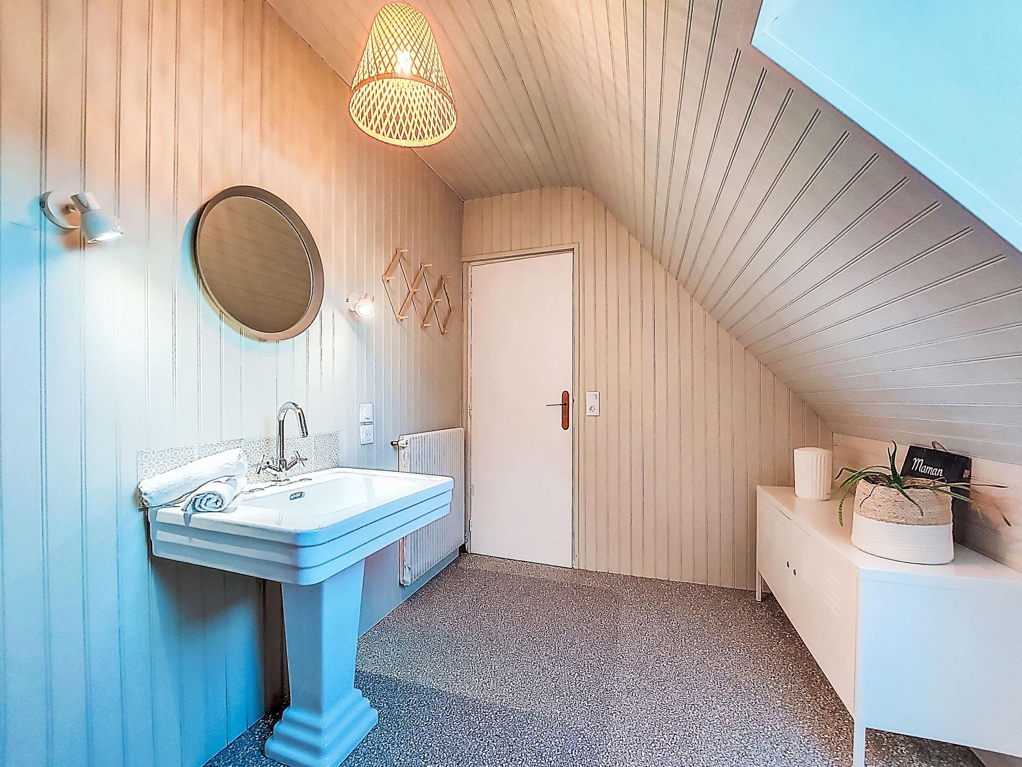 Beautiful, cosy single-family house "Le Clozic". 700 m from the centre of Locquirec, 5 km from the centre of Plestin-les-Grèves, excellent location: right in the centre but still quiet, 600 m from the sea, 750 m from the beach. Private: property 1'300 m2, large garden with lawn and wildlife garden, parking (for 3 cars) on the premises. Shop 5 km, grocery 450 m, supermarket 5 km, restaurant, bar 700 m, bakery 5.2 km, 10 minute walk to the centre, bus stop "Ligne 30 Morlaix-Lannion" 700 m, sandy beach "Les Sables Blancs" 900 m, diving center 20 km. Sports harbour 800 m, golf course (18 hole) 33 km, surf school 800 m, sailing school 700 m, walking paths from the house 500 m. Nearby attractions: Morlaix 22 km, Lannion 21 km, Ploumanac'h, Côte du Granit Rose 35 km, Terenez, Cairn de Barnenez 22 km, Paimpol 55 km, Vallée des Saints, Clohars-Carnoet 54 km. Hiking paths: GR34, sentier des douaniers 500 m.