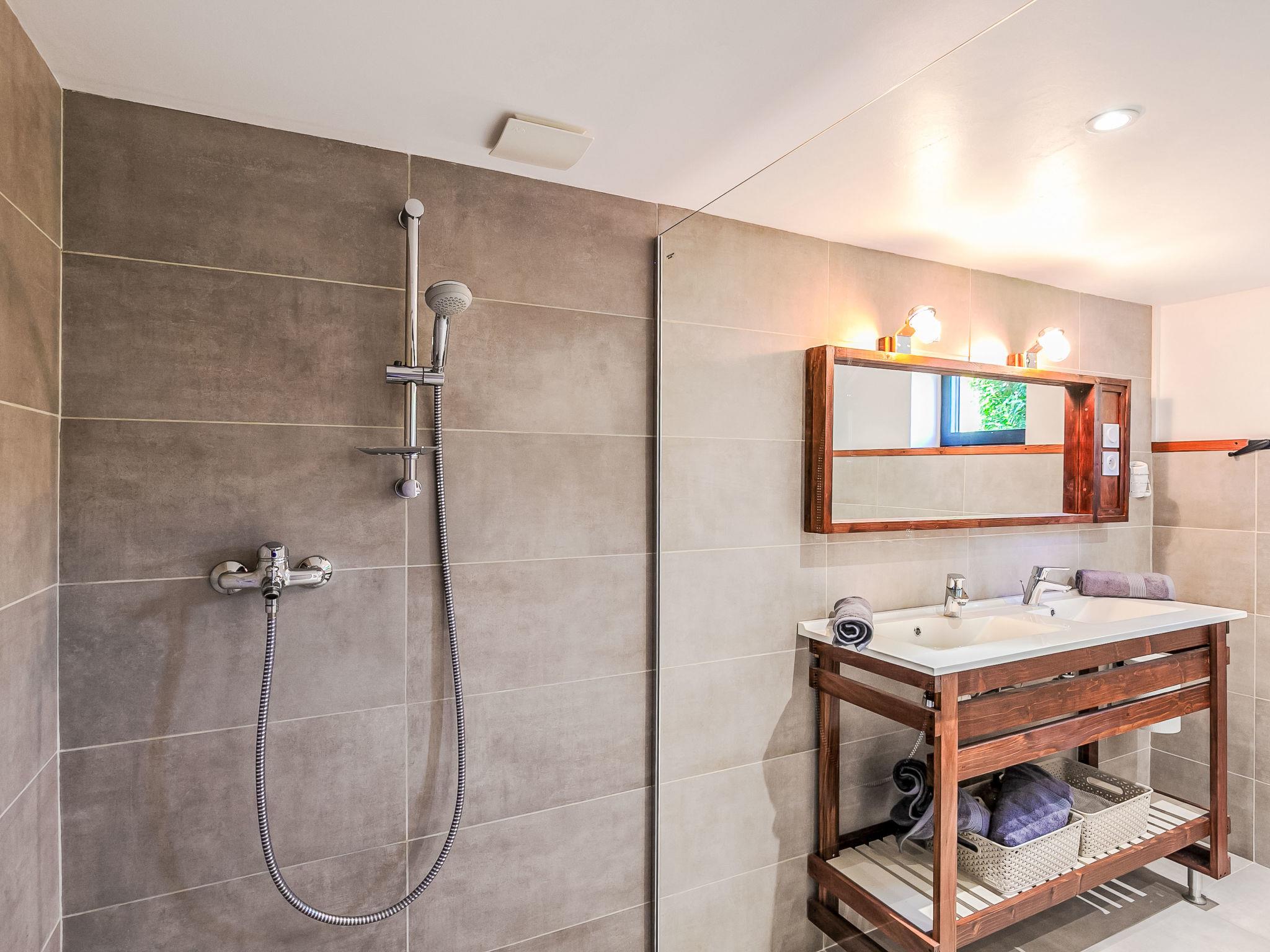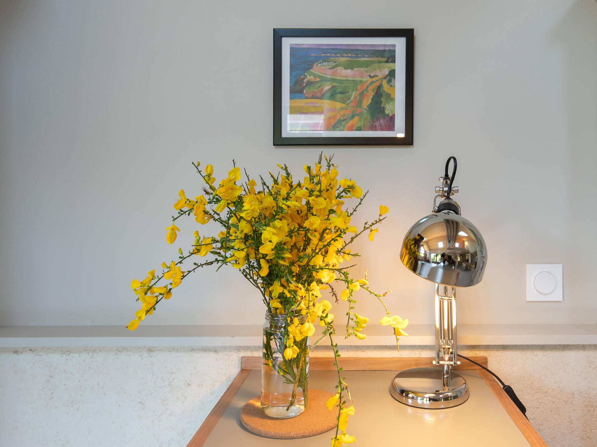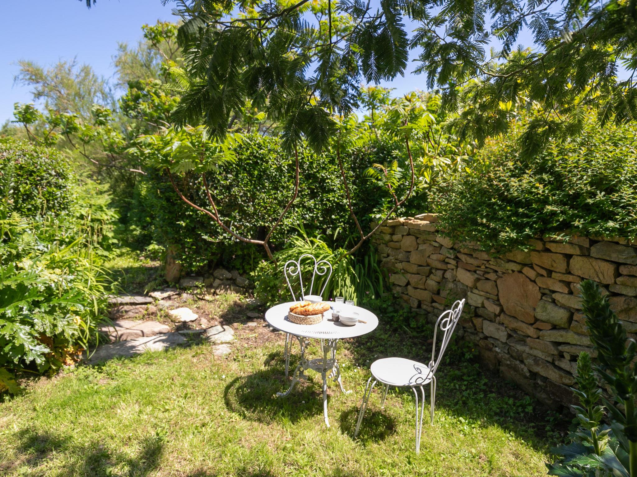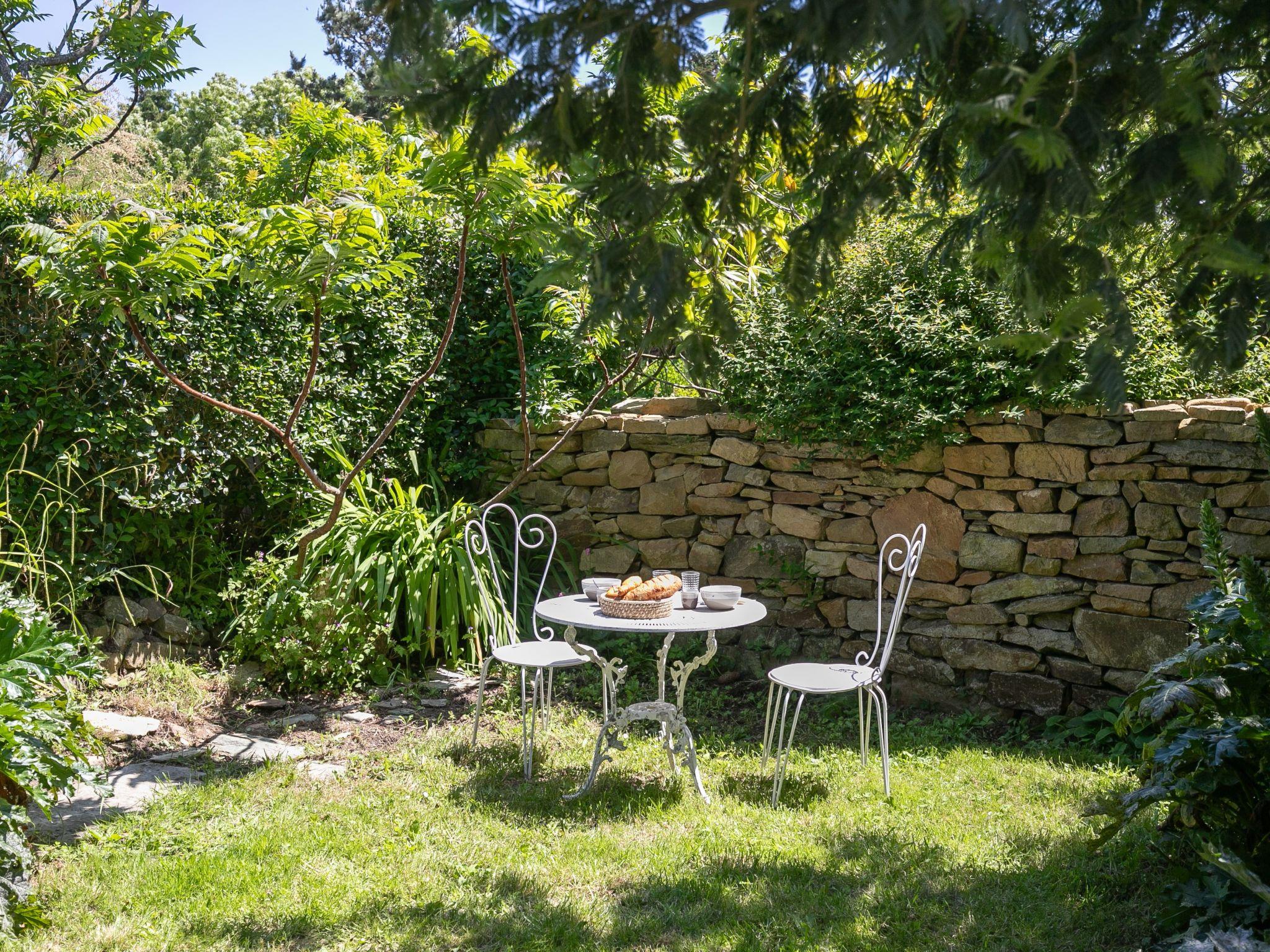 "Le Préau", 2-room house 82 m2. Spacious and bright, beautiful and tasteful furnishings: open large living room 26 m2 with TV, flat screen, hi-fi system and wood-burning stove. Exit to the garden, to the terrace. Open kitchen 26 m2 (oven, dishwasher, 3 induction hot plates, toaster, kettle, microwave, freezer, electric coffee machine, Capsules for coffee machine (Senseo Original Eco) extra) with bar, dining table. Exit to the terrace, to the patio. Shower/WC, double hand-basin. Upper floor: 1 room 12 m2 with 1 double bed (2 x 90 cm, length 200 cm). Sep. WC. Electric heating. Small terrace 10 m2, south facing position. Terrace furniture. View of the sea and the garden. Facilities: washing machine, iron, hair dryer. Internet (WiFi, free). Please note: non-smoking house. Smoke alarm, fire extinguisher. Ecological house, arrivals and departures on Mondays. Offer by a private individual according to Art. 155, IV of CGI.