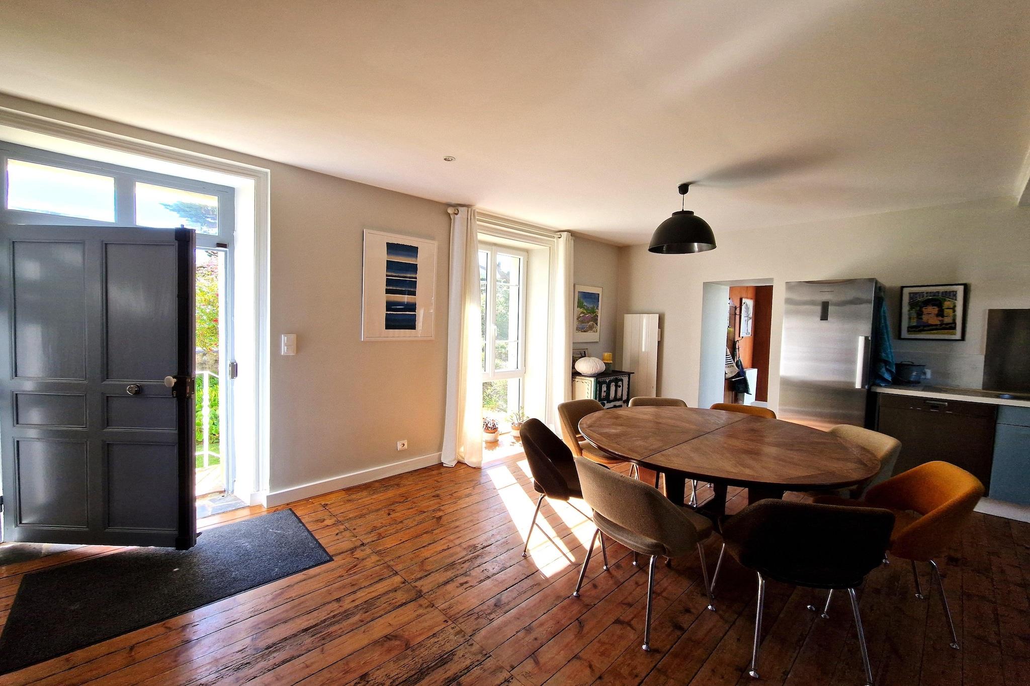 Dette charmerende renoverede feriehus ligger midt i den maleriske badeby, kun 200 m fra en lille sandstrand. Bag den klassiske facade gemmer sig et særligt smagfuldt interiør, der kombinerer traditionelle elementer som parketgulve og smukke gamle fliser med den bedste komfort. Udvalgte møbler, originale dekorative elementer og talrige malerier fuldender interiøret. Et insidertip til dem, der ønsker at undgå standardmøbler! Fra de to dobbeltværelser på øverste etage kan I nyde en storslået udsigt over havet. I kan slappe af på den overdækkede terrasse og nyde jeres måltider under åben himmel eller afslutte dagen ved en hyggelig åben ild efter mange vandsportsaktiviteter eller lange vandreture. I den rummelige opholdsstue kan I endda vælge mellem den store pejs' åbne flammer og den behagelige varme fra støbejernsbrændeovnen. Locquirec er en populær badeby omgivet af syv smukke strande. Den lille, maleriske badeby ligger på en lille halvø over for den fantastiske rosa granitkyst Rosa. Havnepromenaden er omkranset af typiske restauranter og caféer, der tilbyder fremragende regional mad.